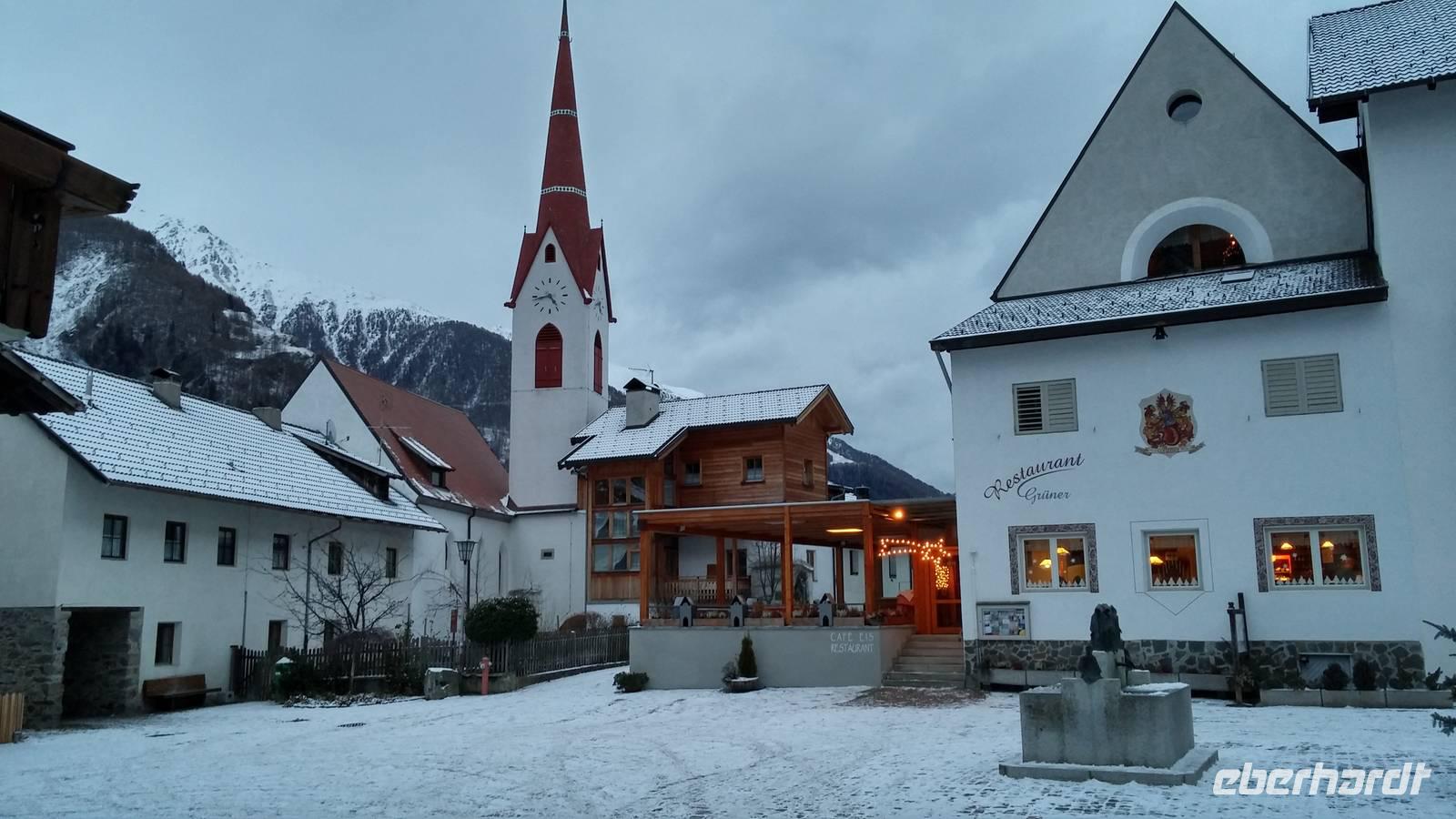 Um 11:00 Uhr unternahm ich mit den meisten Gästen einen ausgiebigen Neujahrsspaziergang über den Ortskern von Goldrain, hoch zum Schloss und dann auf einem Panoramaweg zur Pfarrkirche.