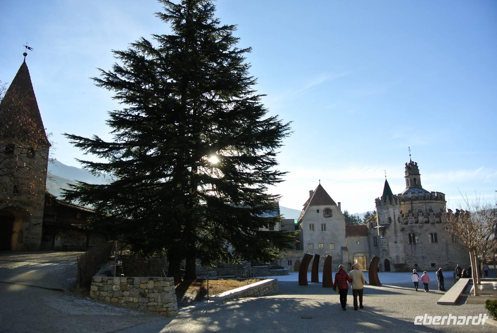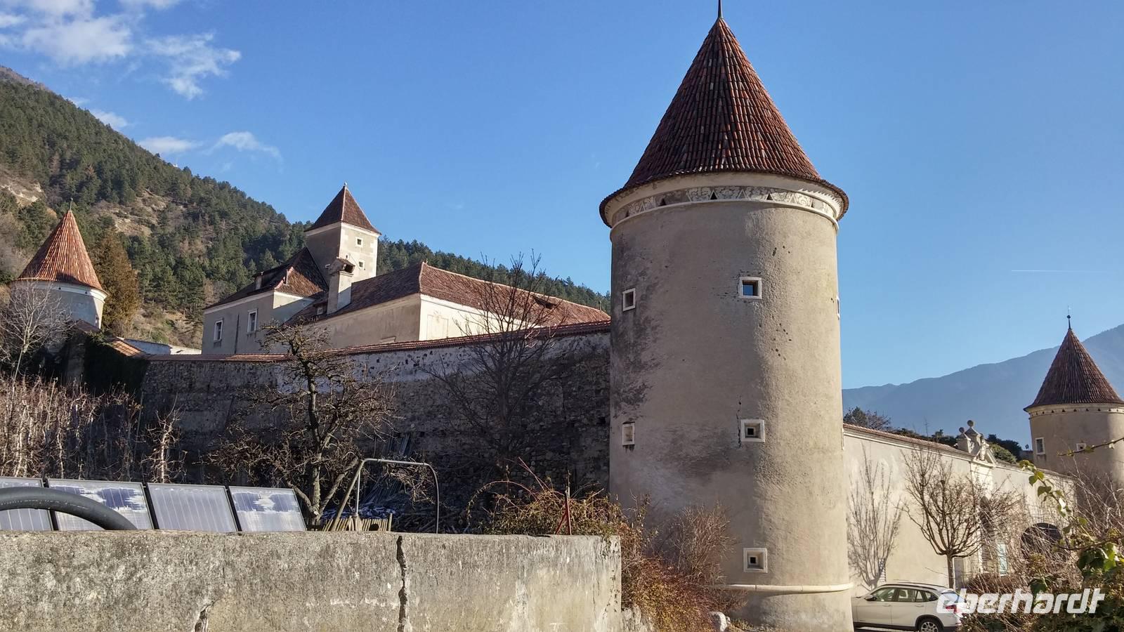 Ab 11:30 Uhr unternahm der Reiseleiter mit einigen Gästen einen Neujahrsspaziergang im Schloss Goldrain, am Panoramaweg entlang zur Pfarrkirche mit den Wal Wegen und zurück.