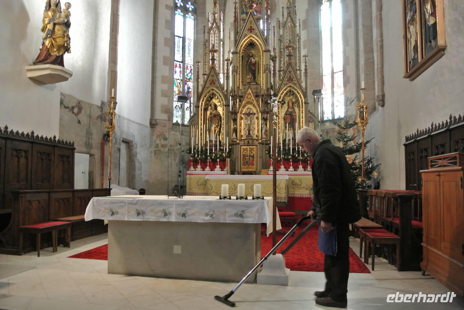 Unser Reiseleiter hat aus seinem Lautsprecher-Soundsystem besinnliche Weihnachtsmusik vorgespielt. Bis der Kürschner bei "Stille Nacht - Heilige Nacht" vom Dresdner Kreuzchor mit staubsaugen vor dem Altar das kleine Konzert unterbrochen hat.