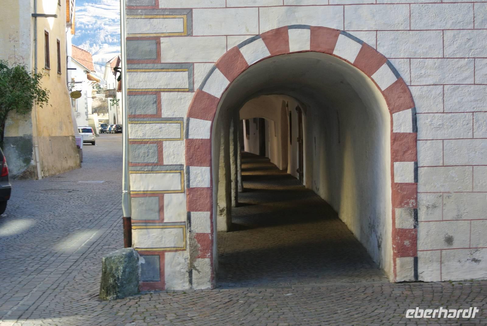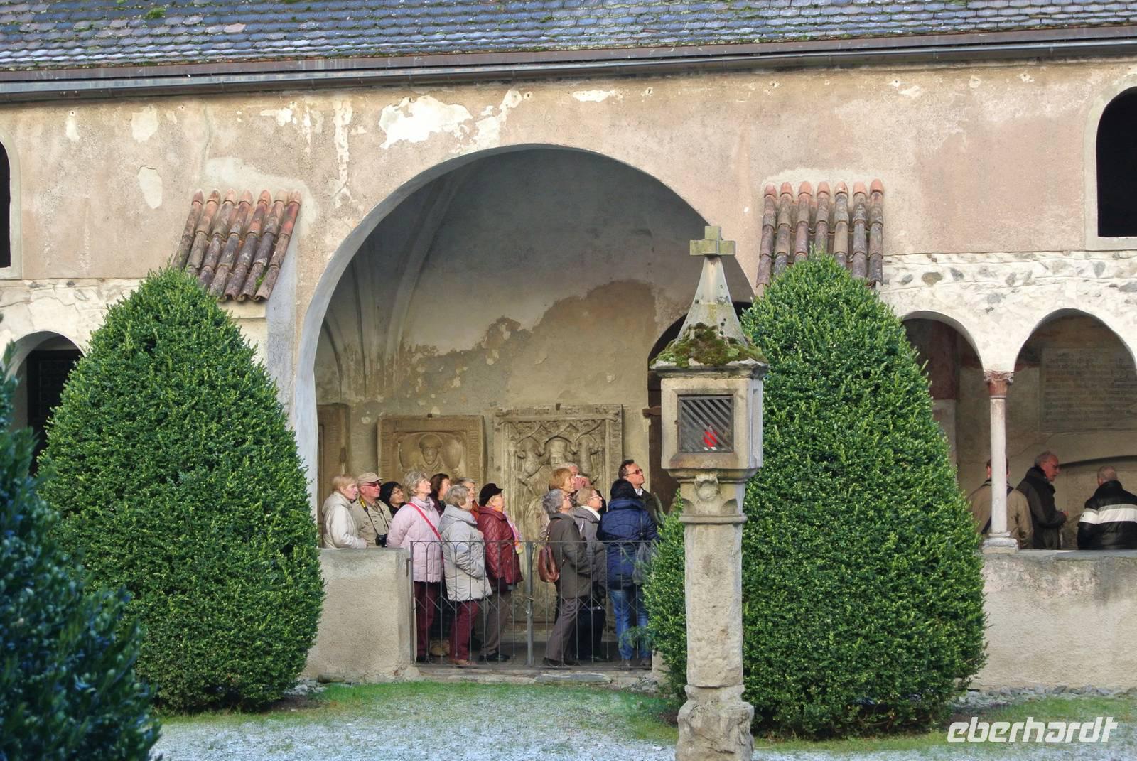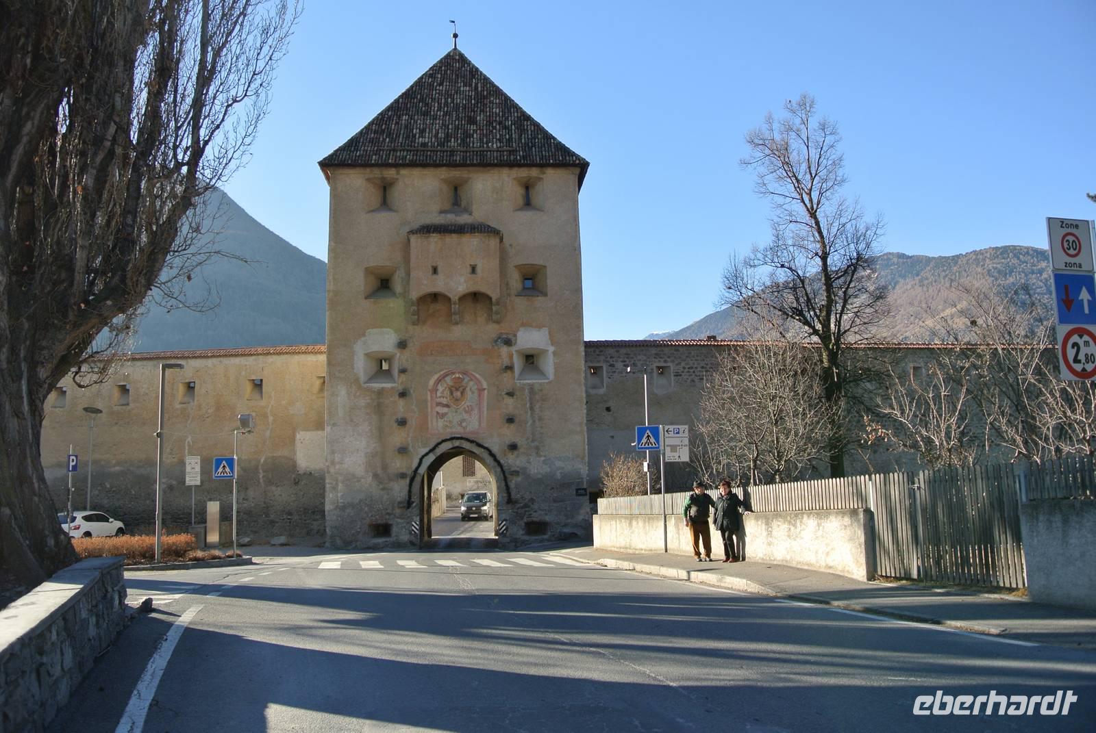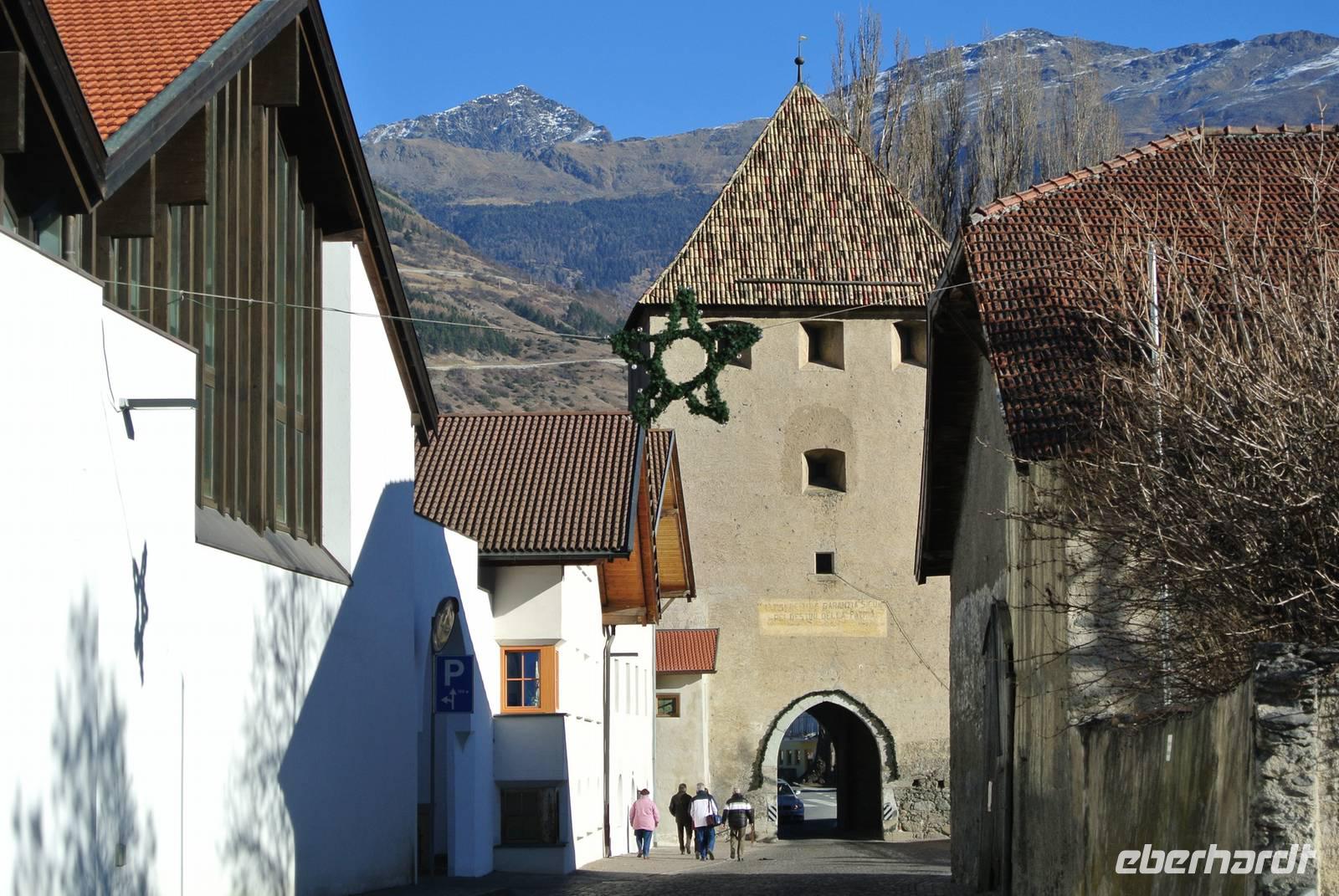 Der Stadtrundgang führte uns über die Theaterbrücke, den Theaterplatz und den Kornplatz zum Vintschgaues Tor. Zurück gingen wir über die lauschige Laubengasse bis zur Pfarrkirche St. Nikolaus auf dem Pfarrplatz.