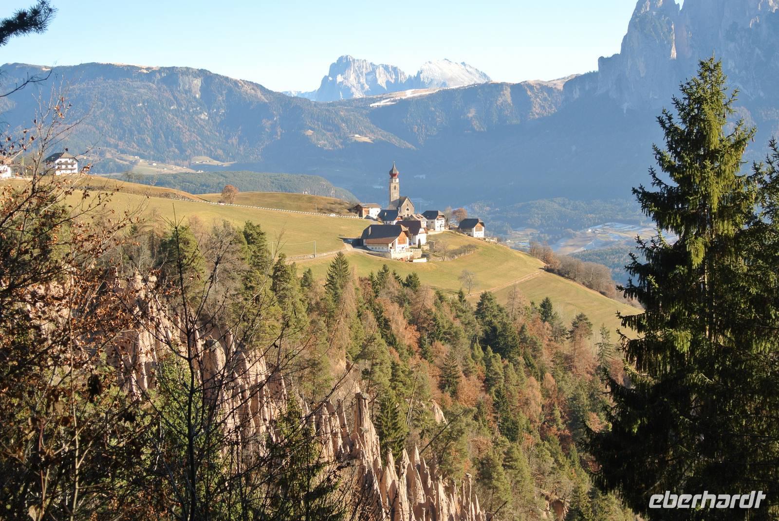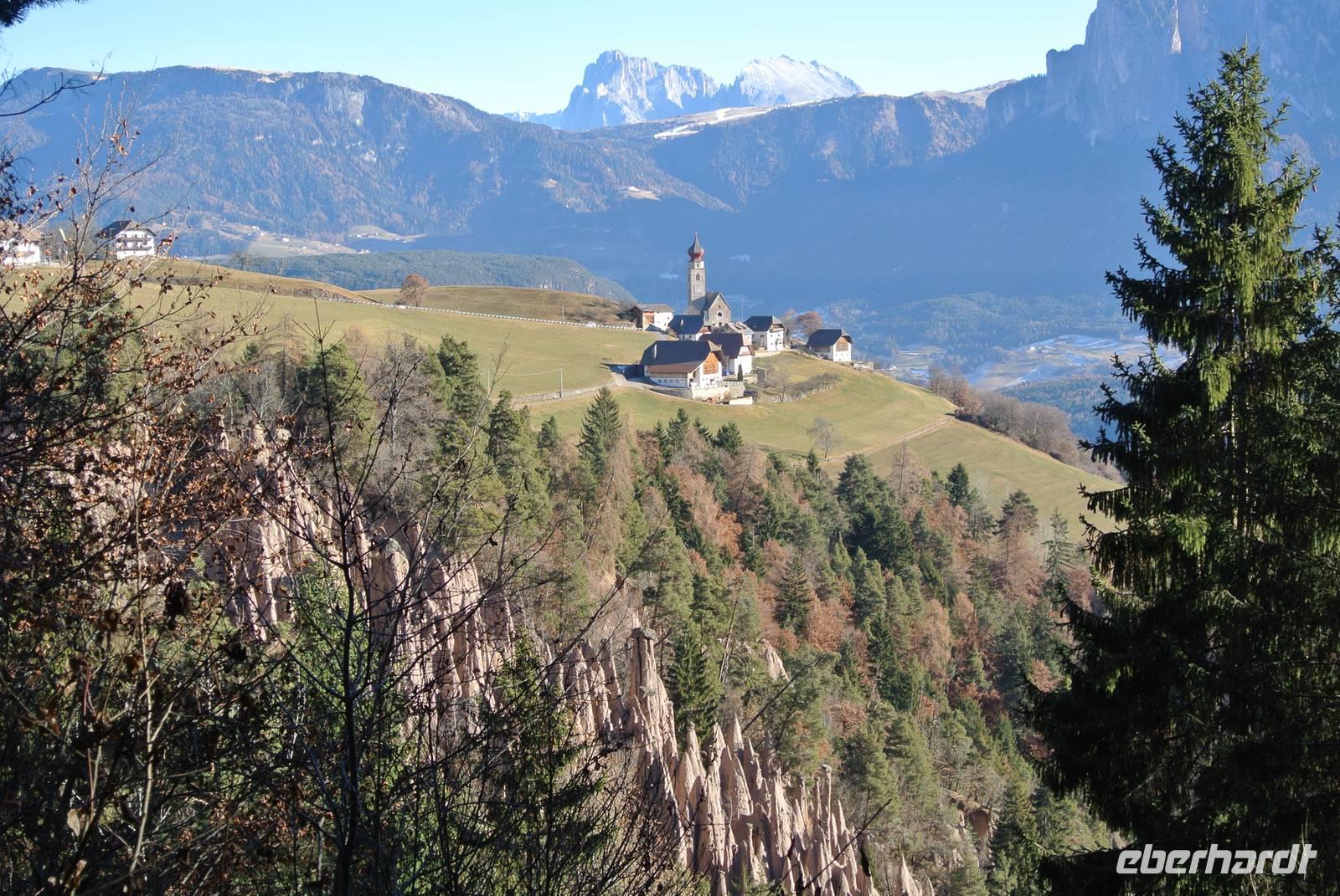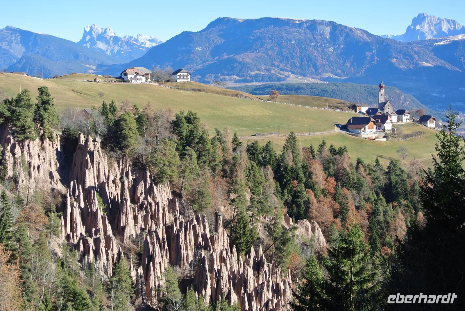 Danach ginge ab 12:30 bis 13:30 Uhr ein Großteil der Gäste mit dem Reiseleiter den Wanderweg an den Erdpyramiden entlang bis zum anderen Ende vor Lengmoos.