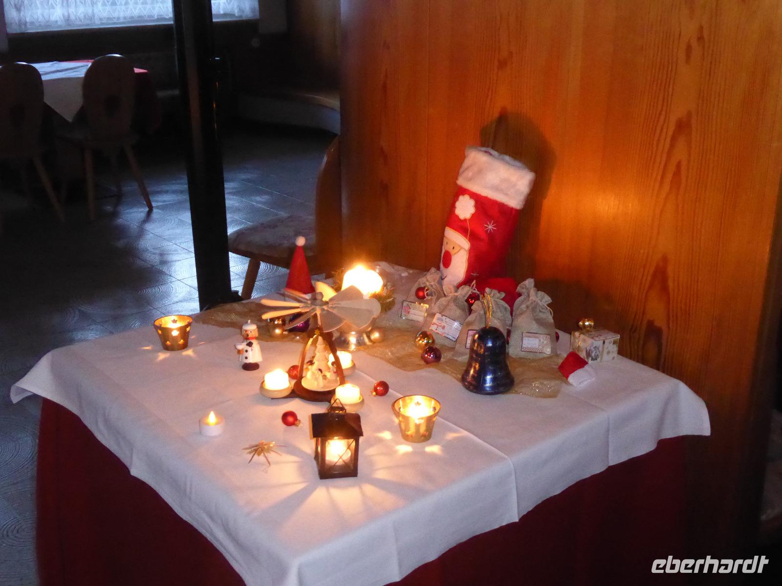 Zurück im Hotel versammelten wir uns im gemütlichen Kaminzimmer bei Kaminfeuer und Kerzenschein zu einer kleinen Weihnachtsfeier.