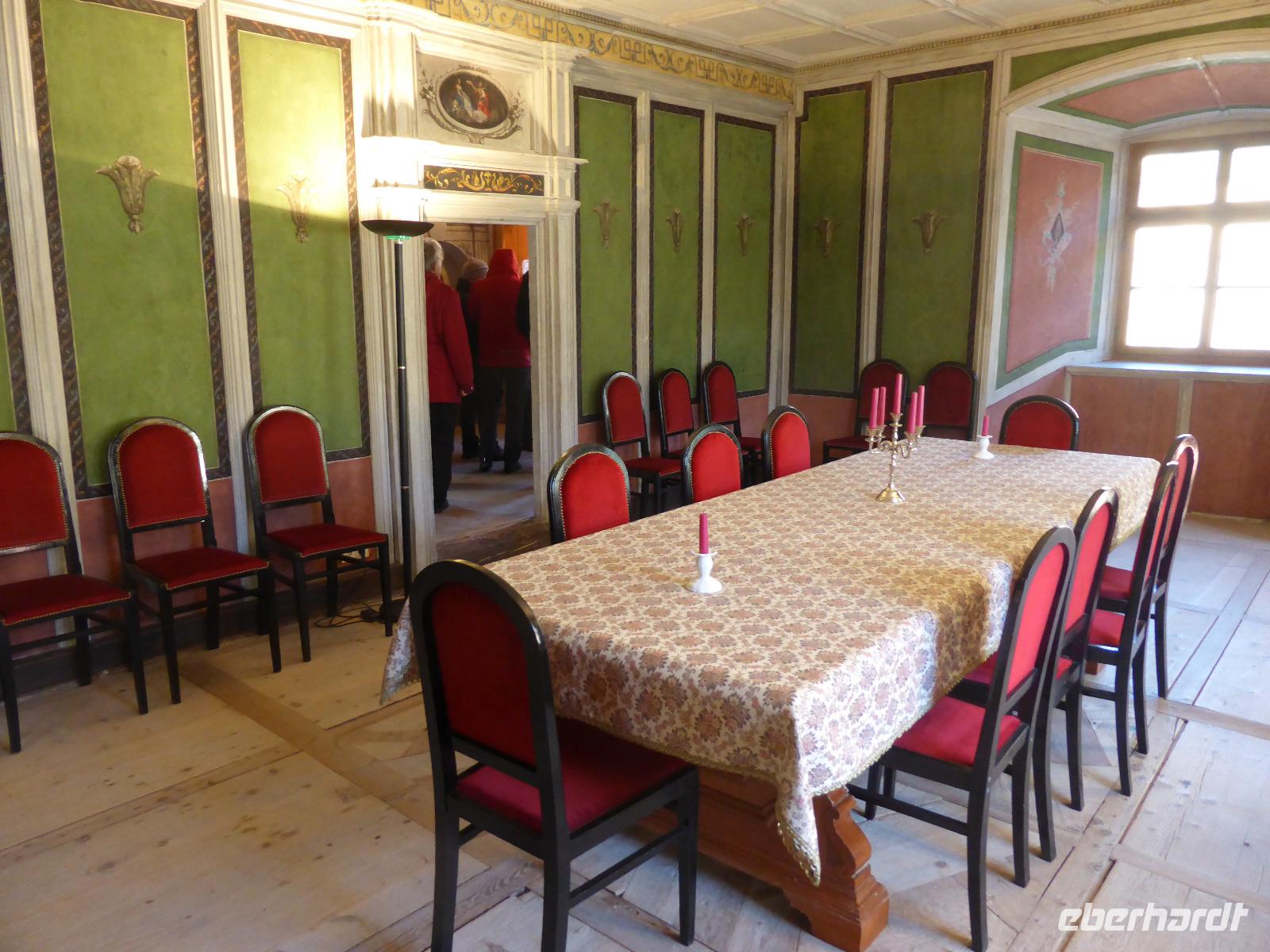 Am Schloss Naudersberg erwartete uns Frau Köllermann, die Schlossherrin zur Führung durch ihr Schloss. Mit sehr viel Hingabe, Wissen und Charme führte sie uns durch das Schloss. Ihre Familie kaufte vor vielen Jahren und restaurierte es sehr liebevoll. Sie führte uns durch die Folterkammer, die Verliese sowie die zahlreichen Räumlichkeiten von einer Etage zur anderen. Mit zahlreichen Kleinigkeiten und Geschichten über das Schloss erweckte sie immer wieder unsere Aufmerksamkeit, trotz der Kälte, die uns langsam durchströmte.