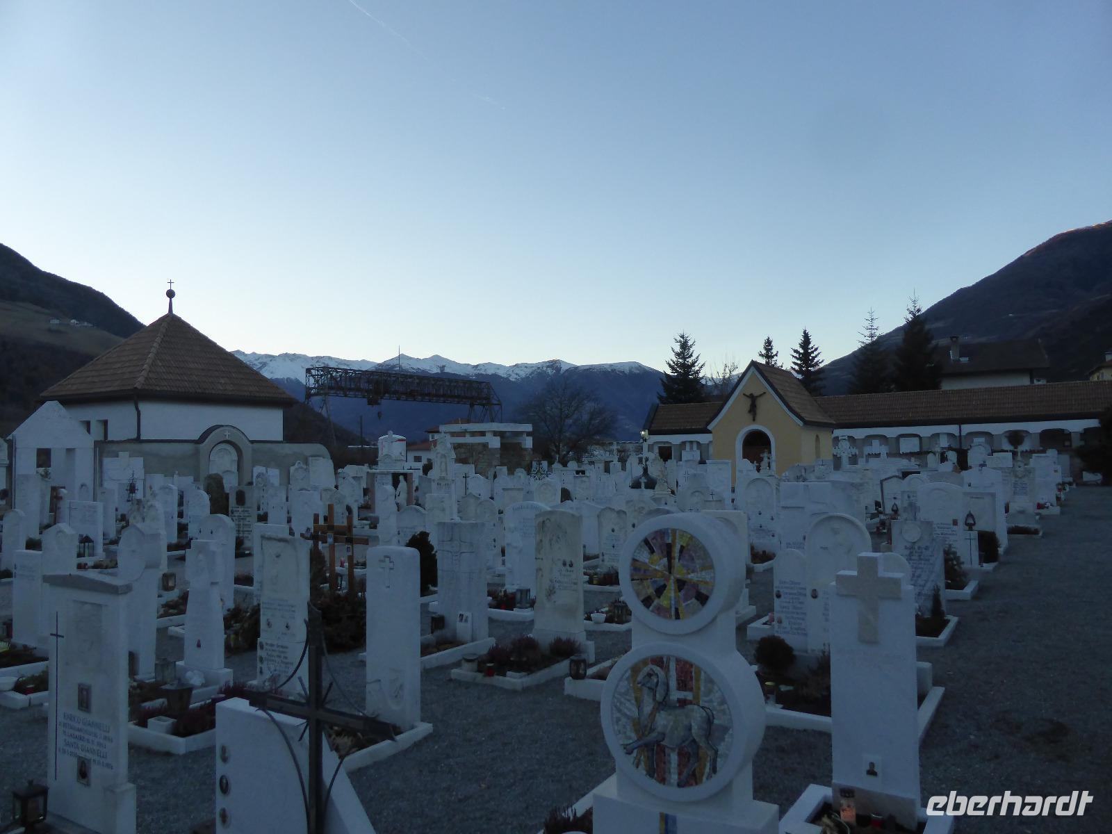 Auf dem Rückweg zum Hotel legten wir noch einen Stopp in Laas ein. In diesem Marmordorf wird heute noch das „weiße Gold" abgebaut und verarbeitet. Auf dem örtlichen Friedhof wurden alle Grabkreuze aus diesem Marmor gefertigt.