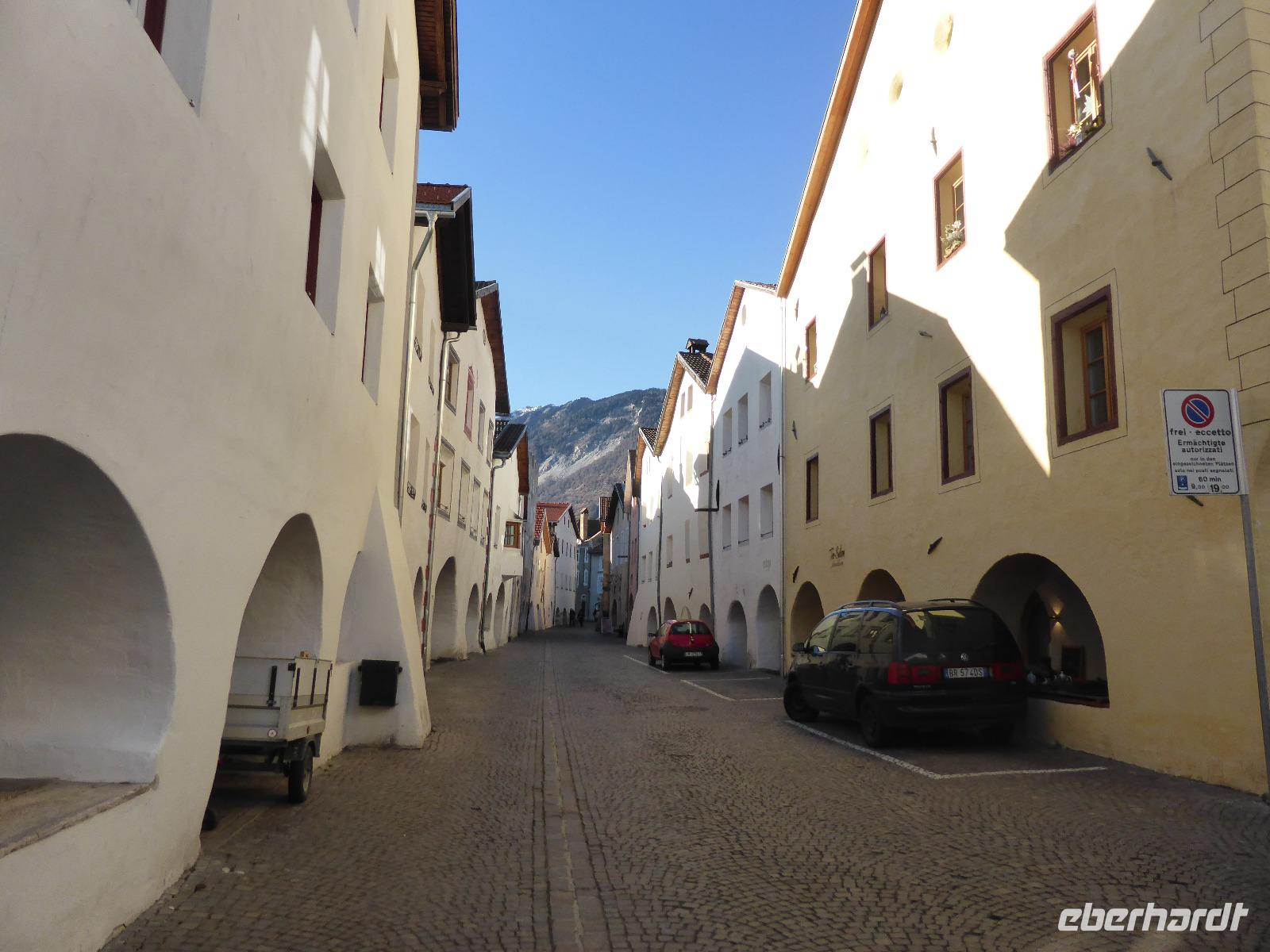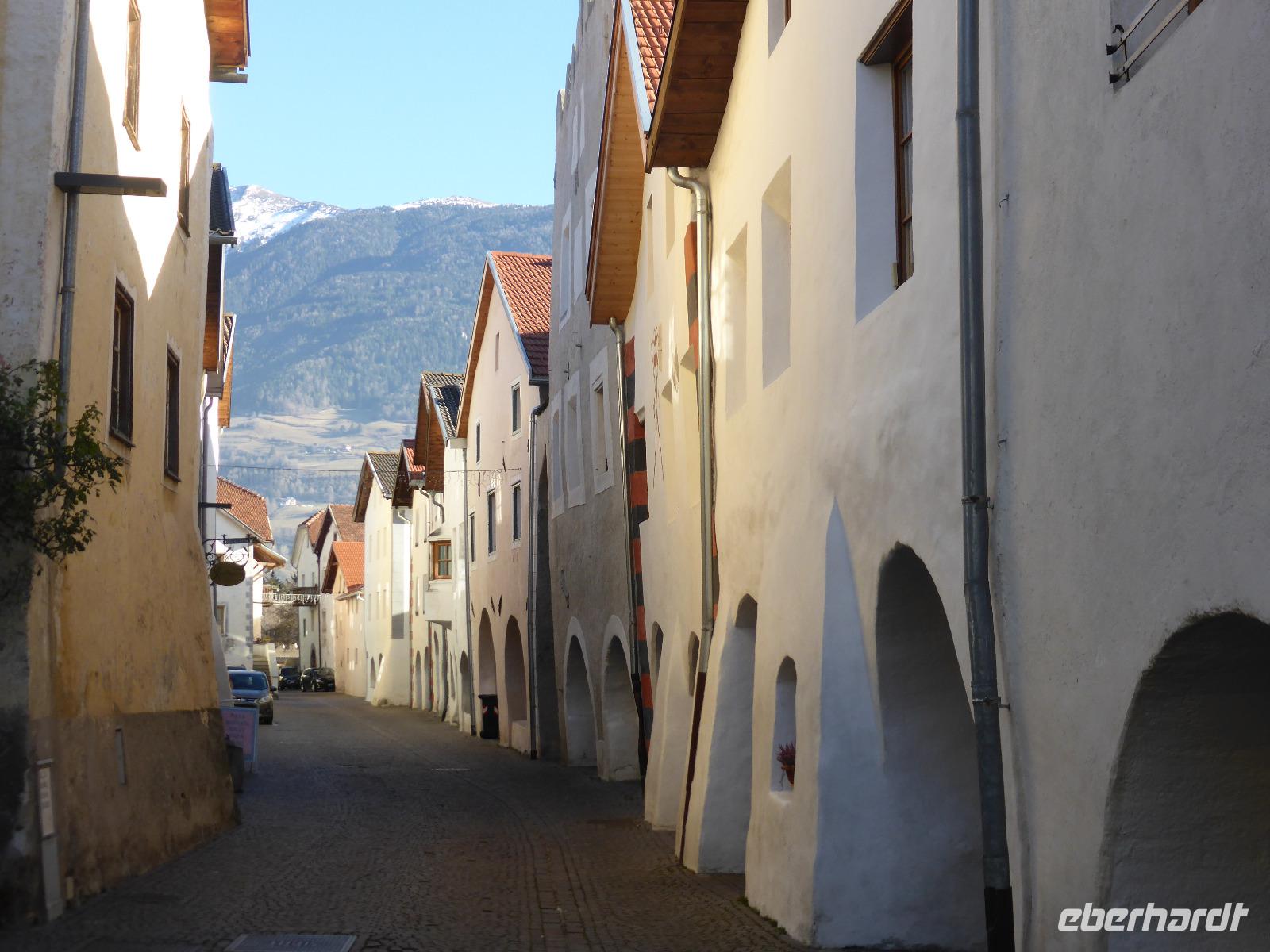 Nach diesem kurzen Ausflug in die Schweiz kehrten wir nach Südtirol zurück, um die Mittagspause in Glurns zu verbringen. Die Stadt zählt zu den kleinsten Städten im Alpenraum und ist komplett mit einer Stadtmauer umgeben. Neben der rechteckig angelegten Stadtmauer mit den Toren und Türmen waren die Laubengasse sowie der Marktplatz sehenswert. Leider war alles ziemlich ausgestorben.