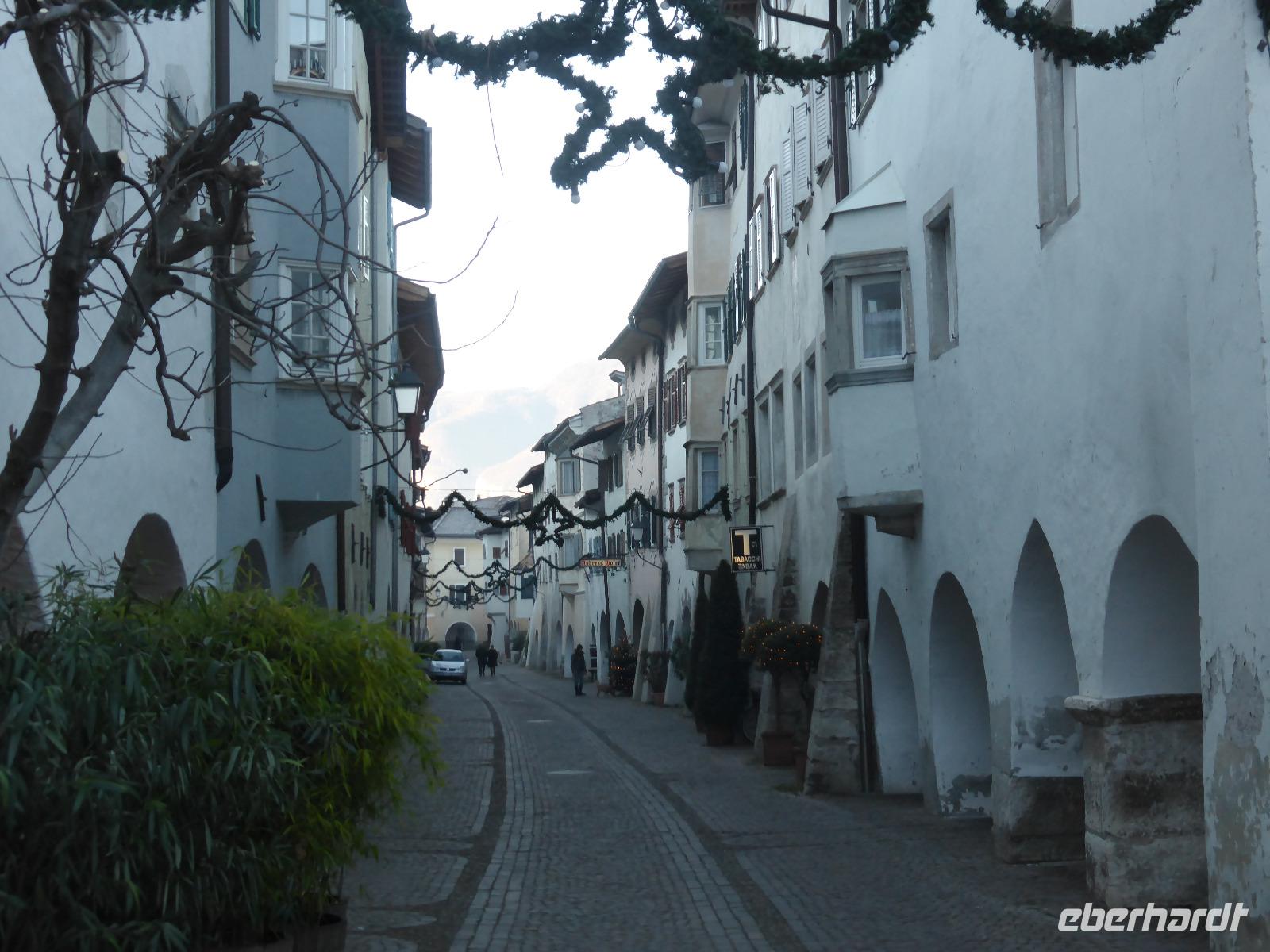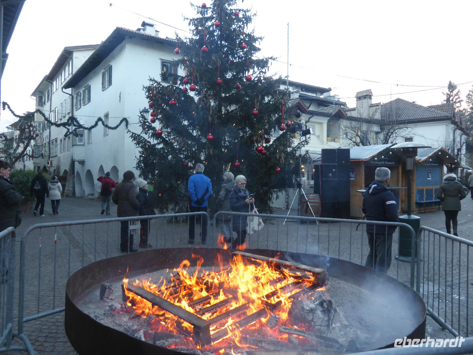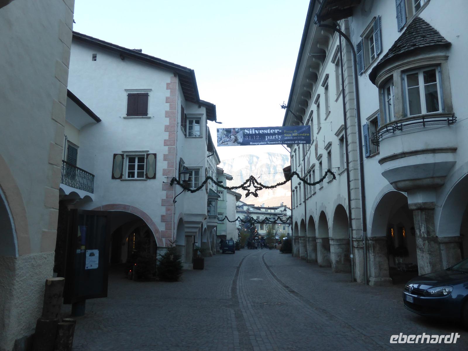 Der letzte Tag des Jahres stand im Zeichen des Südtiroler Weines. Unseren ersten Stopp legten wir in Neumarkt ein. In der Laubengasse liefen schon die ersten Vorbereitungen für die anstehende Silvesterfeier. Ein großes Lagerfeuer brannte, sodass wir uns etwas wärmen konnten.