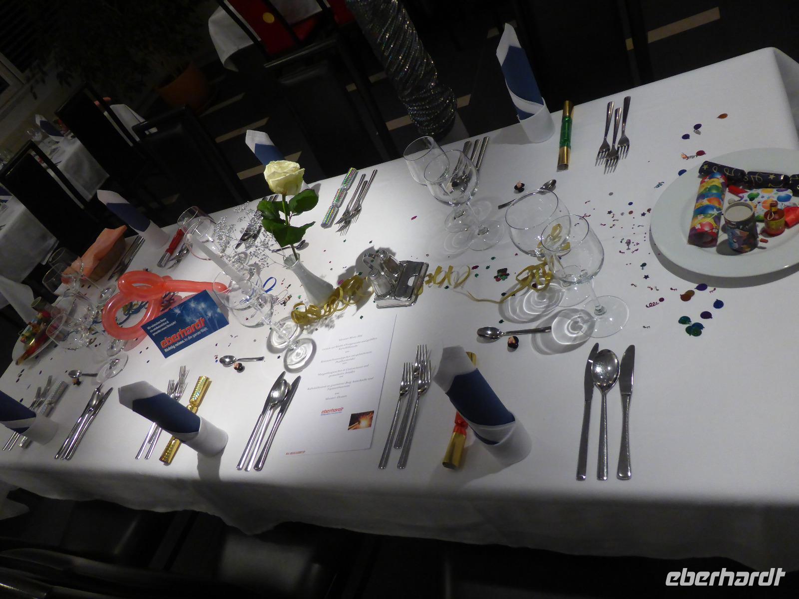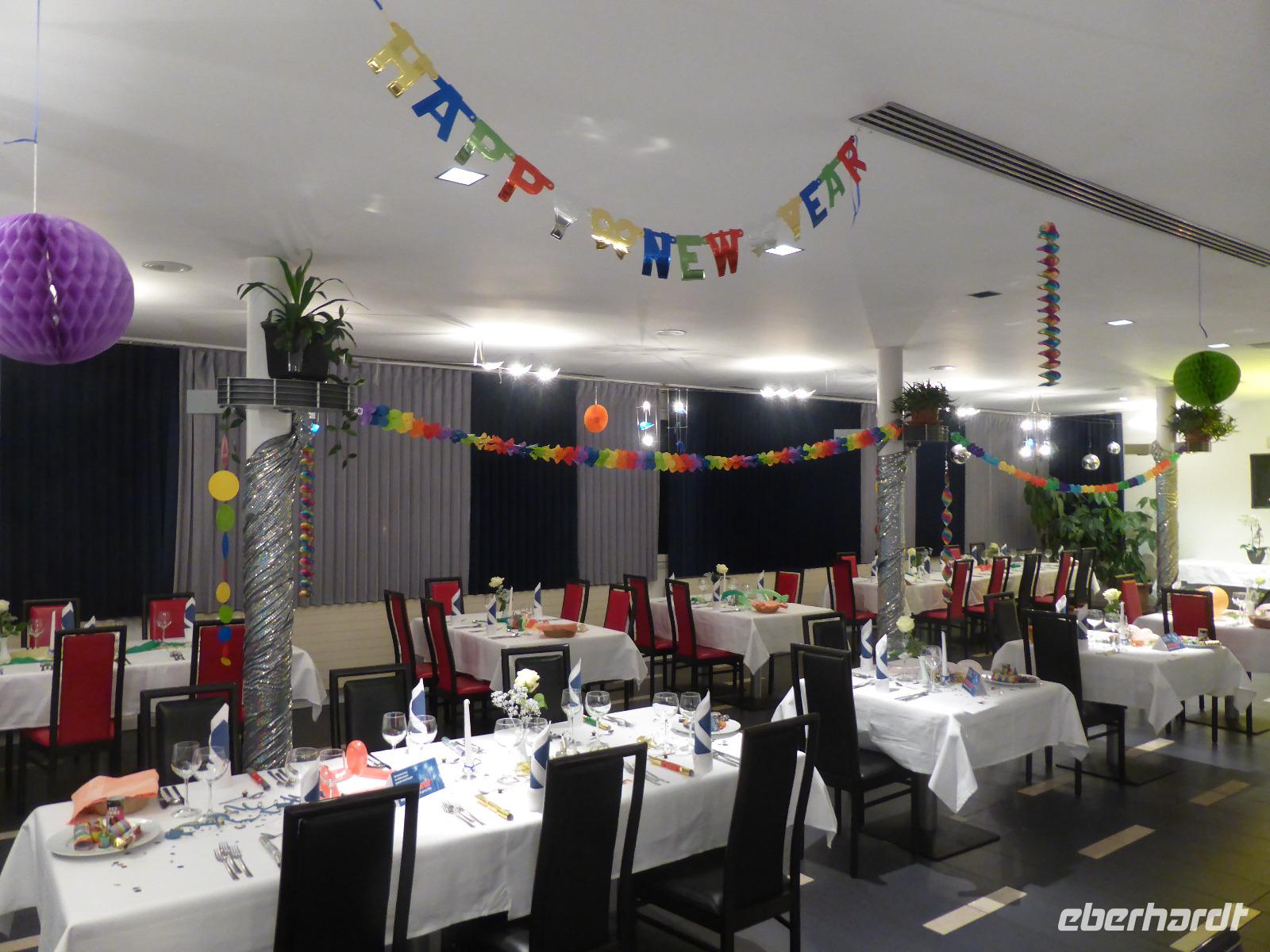 Zurück im Hotel hatten wir noch etwas Zeit bis zur Silvesterfeier. Um 19:00 Uhr startete der Empfang im schön geschmückten Hochzeitsaal des Hotels Goldrainerhof. Beim 6 - Gang - Silvestermenü wurden wir wieder kulinarisch verwöhnt auch wenn es etwas lange dauerte. Die Zeit bis Mitternacht verbrachten wir mit einigen Tänzen und Bleigießen. Den Countdown zählten wir dann gemeinsam und begrüßten das neue Jahr mit einem Glas Sekt.