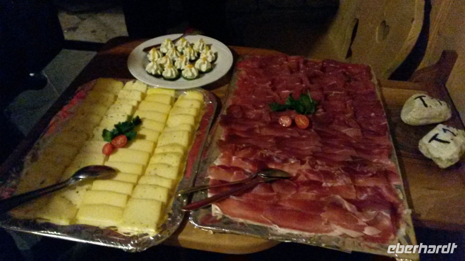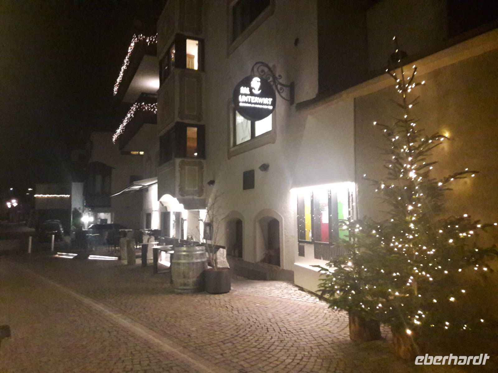 Unser Tagesprogramm war noch nicht zu Ende! Im Hotel Unterwirt angekommen – begann die Weinprobe mit einen klaren, hellgelben Hauswein mit leichten grünen Reflexen. Direkt gegenüber befindet sich der Martinerhof’s Weinkellerei Passir ! Eine kleine Erklärung rundete alles ab – aber natürlich auch mit dem roten Wein – er zeigt sich im Glas rubinrot und duftet nach Kirschen und Veilchen. Der leichte bis mittelschwere Rotwein erinnert an Bittermandeln. Blauburgunder oder Vernatsch sind dabei nur zwei Sorten.