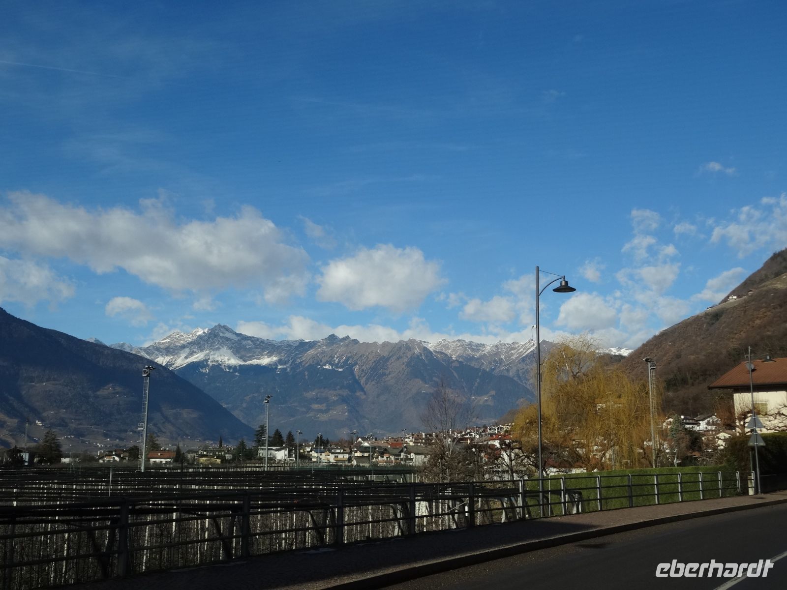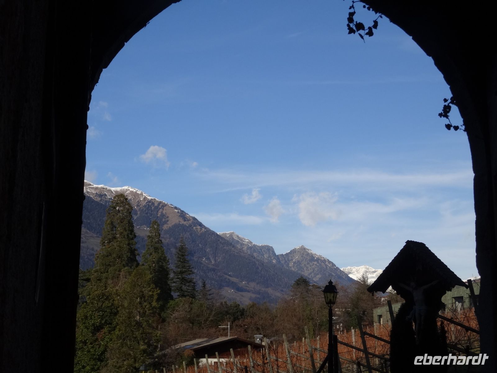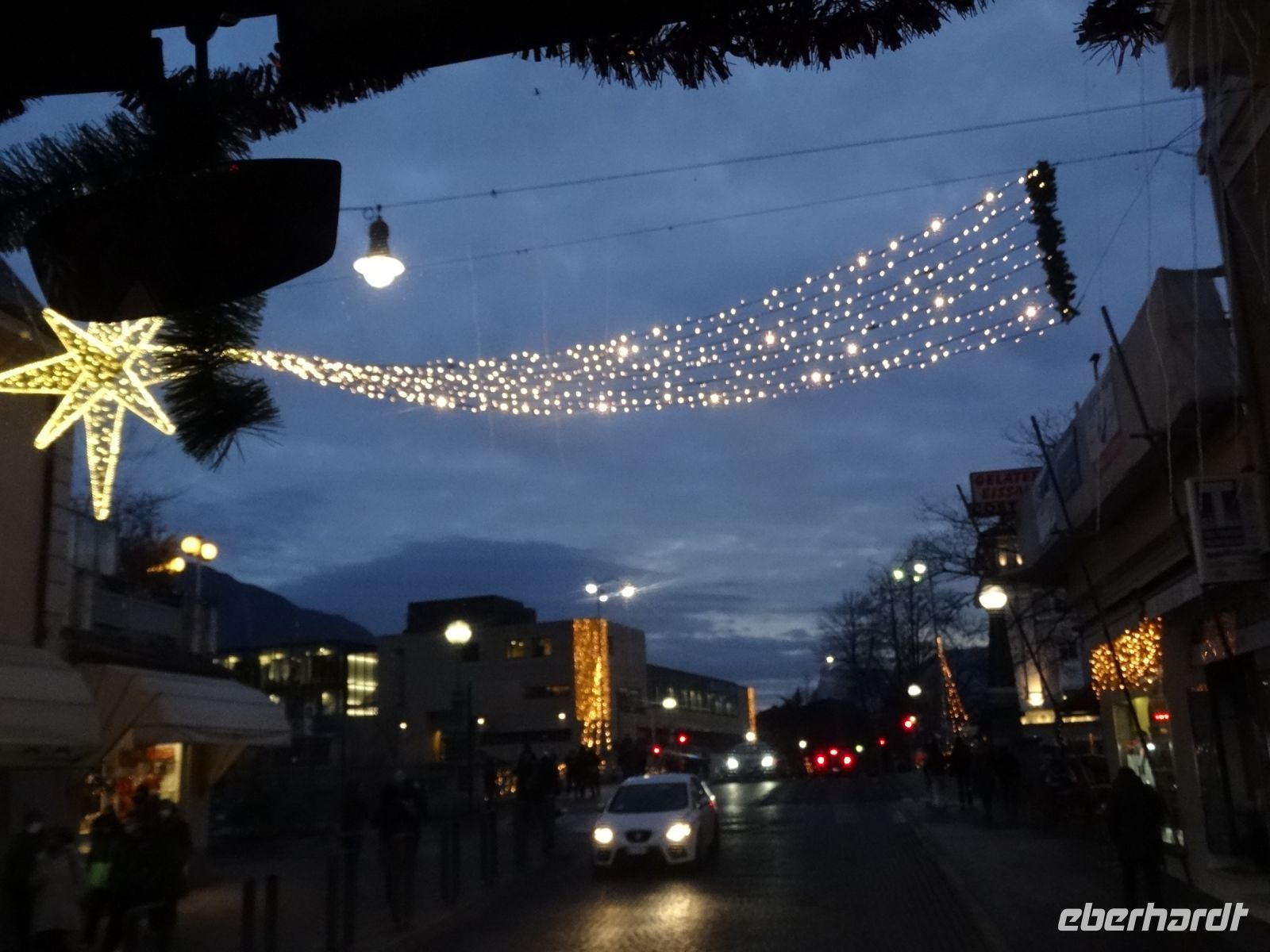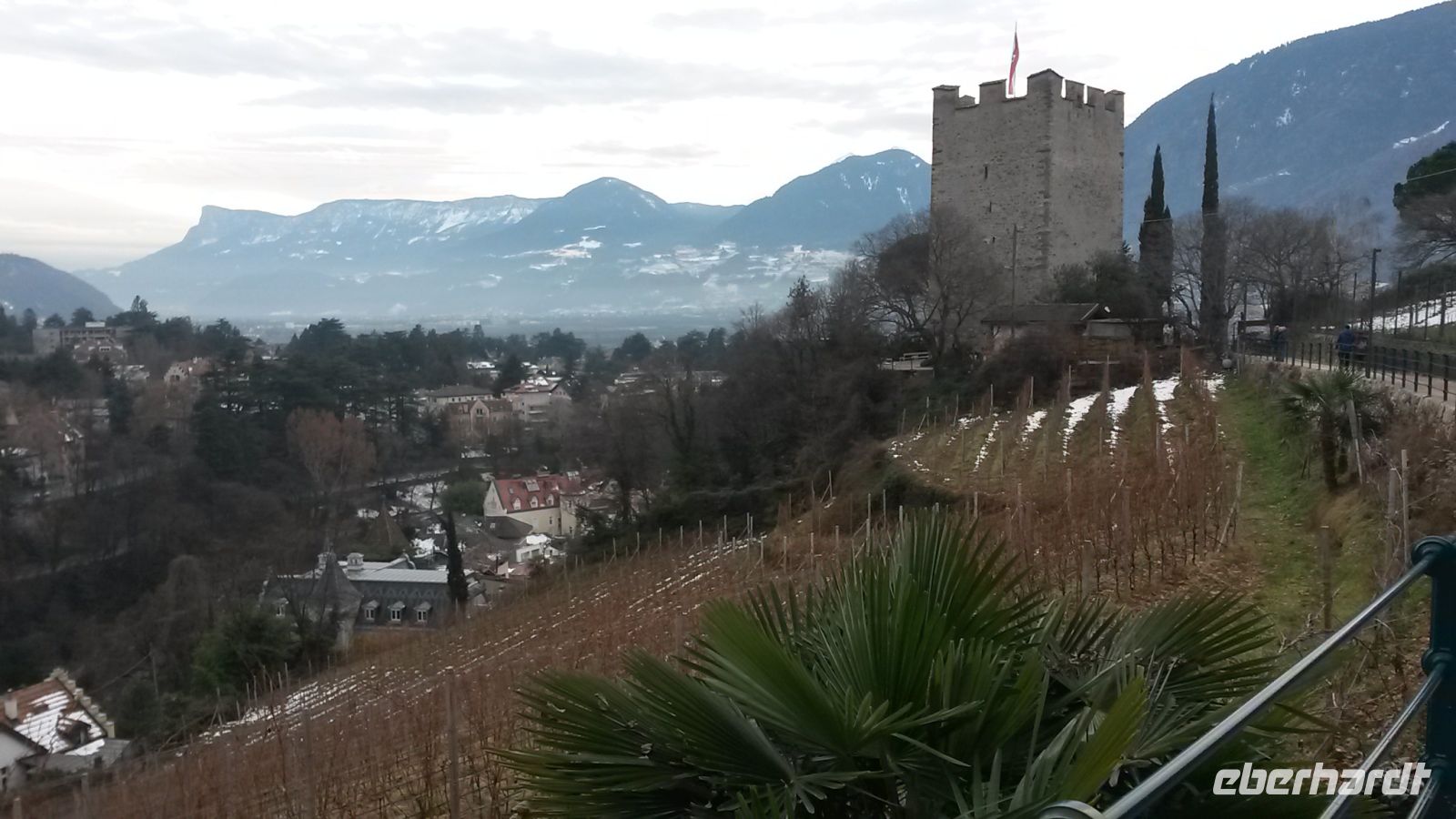 Unsere erste Station an diesem Tag war Dorf Tirol. Wir spazierten zur Dorfmitte über den Apfel- und Weinweg. Wir konnten die Bergwelt zur Texelgruppe, zum Ortlergebiet genießen und auch der Blick zum Schloß Tirol, das Burggrafenamt sowie den ersten Teil des Vinschgaus. Wir fuhren weiter nach Meran zur berühmten Thermal-und Kurstadt. Wegen des milden Klimas kurten hier schon die Kaiserin Sissi mit ihrem Franz. Meran liegt wunderschön von 3 Seiten mit Bergen umgeben im oberen Etschtal. Wir bummelten durch die festlich geschmückten Altstadtgassen und spazierten die Meraner Kurpromenade am Fluss entlang. Einige der Reisegäste unternahmen mit mir noch den Rundgang über den Tappeinerweg entlang der Passer bis zum Tor der Zenoburg und zum Pulverturm. Ein besonderer Ausblick auf Meran und das Unterland bis zum Mendelzug. Zurück in der Stadt standen überall die Buden des Meraner Christkindelmarktes und es gab viel zu bestaunen, zu probieren oder auch zu kaufen. Für jeden war etwas dabei. Nicht zu spät traten wir die Rückfahrt an, denn heute war ja Heiligabend. Im Hotel erwartete uns mit Kaffee und Strudel eine besinnliche Zeit. Gemeinsam in geselliger Runde wurden Gedichte, Verse, lustige Begebenheiten aber auch besinnliche nachdenkliche Zeilen vorgetragen. Ein guter Tropfen Wein tat das Seine dazu.