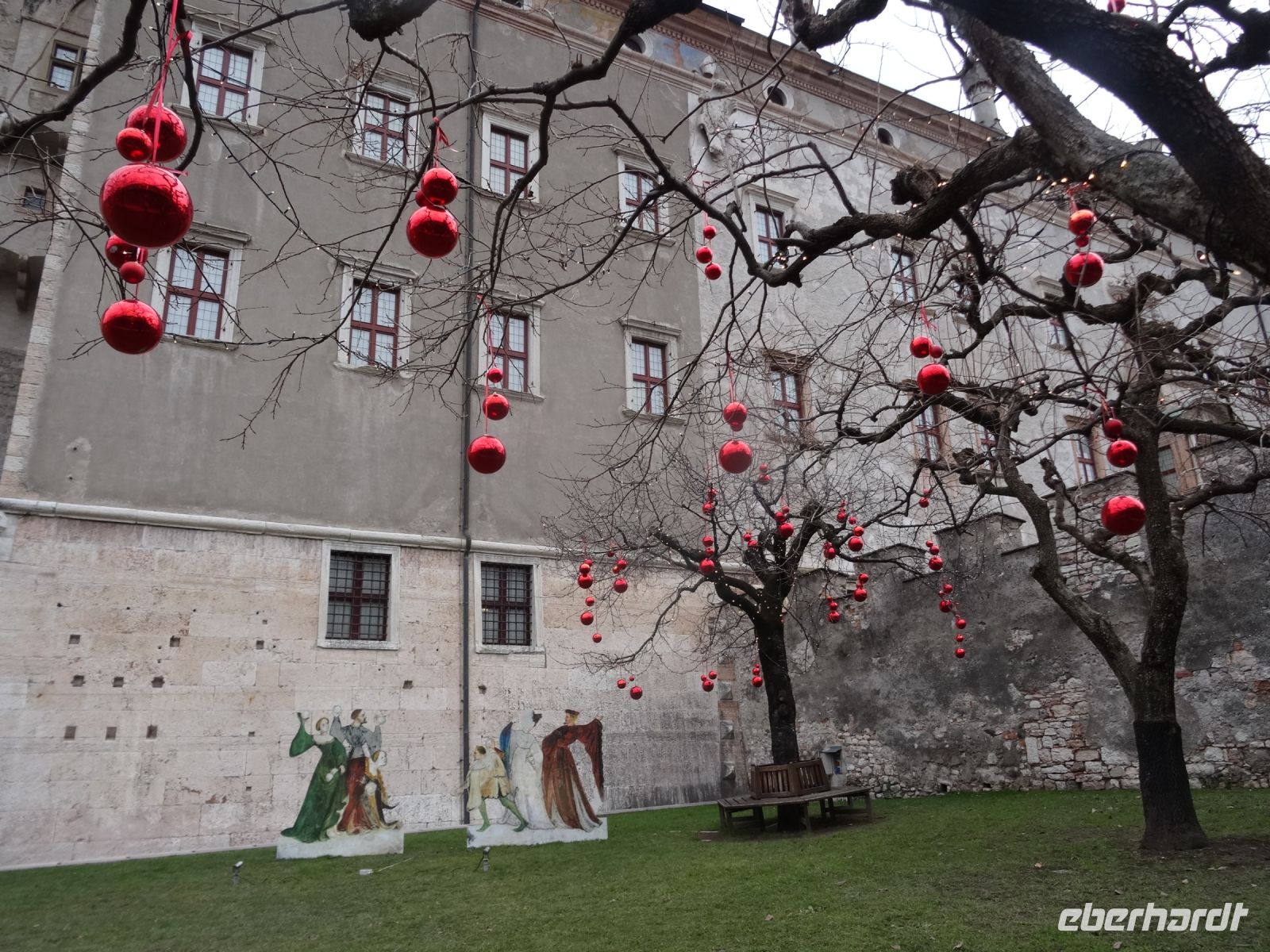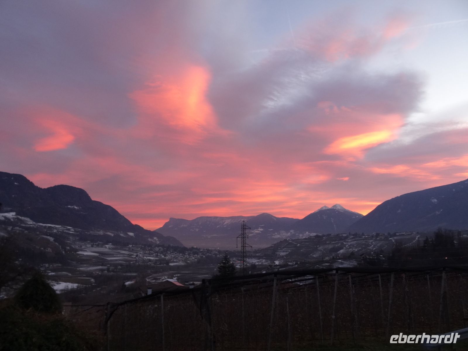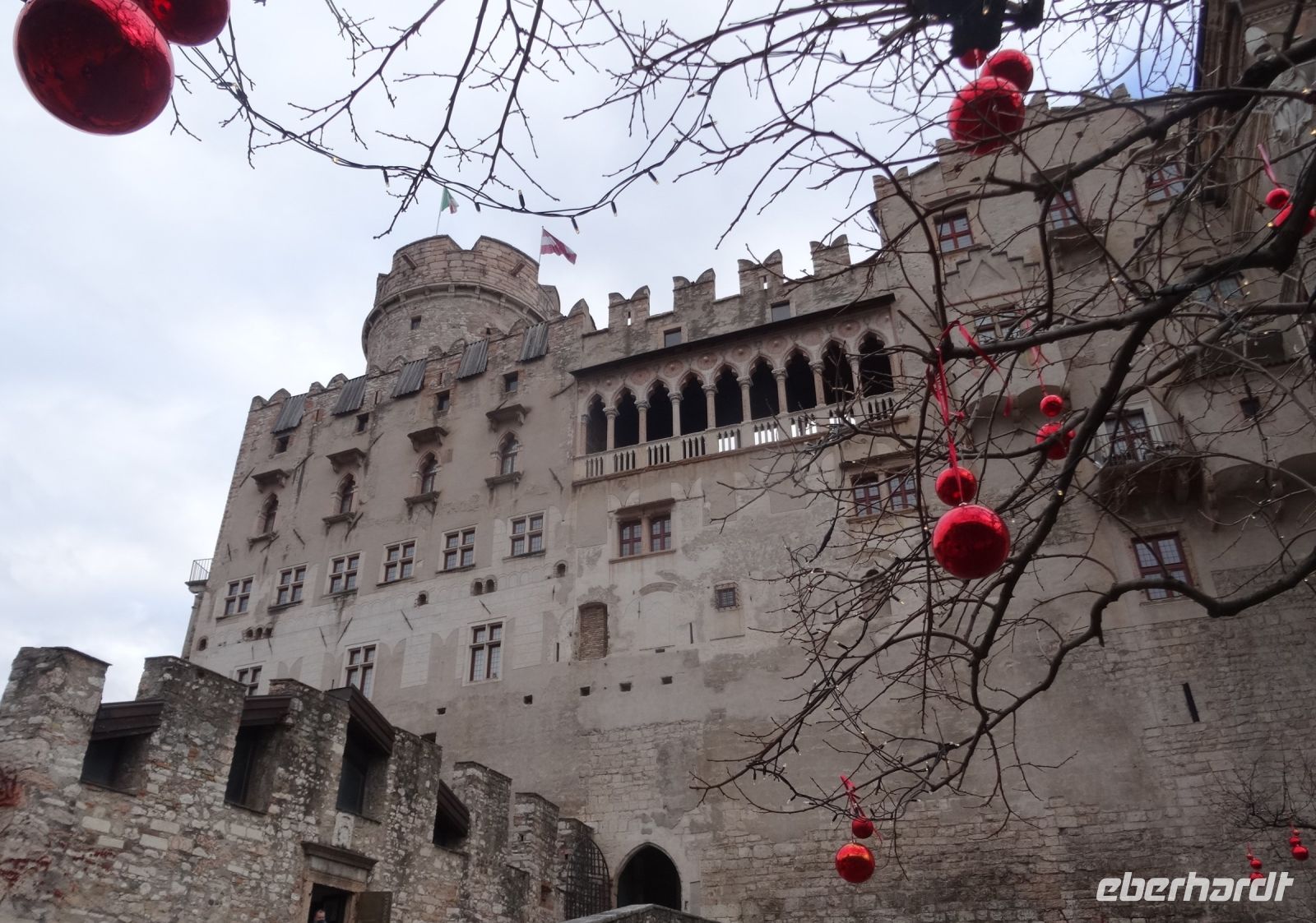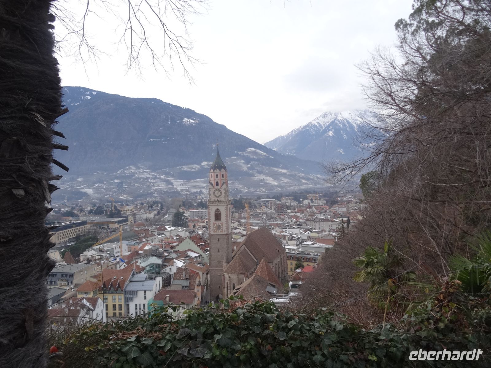 Unsere erste Station an diesem Tag war Dorf Tirol. Wir spazierten zur Dorfmitte über den Apfel- und Weinweg. Wir konnten die Bergwelt zur Texelgruppe, zum Ortlergebiet genießen und auch der Blick zum Schloß Tirol, das Burggrafenamt sowie den ersten Teil des Vinschgaus. Wir fuhren weiter nach Meran zur berühmten Thermal-und Kurstadt. Wegen des milden Klimas kurten hier schon die Kaiserin Sissi mit ihrem Franz. Meran liegt wunderschön von 3 Seiten mit Bergen umgeben im oberen Etschtal. Wir bummelten durch die festlich geschmückten Altstadtgassen und spazierten die Meraner Kurpromenade am Fluss entlang. Einige der Reisegäste unternahmen mit mir noch den Rundgang über den Tappeinerweg entlang der Passer bis zum Tor der Zenoburg und zum Pulverturm. Ein besonderer Ausblick auf Meran und das Unterland bis zum Mendelzug. Zurück in der Stadt standen überall die Buden des Meraner Christkindelmarktes und es gab viel zu bestaunen, zu probieren oder auch zu kaufen. Für jeden war etwas dabei. Nicht zu spät traten wir die Rückfahrt an, denn heute war ja Heiligabend. Im Hotel erwartete uns mit Kaffee und Strudel eine besinnliche Zeit. Gemeinsam in geselliger Runde wurden Gedichte, Verse, lustige Begebenheiten aber auch besinnliche nachdenkliche Zeilen vorgetragen. Ein guter Tropfen Wein tat das Seine dazu.