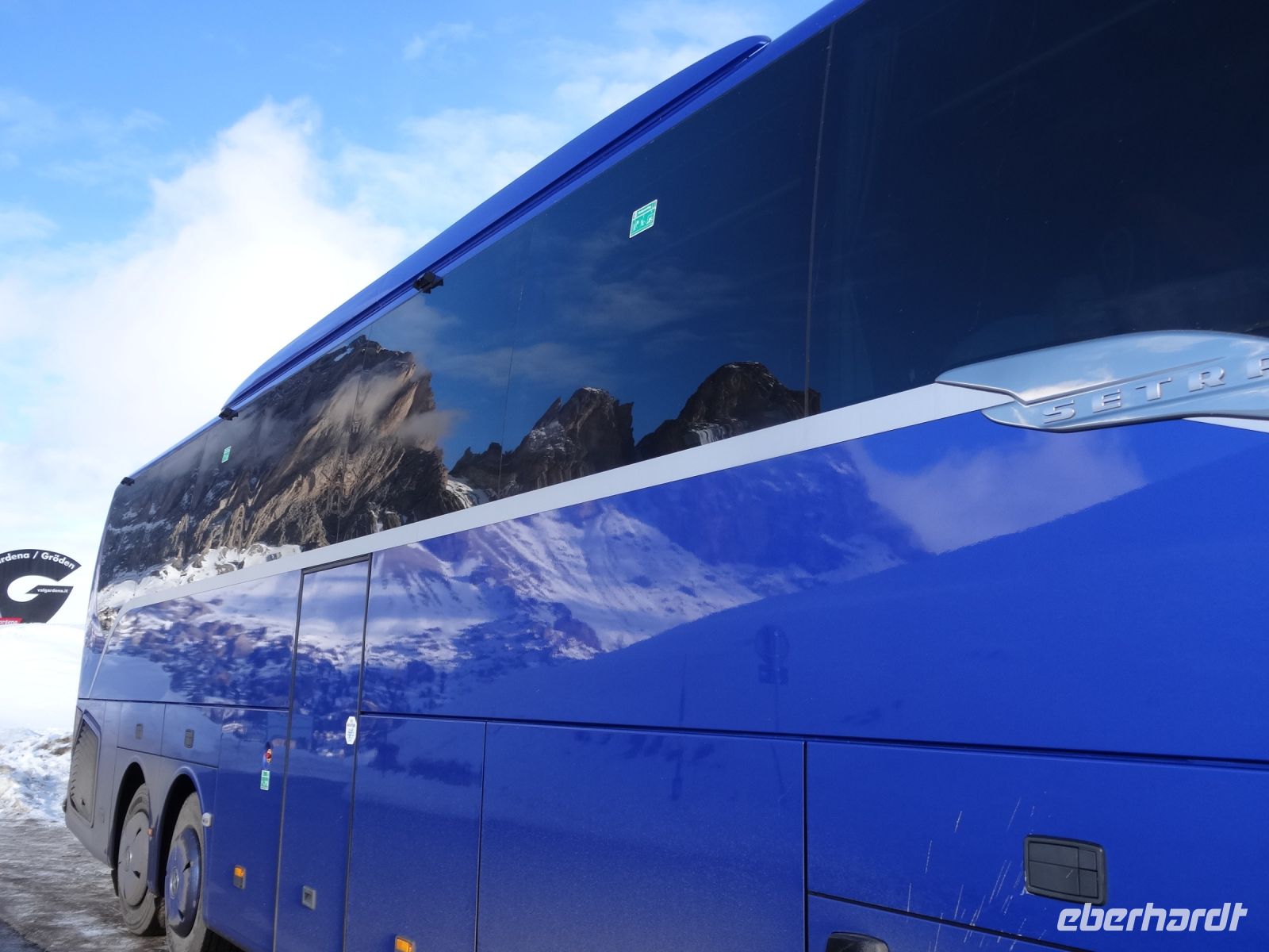 Es war der letzte Tag im alten Jahr und wieder starteten wir unseren Ausflug bei herrlichem Sonnenschein. In der Nacht hatte es in den Bergen wieder leicht geschneit und alles war wie frisch gezuckert. Noch einmal ging es aus dem Passeiertal an Meran vorbei und weiter bis zur Töll. Der Abzweig ins Schnallstal war schnell erreicht. Das 25 km lange Tal mit dem Beinahmen das „ reich der höchsten Bauernhöfe“ ist zutreffend, denn bei der Weiterfahrt sahen wir hoch oben die Orte Karthaus, den spitzen Turm vom Katharinaberg, Unsere Frau- der größte Ort der Talgemeinde. Die Straße gewinnt in engen Kehren die Höhe des Vernagter Stausees (1.689 m) auch in dieser Anstauung sind mehrere Gehöfte versunken. An dieser Stelle bot sich ein wunderschönes Panorama über den See auf den langgestreckten Salurnkamm. Der Ort Vernagt ist auch Ausgangspunkt für wunderschöne Bergtouren z.B. zur Similaunhütte. Nach der letzten Steigung erreichen wir den Ort Kurzras in hochalpiner Umgebung. Kurzras ist Mittelpunkt eines größten Touren- und Skigebietes. Was wir laif erleben konnten. Die Schnalstaler Gletscherbahn mit Bergstation (3.216 m) und Restaurant war unser Ziel. Auch wurde hier eine intensive Kontrolle zu 2 G durchgeführt bevor wir die Seilbahn benutzen durften. An der Bergstation angekommen, Aussichten auf das ganzjährige Gletschergebiet, das Gipfelkreuz Grawand 3.251m, aber die umliegende Bergwelt erreichbar mit Hochjochferner, Weißkugel, Niederjoch . Über diese Jöcher werden heute noch jedes Jahr große Schafherden nach Nordtirol getrieben - ins Venter Tal, wo die Südtiroler Bauern noch uralte Weiderechte besitzen. Die Zeit verging wie im Fluge, man schaute auf die Skifahrer, die Bergwelt und vor allen den dankbaren schönen Wetter des letzten Tages des Jahres nach.