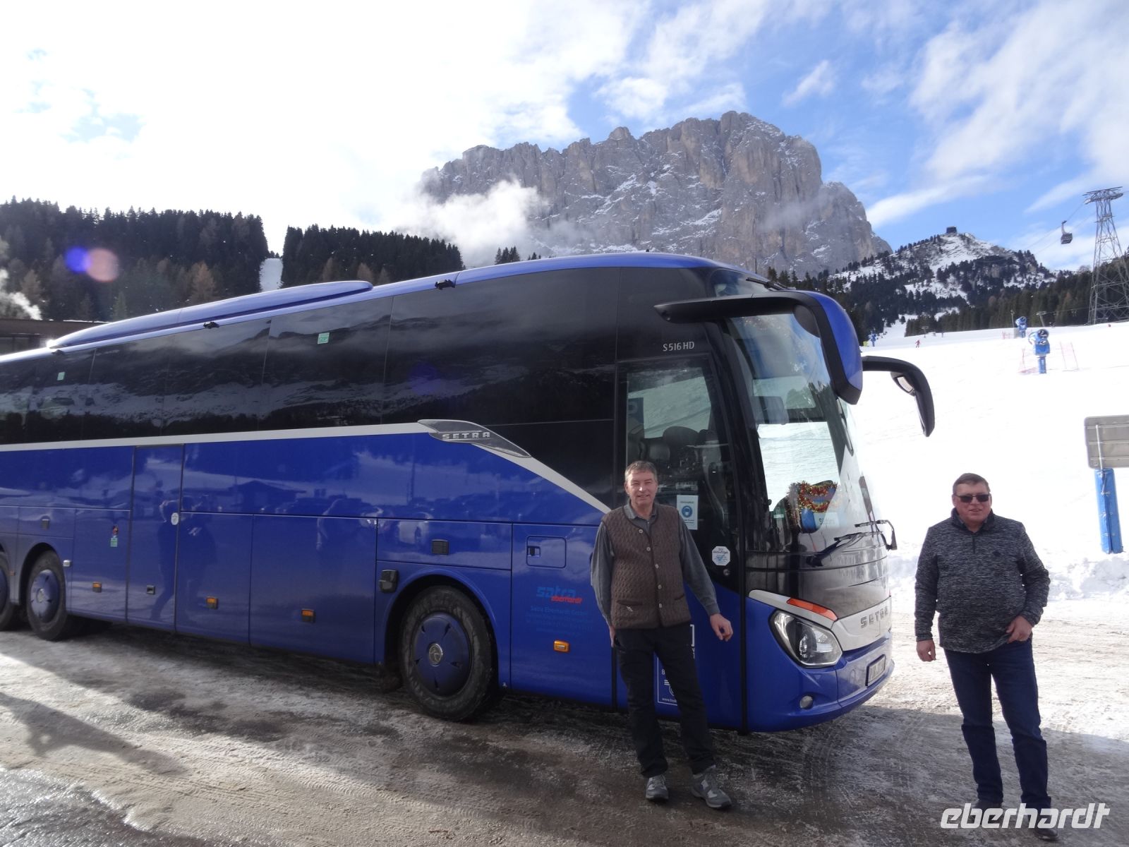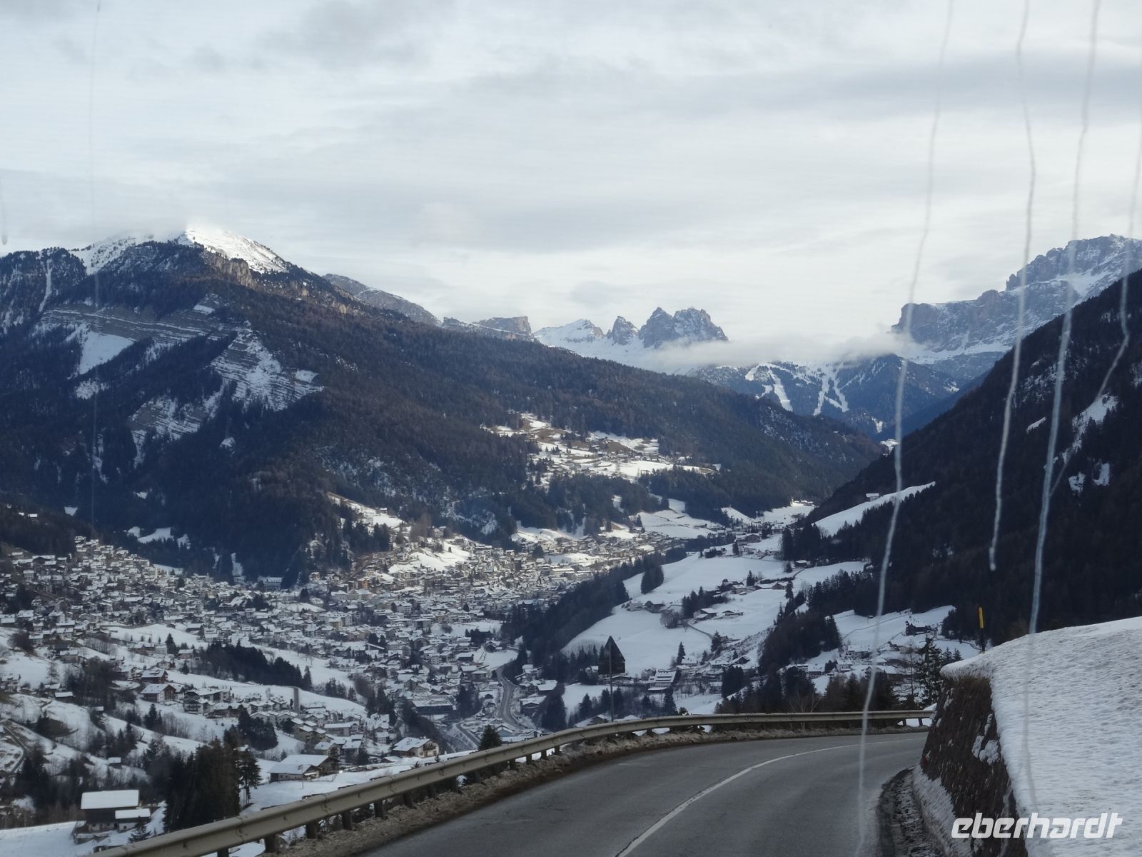 Nach dieser Besichtigung fuhren wir durch das Grödnertal, St.Ulrich , St.Christina, Wolkenstein nach Plan de Gralba. Der nächste Stop an den Liftanlagen für die Skifahrer. Ein Eldorado für die große Sella-Runde über 35 km auf Skiern.