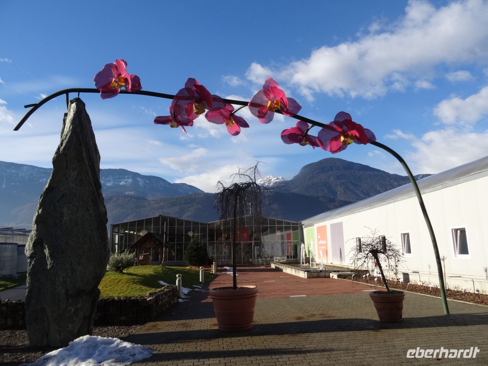 Mit einer fachgerechten Führung erleben wir die Orchideenwelt. 300 Orchideenarten, eine Seenlandschaft und eine Tropen-Villa machen den Reiz der Orchideenwelt Raffeiner in Gargazon aus. Mit fast 300 Sonnentagen im Jahr bietet Südtirol auch für Orchideen das geeignete Klima, das sich manchmal fast schon mediterran präsentiert. Bis eine Orchidee blüht, vergehen bis zu 4-5 Jahre. Die "Königin aller Blumen" durfte auf dieser Reise nicht fehlen, hunderte von Koi-Karpfen schwimmen im großen Teich mit Wasserfall und Hängebrücke ihre Bahnen. Gemütlich haben es sich die Schildkröten auf den Steinen gemacht und lassen sich von ganz Nah beim Fressen, Schwimmen oder Faulenzen beobachten. In der Papageien Voliere sind zahlreichen Gebirgslori-Pagageien zu bestaunen oder auch mit Spezialfutter zu verwöhnen. Genießen Sie diese Atmosphäre in der freien Zeit.