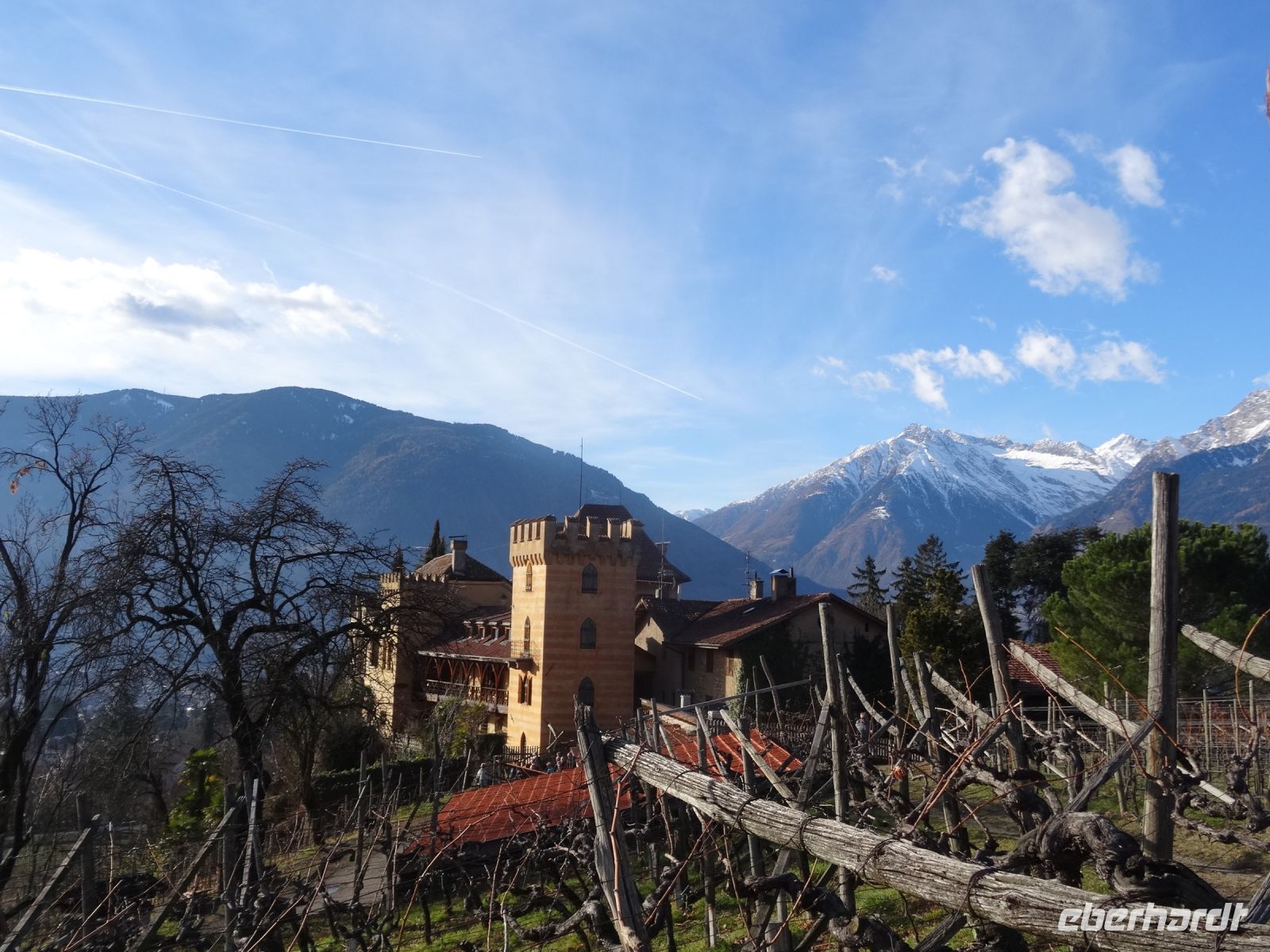 Am Nachmittag wurde das Weinbaumuseum im Schloss Rametz besichtigt. Wir begannen mit einem kleinen Rundgang durch die Weinberge, dort erfuhren Sie alles wissenswerte über die Arbeit im Weinberg und über die Geschichte von Schloss Rametz. Auch Sisi mit ihren Gefolge war öfters hier zu Gast. Dann besuchten wir das Weinbaumuseum, in vier Räumen sahen wir allerlei alte Arbeitsgeräte, die früher für die harte Arbeit im Weinberg unerlässlich waren. Daraufhin stiegen wir in die Keller hinunter um mehr über die Kellerarbeit zu erfahren. Der Keller aus dem 18. Jahrhundert ist sicherlich der schönste im gesamten Burggrafenamt.