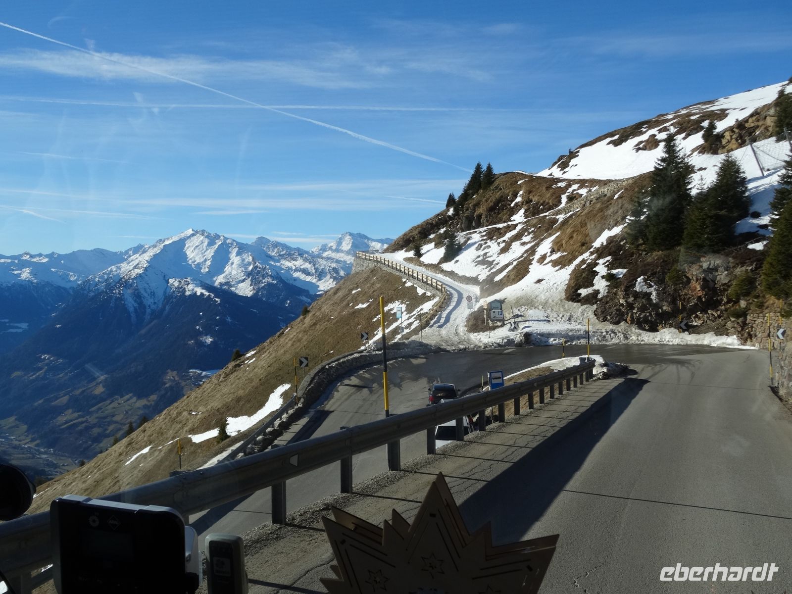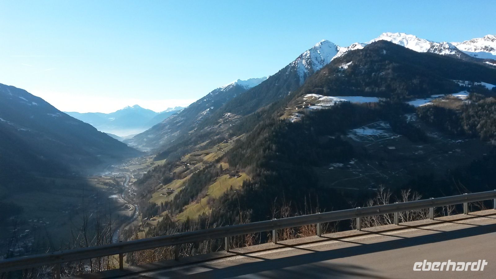 Das „Neue Jahr“ wurde mit einem späten Frühstück begonnen. Allen wurde noch ein – vor allem - „Gesundes Neues Jahr“ gewünscht. Bei schönstem Wetter starteten wir die zusätzliche Tour zum Jaufenpass. Sehr kurvenreich und vor allen den Ski-Fahrern mit PKW, immer wieder die Vorausfahrt zu ermöglichen, standen wir zur Mittagszeit am Jaufenpass. Einmalige Aussichten auch am ersten Tag des Jahres 2022 auf die umliegende Bergwelt, Texelgruppe, Jaufenmassiv , Ratschings und die Stubaitaler Alpenkette. Alle Berge zum „Greifen “ nah ! Ein lohnender Kurztrip !