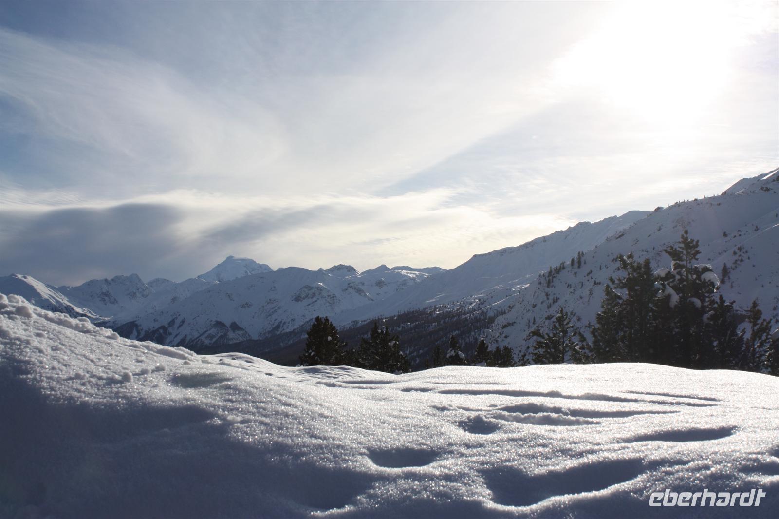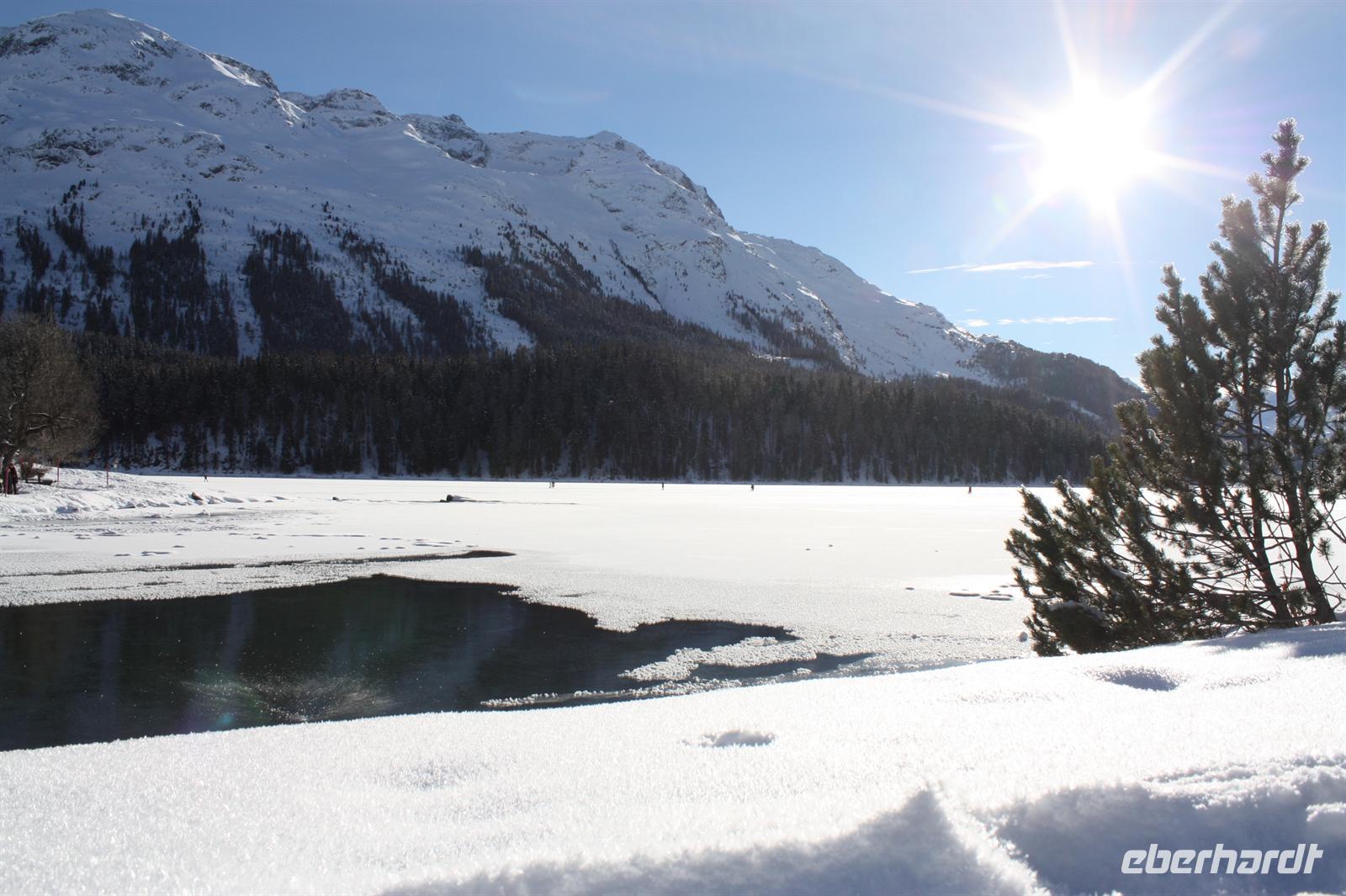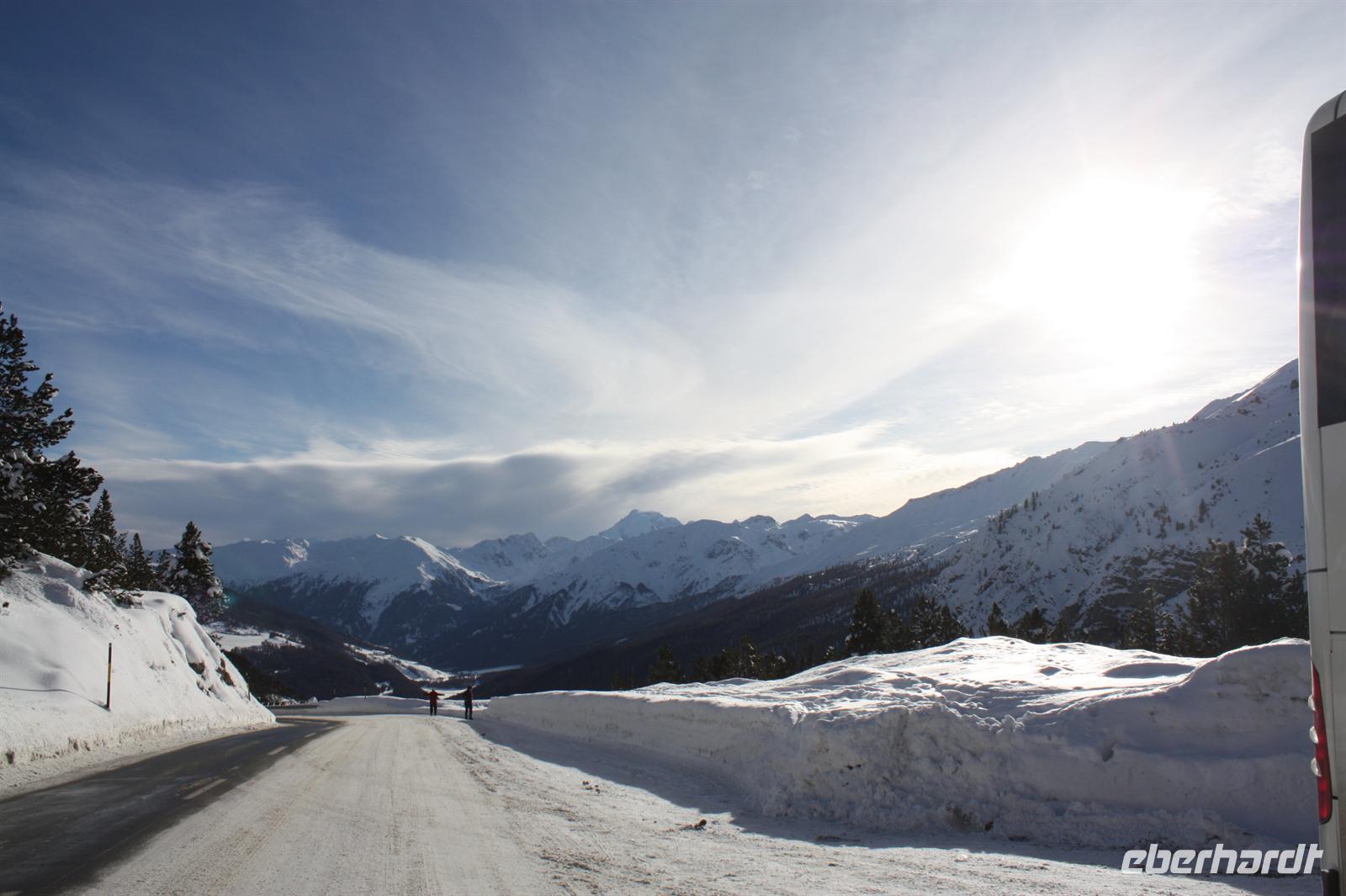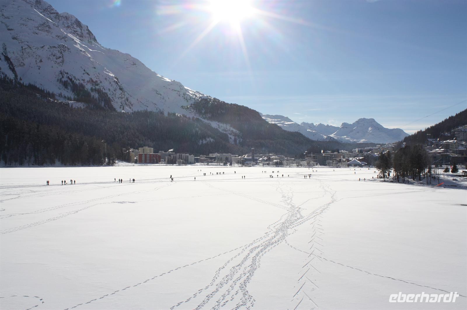 Um das Dreiländereck Italien-Österreich-Schweiz ausreichend zu nutzen, reisten wir am 30.12. in die Schweiz. Da wir bereits das Schnals- mit dem Martelltal verbunden, blieb uns dieser Tag schließlich für einen Zusatzausflug über. Da gutes Wetter wieder vorhergesagte wurde fuhren wir über den Ofenpass mit herrlichen Blick auf die Ortlergruppe nach St. Moritz. Bei strahlendem Sonnenschein schnupperten wir vom mondänen Leben der Schönen und Reichen. Wer wollte genehmigte sich zum Ausklang des Jahres ein teures Süppchen oder gern auch ein Stück Kuchen bzw. spazierte in der Sonne über den zugefrorenen See. Ein gelungener Ausflug!