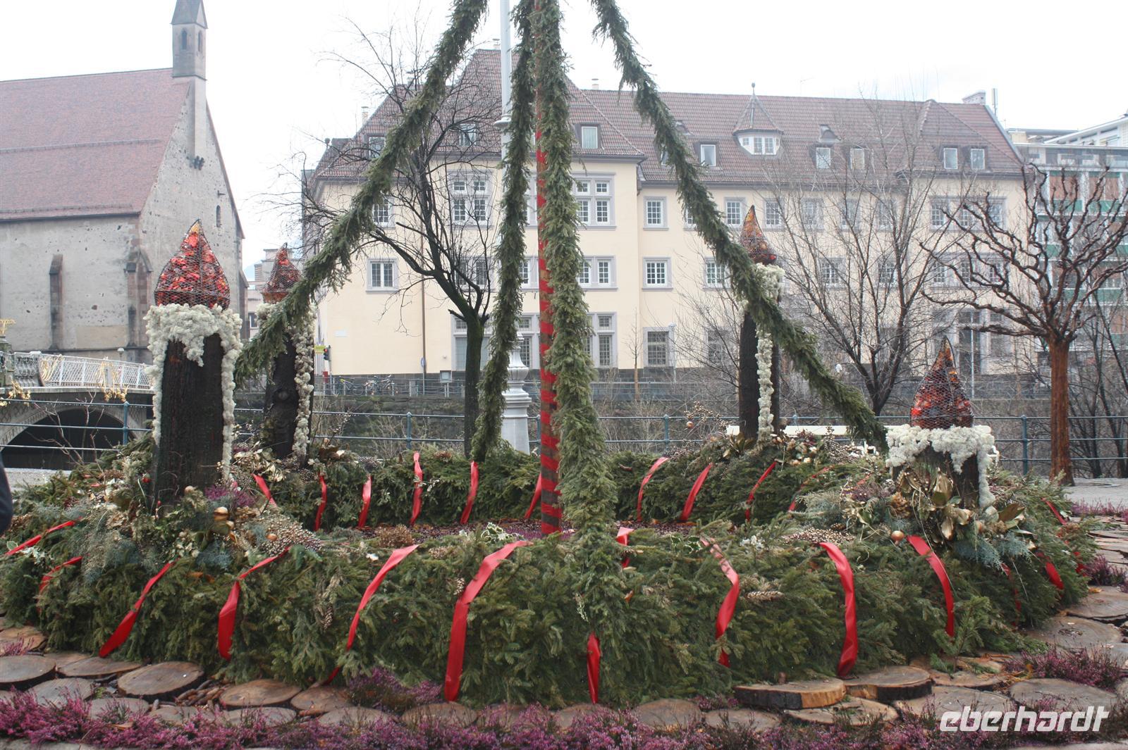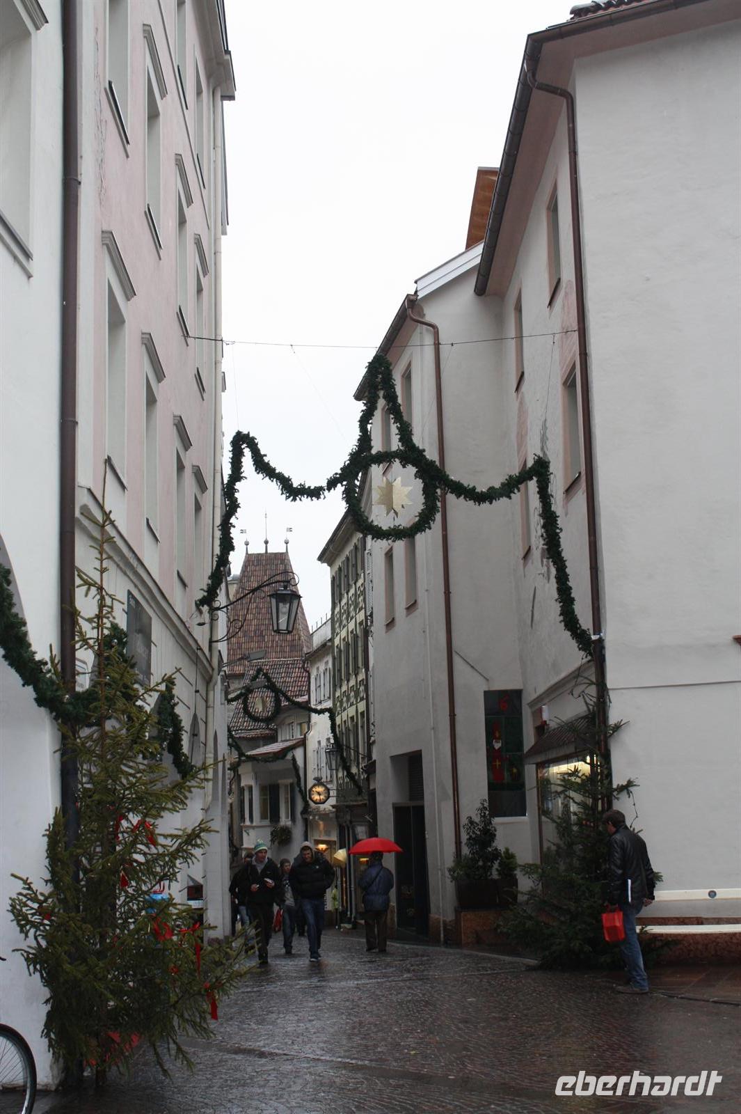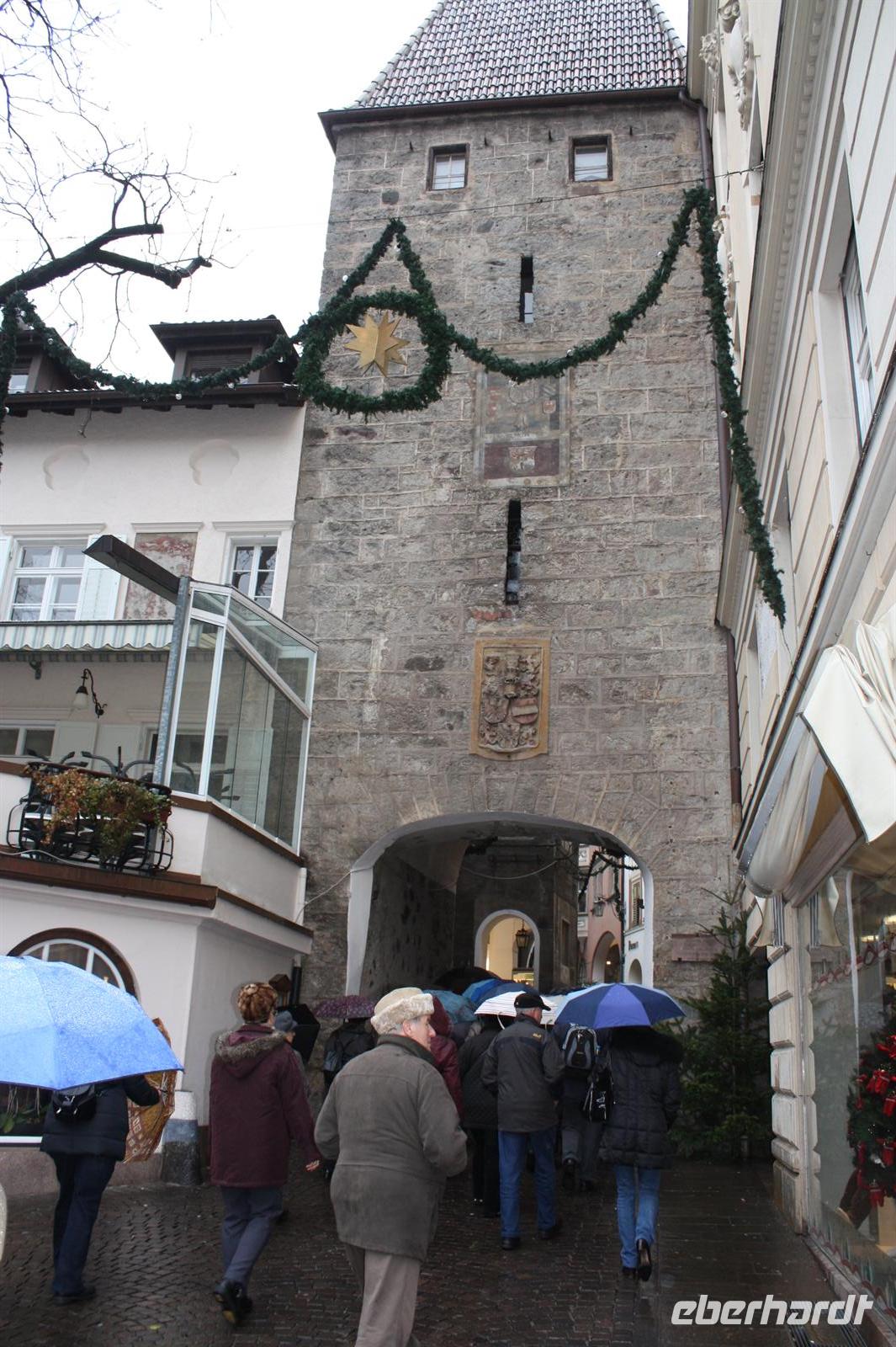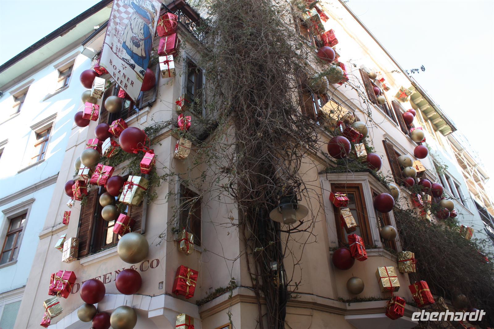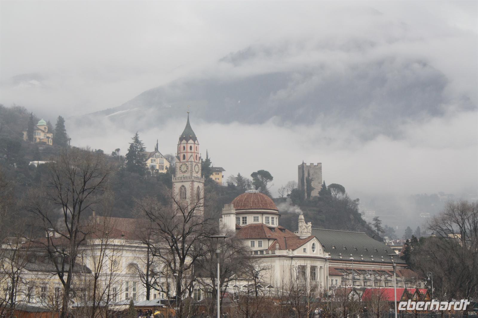 Den Weihnachtstag verbrachten wir in der Kur- und Thermalstadt Meran. Schon Kaiserin Sisi verleihte der Stadt einen noch heute spürbaren Glanz. Bei wolkenverhangenem Himmel erfuhren wir von unserem örtlichen Reiseleiter Herrn Gasser wissenswertes über die Stadt. Nach und nach lichteten sich die Reihen der Gruppe um die Stadt auch auf eigene Faust zu erkunden. Schließlich lud der Christkindelmarkt und die Lauben zum Verweilen ein. Den Weihnachtsnachmittag verbrachte die Reisegruppe bei Kaminfeuer, Punsch und selbts gebackenem Plätzchen. Auch der Eberhardt-Weihnachtsmann fand den Weg bis Goldrain und bescherte unsere 40 Reisegäste. Bei einem reichhaltigen 5-Gänge-Menü der Extraklasse klang der besinnliche Weihnachtstag im Herzen Südtriols gemütlich aus.