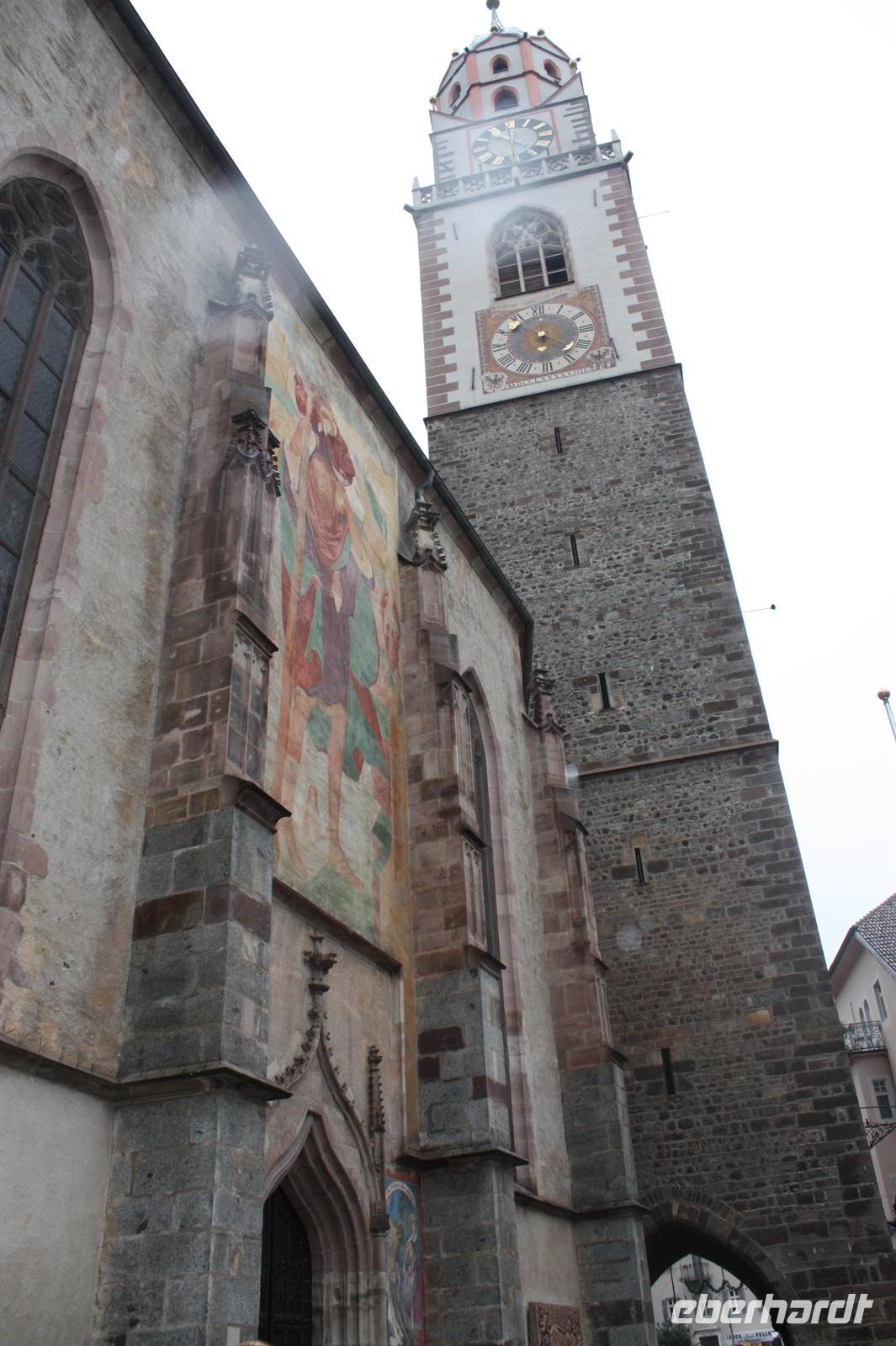 Nach den anstrengenden Dolomitenfahrten gönnen wir unserem Buschauffeur Matthias einen busfreien Tag und fahren mit der Vinschgaubahn zunächst bis Meran um schließlich mit dem Regionalzug nach Bozen zu gelangen. Die Fahrt führte uns durch die herrlichen Obstplantagen des Vinschgau. In der Landeshauptstadt Bozen angekommen gingen wir gemeinsam zum Waltherplatz. Wer wollte konnte die insgesamt 4 Std. zur freien Verfügung nutzen oder gern gemeinsam mit mir, Reisebegleitung Nicole Hickmann, und dem örtlichen Reiseleiter Herrn Gasser die Schönheiten der Stadt erkunden. Den prächtigen Dom statteten wir ebenso einen Besuch ab wie dem Dominikanerkloster mit seiner Johanneskapelle und den wertvollen Fresken. Weiter führte uns der Weg zum legendären Obstmarkt. Danach durfte nach Herzenslust gebummelt oder im Sonnenschein ein Cappuccino getrunken werden. Gemeinsam traten wir die Zugreise nach Goldrain am Nachmittag an.