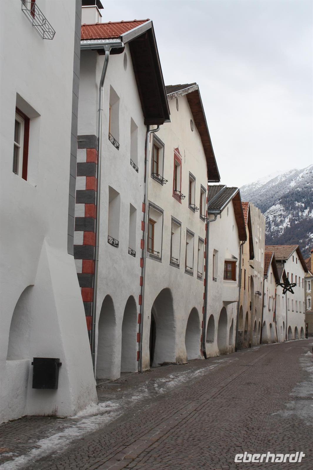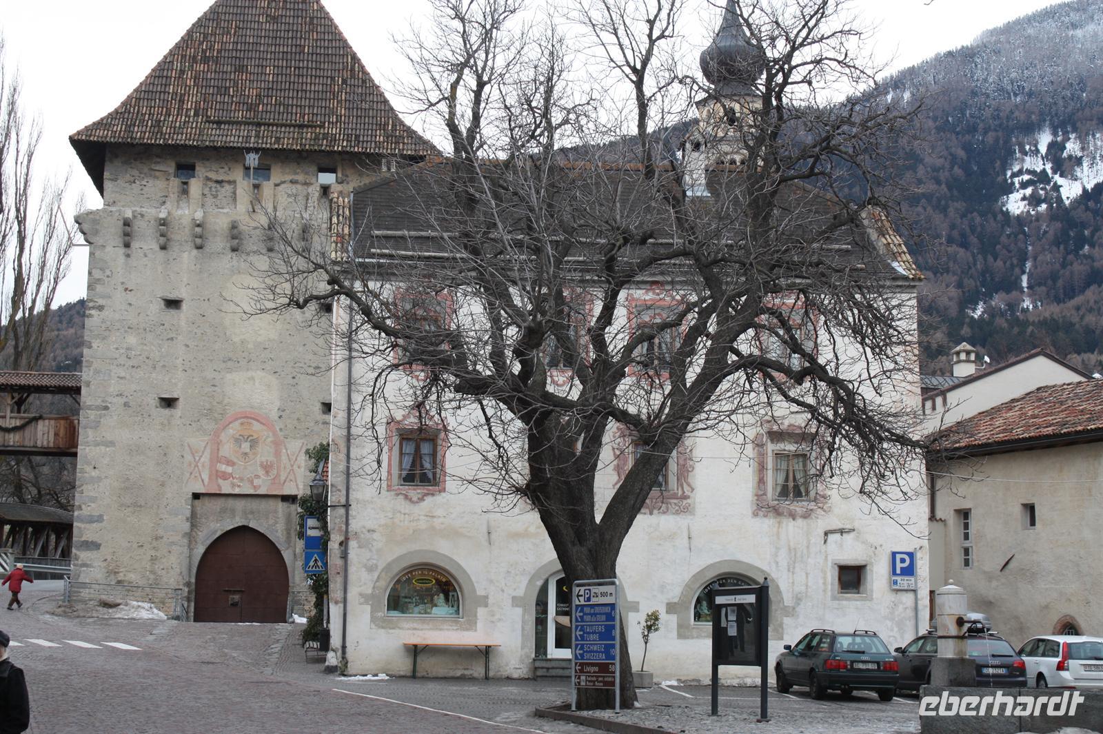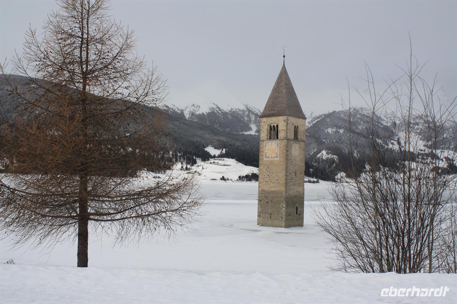 Da strahlender Sonnenschein für die Nachweihnachtszeit gemeldet wurde, tauschten wir die Tage und wagten am ersten Weihnachtstag den Ausflug ins benachbarte Österreich. Den ersten Halt legten wir am Reschensee auf einer Höhe von ca. 1.500 m ein. In Reschen am See staunten wir nicht schlecht über die Kirche im See. Weiter führte uns die Fahrt nach Nauders. In dem bekannten Wintersportort betätigten wir uns zunächst sportlich um den Aufstieg zur Pfarrkirche St. Valentin zu meistern. Nach einem Besuch der Pfarrkirche kamen alle wieder sicheren Fußes im Ort an und genossen ein wenig die Idylle. Leider konnte die Festungsanlage nicht besichtigt werden, da diese geschlossen war. Zum Abschluss des Tages fuhren wir noch zum Geheimtipp der Region. Ziel war das Örtchen Glurns, welches zum UNESCO-Weltkulturerbe ernannt wurde, dank seiner noch vollständig erhaltenen mittelalterlichen Stadtmauer. Es scheint als läge das Örtchen in einem tiefen Schlaf! Wahrlich ein Geheimtipp.