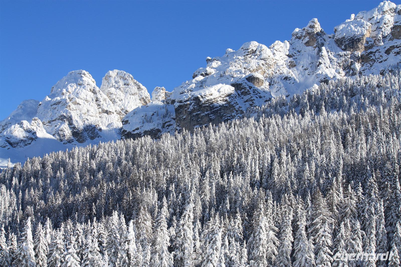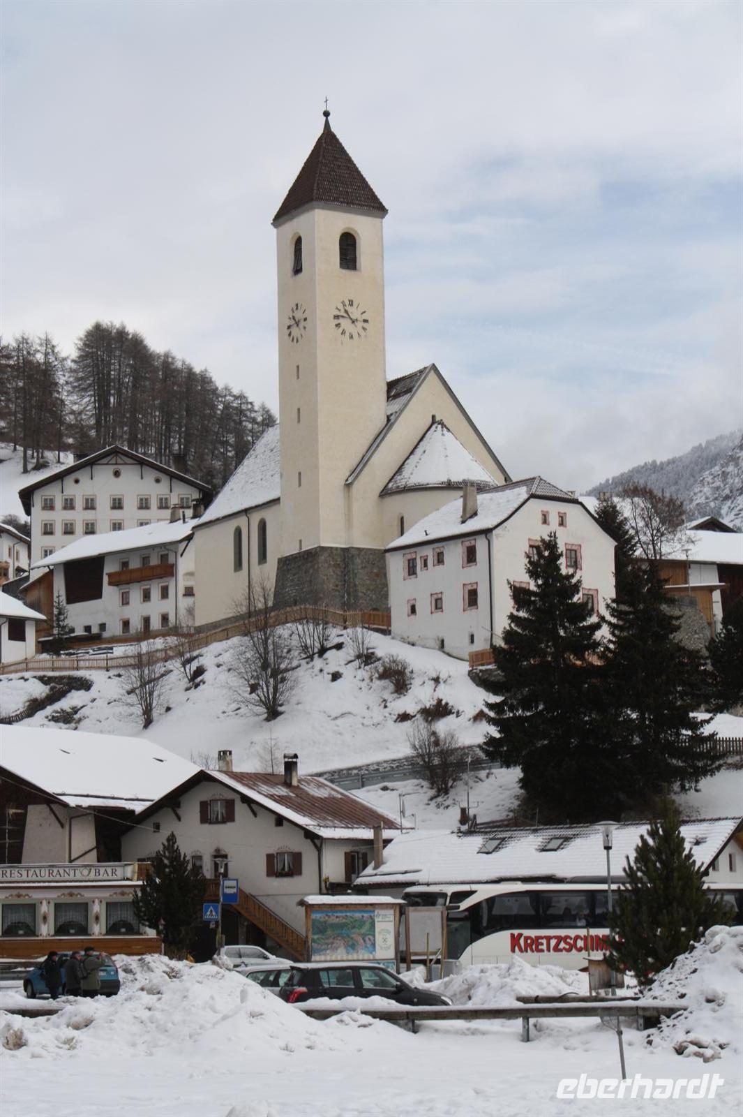 Endlich war es soweit und vor allen Dinge lohnte sich unser Abwarten. Bei strahlendem Sonnenschein starteten wir zur Großen Dolomitenrundfahrt. Beginnend im Pustertal über Brunneck und Toblach erreichten wir unser erstes Etappenziel - funkelnd weiß und strahlendes Blau umhüllten den Missurinasee. Wahrlich ein Winterwunderland. Weiter fuhren wir durch den Olympiaskiort Cortina d'Ampezzo und schließlich etliche Kehren hinauf zum Falzaregopass. Meterhoch schichtete sich der Schnee am Straßenrand. Die Heimreise traten wir schließlich über den Vallparolapass an. Begeistert von der Vielzahl der Eindrücke kehrten wir bei einbrechender Dämmerung erst wieder nach Goldrain zurück.