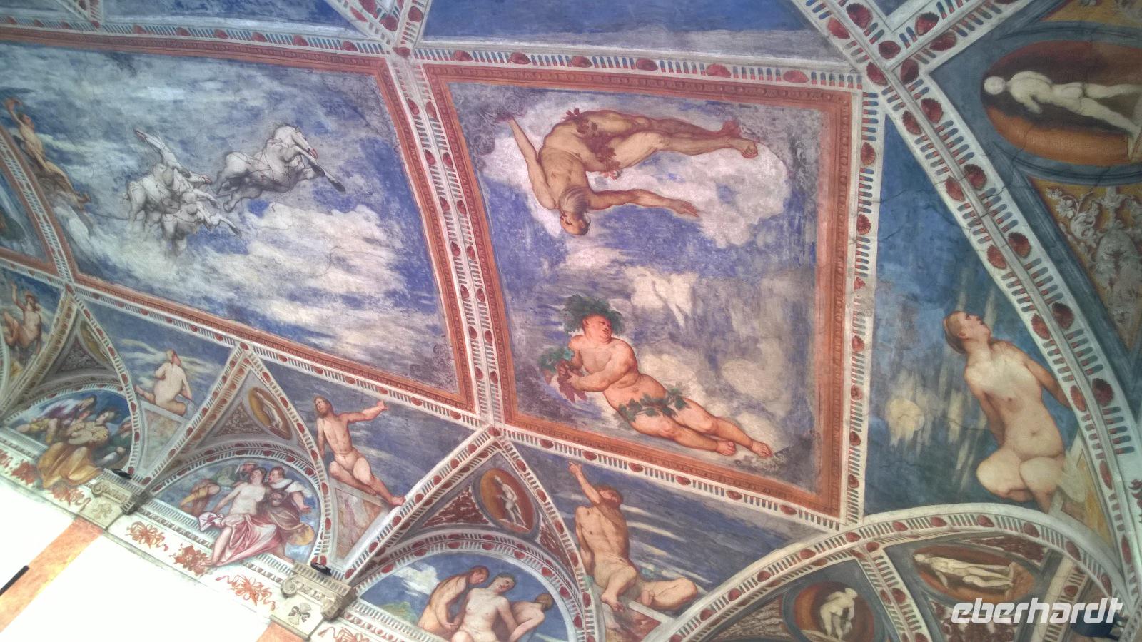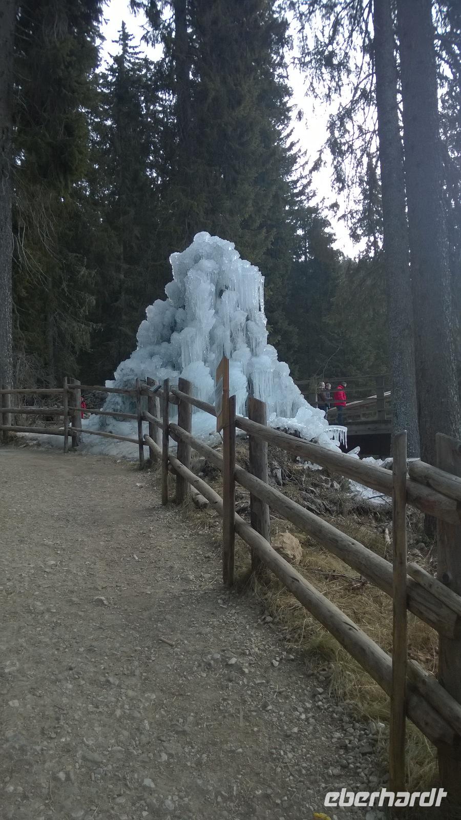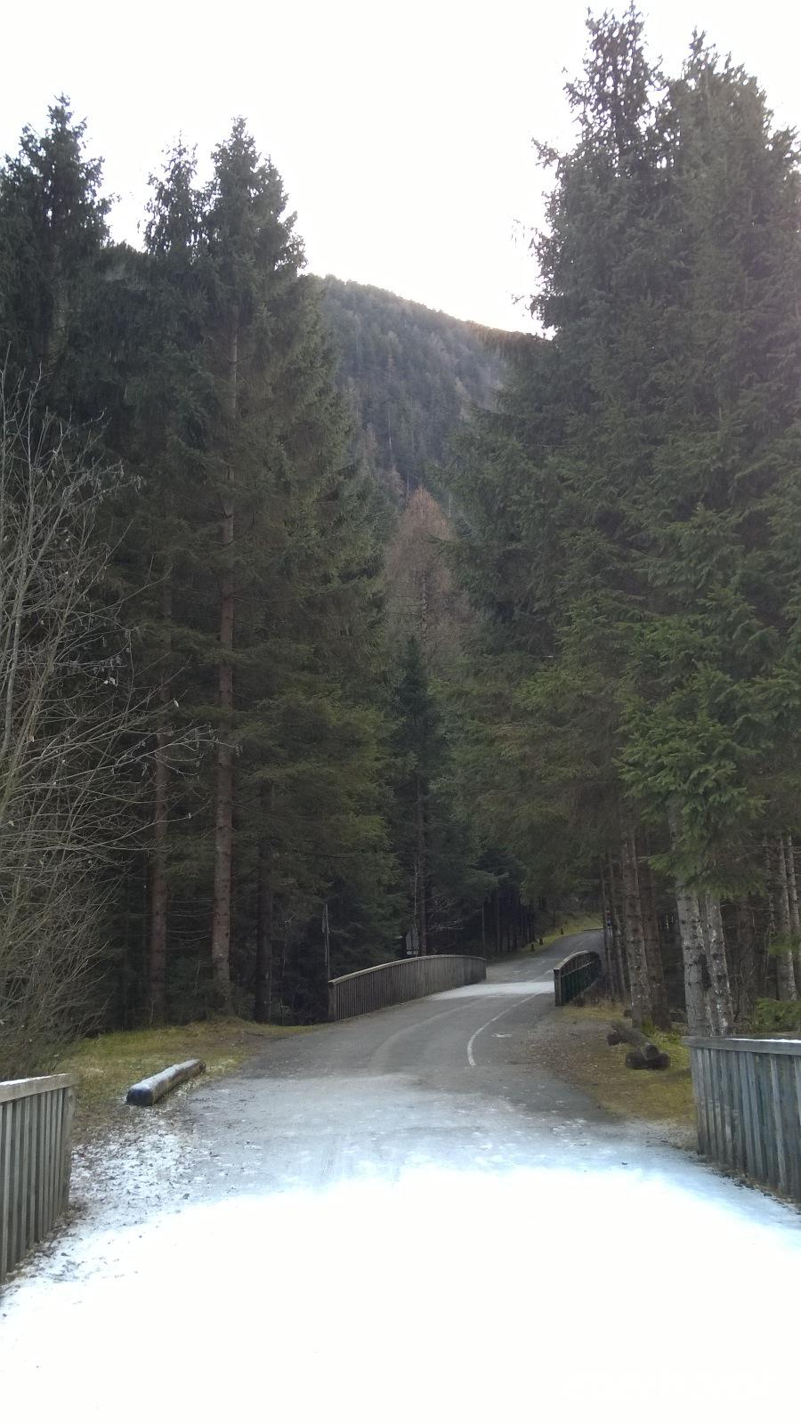 Den ersten Weihnachtsfeiertag verbringen wir bei strahlendem Sonnenschein und hellblau leuchtendem Himmel in den Brenta-Dolomiten. Zunächst fahren wir über die Südtiroler Weinstraße und machen kurz in Margreid halt, wo sich die älteste noch tragende Weinrebe Europas seit über 400 Jahren um ein kleines Haus herum rankt. In den Brenta-Dolomiten geht es dann bergauf und bergab, über Serpentinen hoch und über Serpentinen hinunter. Wir haben malerische Ausblicke, fahren über den Passo Carlo Magno und können den Skifahrern bei Madonna di Campiglio bei ihrem (künstlichen) Schneevergnügen zuschauen. Bei den Nardis-Wasserfällen, deren Flusslauf wir zumindest zu Gesicht bekommen, wagen wir einen Waldspaziergang. Eigentlich mit dem Ziel, die beeindruckenden Wasserfälle zu sehen, aber die sind doch viel zu weit weg. Zurück am Bus erwartet Frank uns schon mit heimischer Eberhardt-Stolle und Glühwein. Am Abend gibt es im Hotel ein feines Weihnachtsessen. Von den fünf Gängen ist einer besser als der andere.