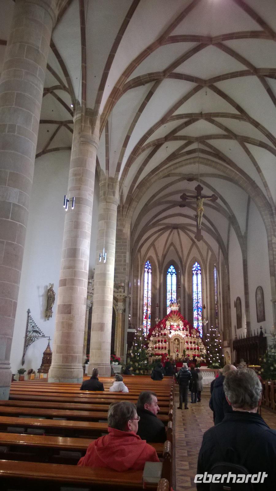 Es ist eisig kalt geworden über Nacht, sodass wir Zähne klappernd den kleinen Spaziergang vom Bus bis zum Augustiner Chorherrenstift Neustift antreten. Ein recht gebildeter Herr führt uns durch das Kloster, erklärt viel über das damalige und heutige Leben und lässt uns die Klosterschätze, nämlich mittelalterliche, handgeschriebene Bücher bestaunen. Auch die barocke Bibliothek und die üppig verzierte Kirche sind beeindruckend - wenn auch Geschmackssache. Später am Vormittag führt uns der Weg ins Städtchen Brixen, wo Kälte und Hunger uns recht bald in die Cafés und Restaurants verschlagen. Leider bleibt der Weihnachtsmarkt heute geschlossen, da der Bischof im Dom beigesetzt wird. Aus diesem Anlass erleben wir noch einen feierlichen Trauermarsch durch die Altstadt. Dann geht es aber wieder heim ins Hotel, wo wir auch heute abend mit deftiger Südtiroler Küche verwöhnt werden.