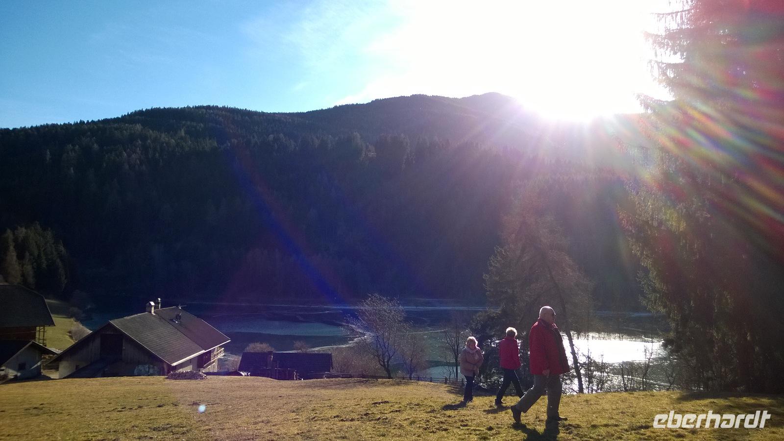 Heute startet der Tag eher ruhig und gediegen. Die Fahrt zum Krippenmuseum im Ahrntal führt uns durch malerische Täler, vorbei an Weinhängen und Apfelplantagen. Ach, Südtirol, wie schön du doch bist! Bei 300 Sonnentagen im Jahr und so einem prächtigen Landschaftsbild (und einer so herzhaften Küche) könnte man doch glatt über einen Umzug nachdenken... Im Krippenmuseum werden wir sehr herzlich begrüßt. Hier gibt es viele handgefertigte Krippen aus aller Welt zu besichtigen. Beeindruckend ist auch die Stube, die komplett aus dem wohltuenden Zirbenholz gefertigt wurde. Nach dem Museumsrundgang werden wir schon mit Lagerfeuer und Glühwein vor dem Häuschen erwartet. So können wir es uns sehr gut gehen lassen. Unsere Mittagspause legen wir kurz an einem idyllischen Plätzchen an einem See ein, um danach weiter zur Schaukäserei in Toblach zu fahren. Es ist ziemlich spannend, all diese Details über die Käseherstellung in Südtirol zu erfahren. Nach der Führung steht für jeden ein kleiner Käseteller zum Probieren bereit. Hmmm...