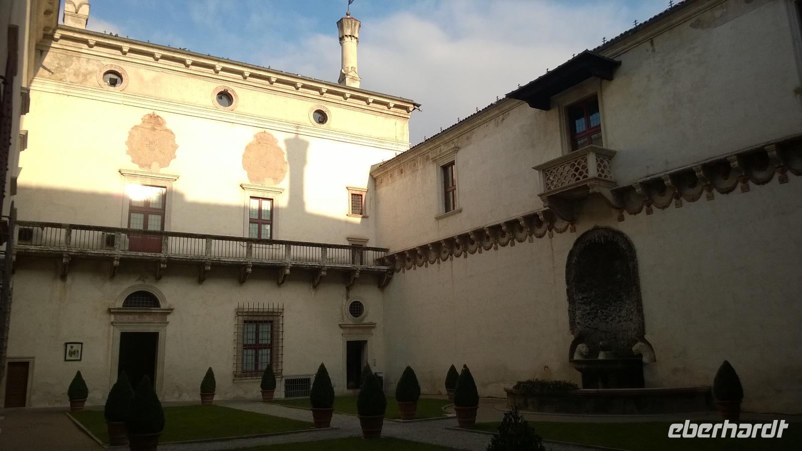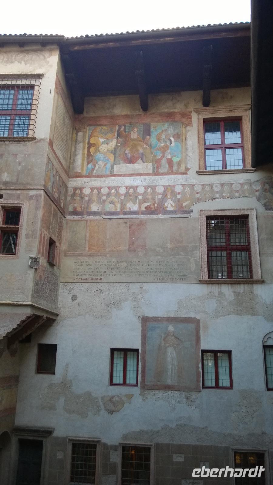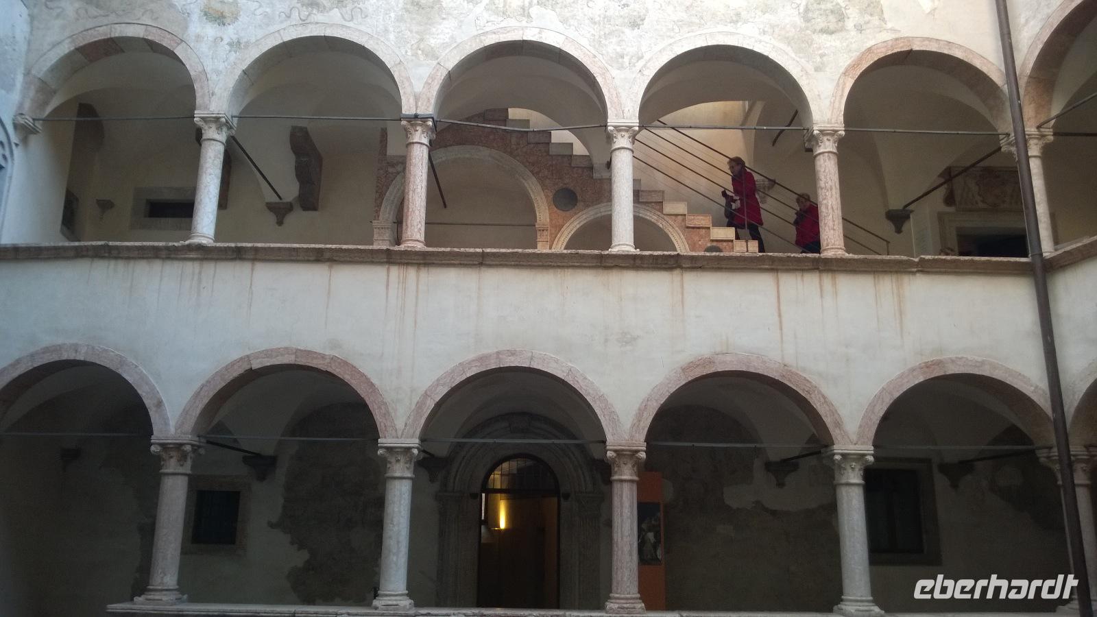 Den heutigen Tag verbringen wir im italienischsprachigen Trentino und dessen Provinzhauptstadt Trento. Die Stadtführerin Maria zeigt uns das Castel Buonconsiglio und erklärt ausführlich die Stadtgeschichte. Zusammen mit ihr schlendern wir durch die Gassen der Altstadt und auf den großen, stattlichen Markt vor dem Dom. Maria könnte Stunden lang erzählen über Geschichte und Kunstgeschichte, Adelige und ihre Bauten. Aber irgendwann ist es Zeit für eine Mittagspause und jeder vergnügt sich selbst auf dem Markt und in den umliegenden Cafés. Am Nachmittag führt uns der Weg zur Grappa-Brennerei Marzano. Dort bekommen wir eine beeindruckende Führung und verkosten, was bisher so in den Fässern geschlummert hat. Ein kleiner Einkaufsbummel in einem günstigen Spezialitätenladen rundet den Tag schließlich ab.