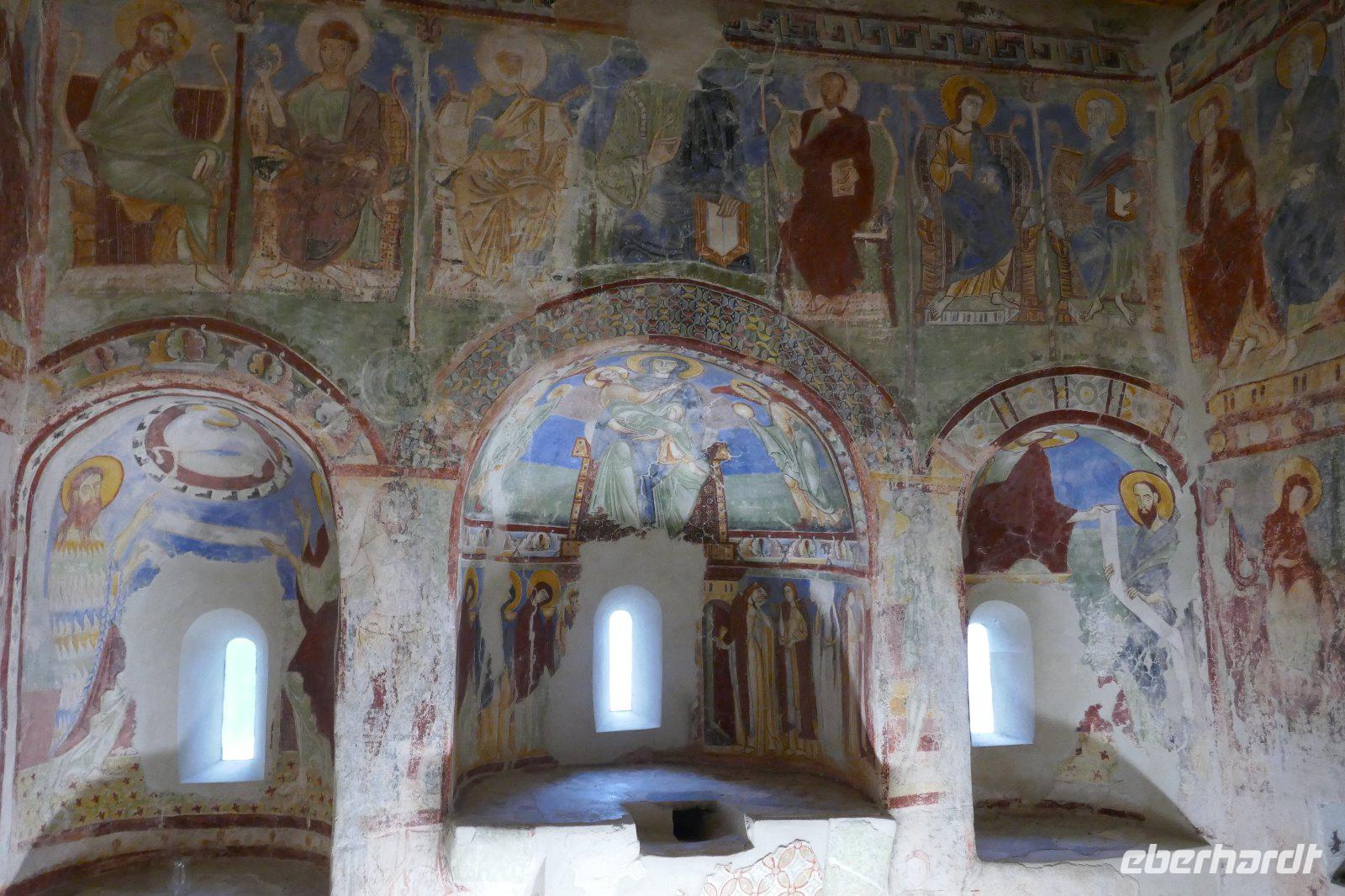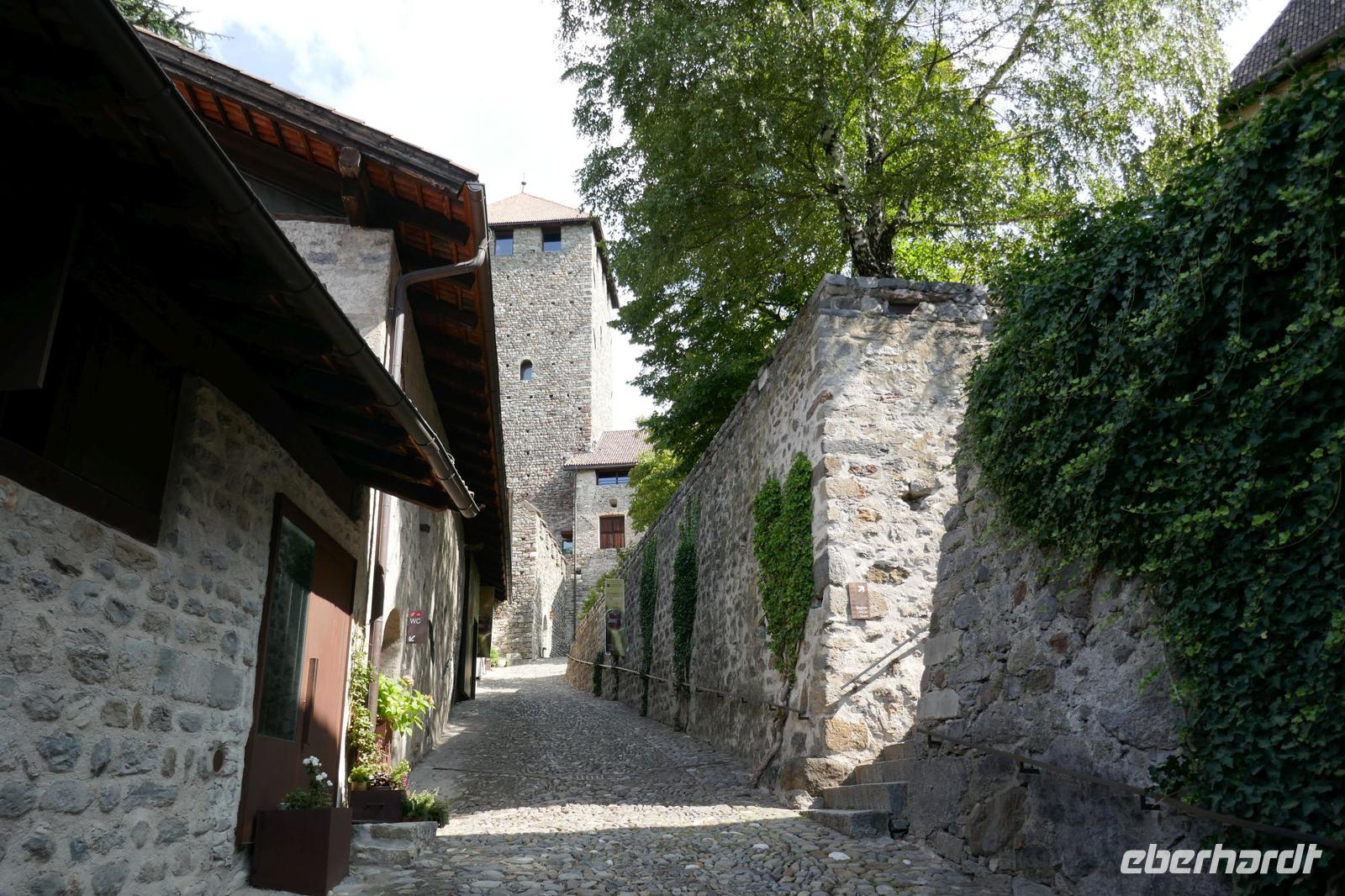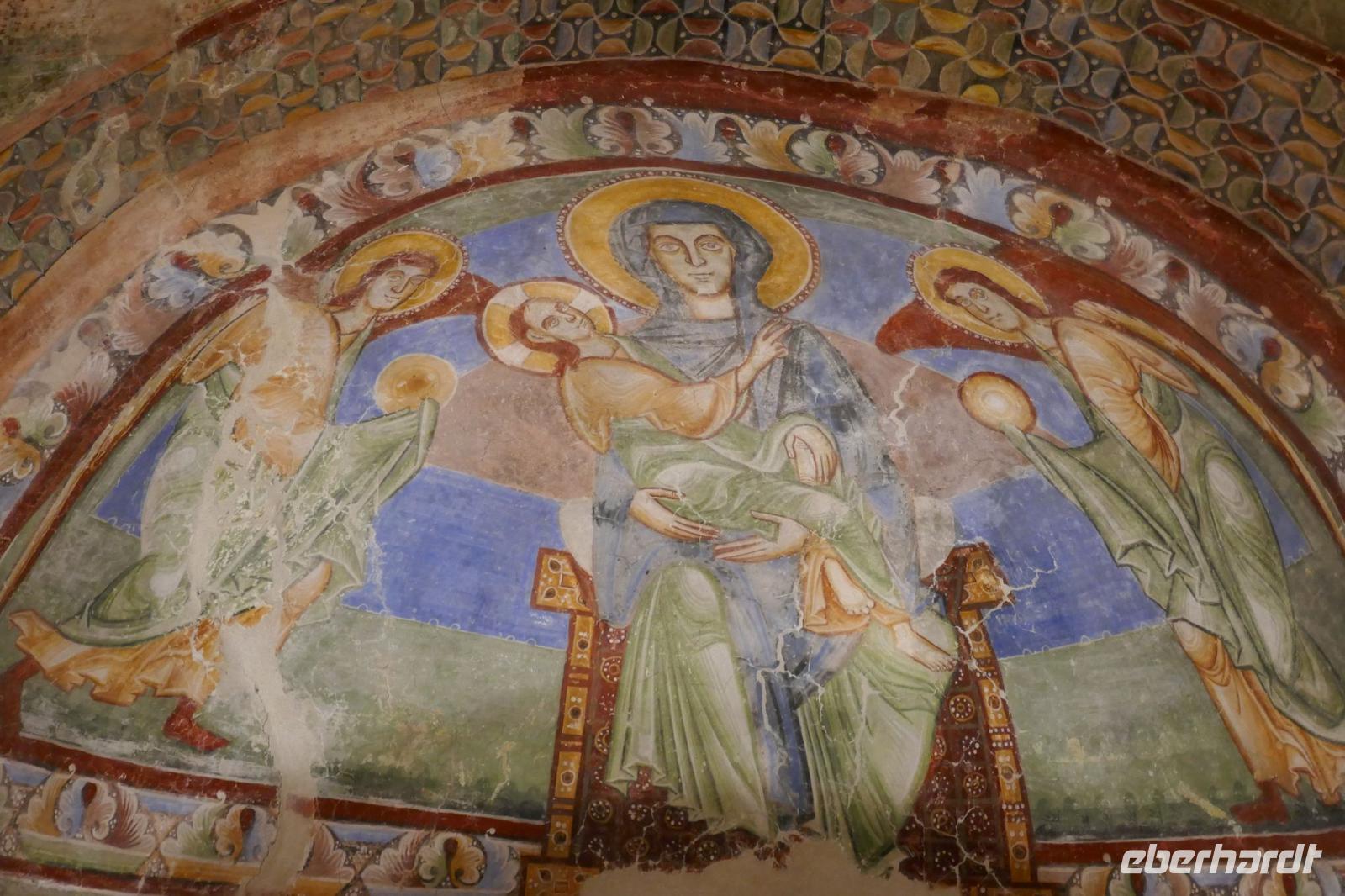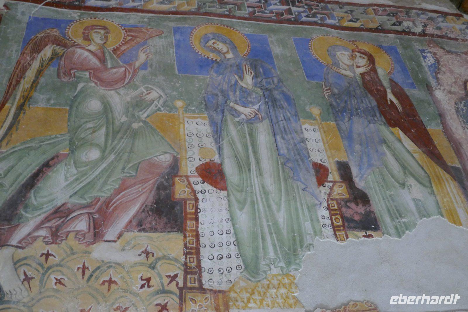Hoch über dem Etschtal ragt auf steilen Felswänden die Wehr- u. Trotzburg Hocheppan in den Himmel. Einst gehörte sie den Landesfürsten von Tirol bis sie dann 1911 in den Besitz der Grafen von Enzenberg ging. Heute nach Renovierung u. Konservierung ist sie im Besitz der Gemeinde. Wir tauchten bei einem Rundgang und Führung ein in die Zeit des Mittelalters. Vieles zum Leben auf der Burg und dem Schicksal der Burg wurde berichtet. Im Rahmen der Führung erreichten wir auch die Burgkapelle. Im Inneren der Burgkapelle verstecken sich bekannte Wandmalereien, sehr gut erhaltene romanische Fresken mit typischen Motiven der Traditionen in der Umgebung. Hier ist eine Frau abgebildet, die Knödel isst, ein seltenes Motiv, das immer wieder Aufmerksamkeit erregt. Zu bewundern auch der Stil der Fresken, der viel vom byzantinischen Stil hatte. Nicht umsonst wird die Kapelle auch die „Sixtinische Kapelle" der Alpen genannt. Die Burgschänke lud zum Mittagsimbiss geradezu ein bevor es dann wieder zurück zum Hotel ging.