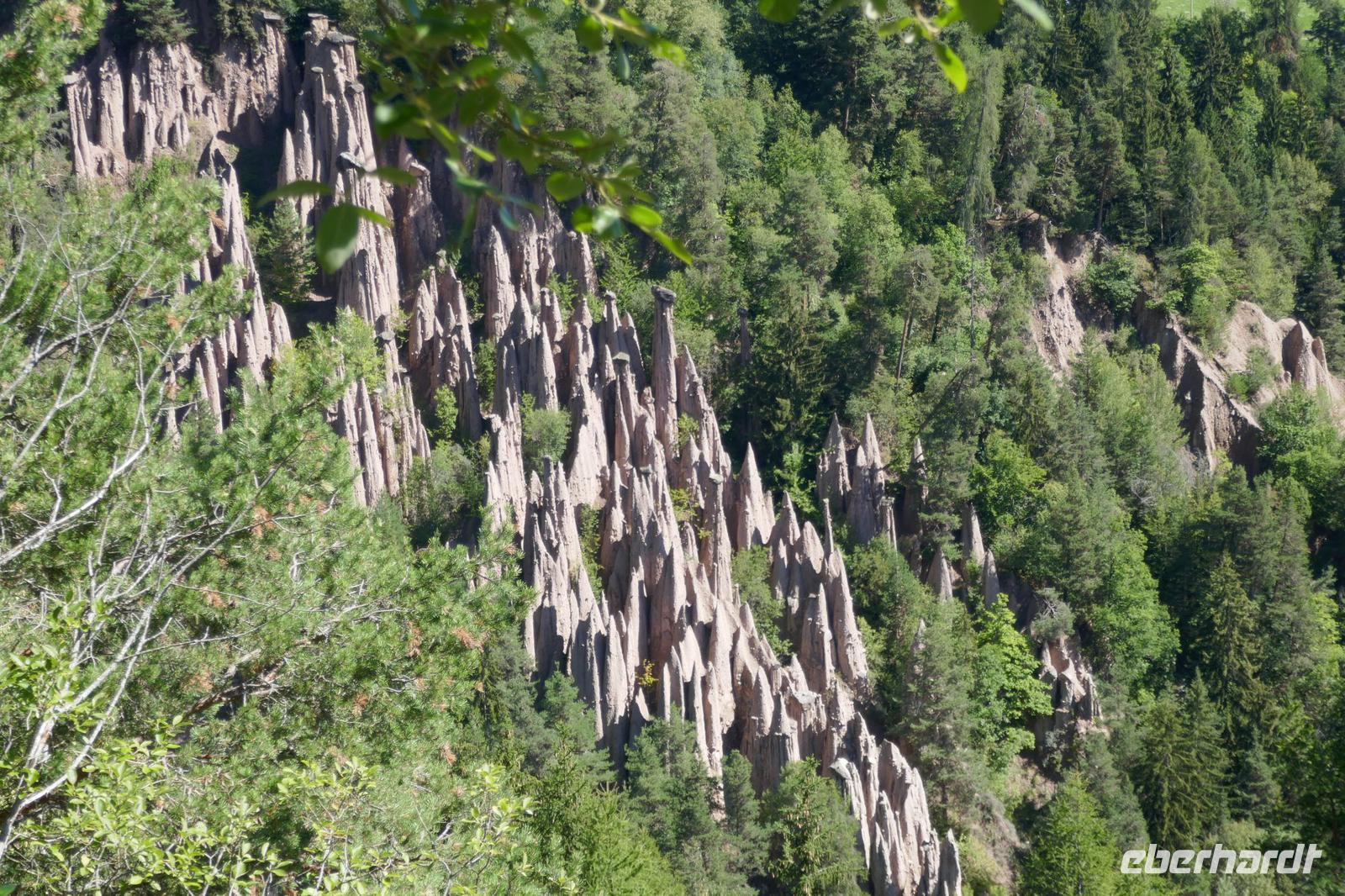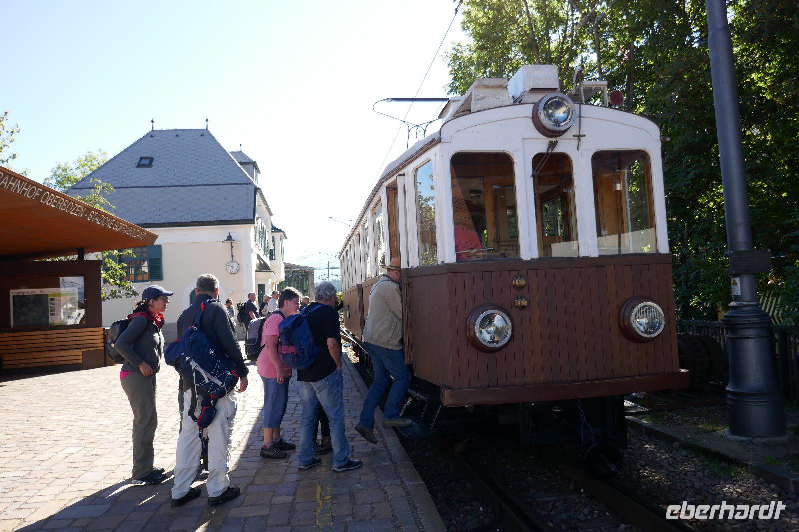 Gut gestärkt machten wir uns auf den Weg nach Bozen. Die Stadt und das Ötzi-Museum standen erst am Nachmittag auf dem Programm. Uns zog es zunächst in die Höhe. Mit der Seilbahn ging es zunächst nach Oberbozen. Schon hier wird klar, warum bereits in früheren Jahrhunderten das Bürgertum von Bozen hier herauf kam um der Sommerhitze der Stadt zu entgehen und in der angenehmen Bergluft des Hochplateaus diese zu genießen. Auch heute reisen gestresste Touristen an um die gesunde Höhenluft zu schnuppern. Im strahlenden Sonnenschein erlebten wir das umliegende Bergmassiv. .Ein paar Atemzüge und dann ging es zur Schmalspurbahn, die uns von Oberbozen nach Klobenstein brachte. Von dort aus erreichten wir nach einem schönen und abwechslungsreichen Spaziergang die Erdpyramiden - ein Naturdenkmal der besonderen Art. Nur durch einen großen Stein gehalten bildeten sich über Jahrhunderte diese besonderen Spitzen. Fällt der Stein ist diese Spitze dem Verfall preisgegeben. Wandern macht hungrig und zur Mittagszeit kehrten wir im
