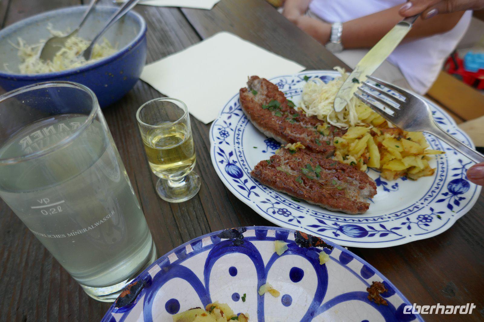 Baumannhof im Ortsteil Signat, oberhalb von Bozen ein. Auf dem Weg dorthin boten sich traumhafte Ausblicke auf den berühmten Rosengarten der Dolomiten. In einem der urigsten Berggasthöfe von ganz Südtirol kocht Mali Höller, die selbst ein Kochbuch über die typischsten Südtiroler Gerichte geschrieben hat, Hier wurden uns Malis Schlutzkrapfen und andere Köstlichkeiten in uriger Atmosphäre unter schattenspendenden Nussbäumen serviert. Wir erlebten ein Frau von ganz besonderer Art und herzlichen Humor. Allen bleibt sicherlich ihre Definition zu Online in Erinnerung. Für Mali bedeutet Online angekettet zu sein und sie lässt sich nicht anketten. Wichtiger ist für sie ihr sonntäglicher Plausch mit ihren Freundinnen nach dem Kirchgang. Diese Infos sind besser als Facebook oder Internet. Danach ging es nach Bozen wo wir Ötzi im Rahmen eines Museumsbesuchs einen Besuch abstatteten. Für die Stadtbesichtigung blieb auch noch Zeit. Nach einem schönen Tag ging es zurück zum Hotel.
