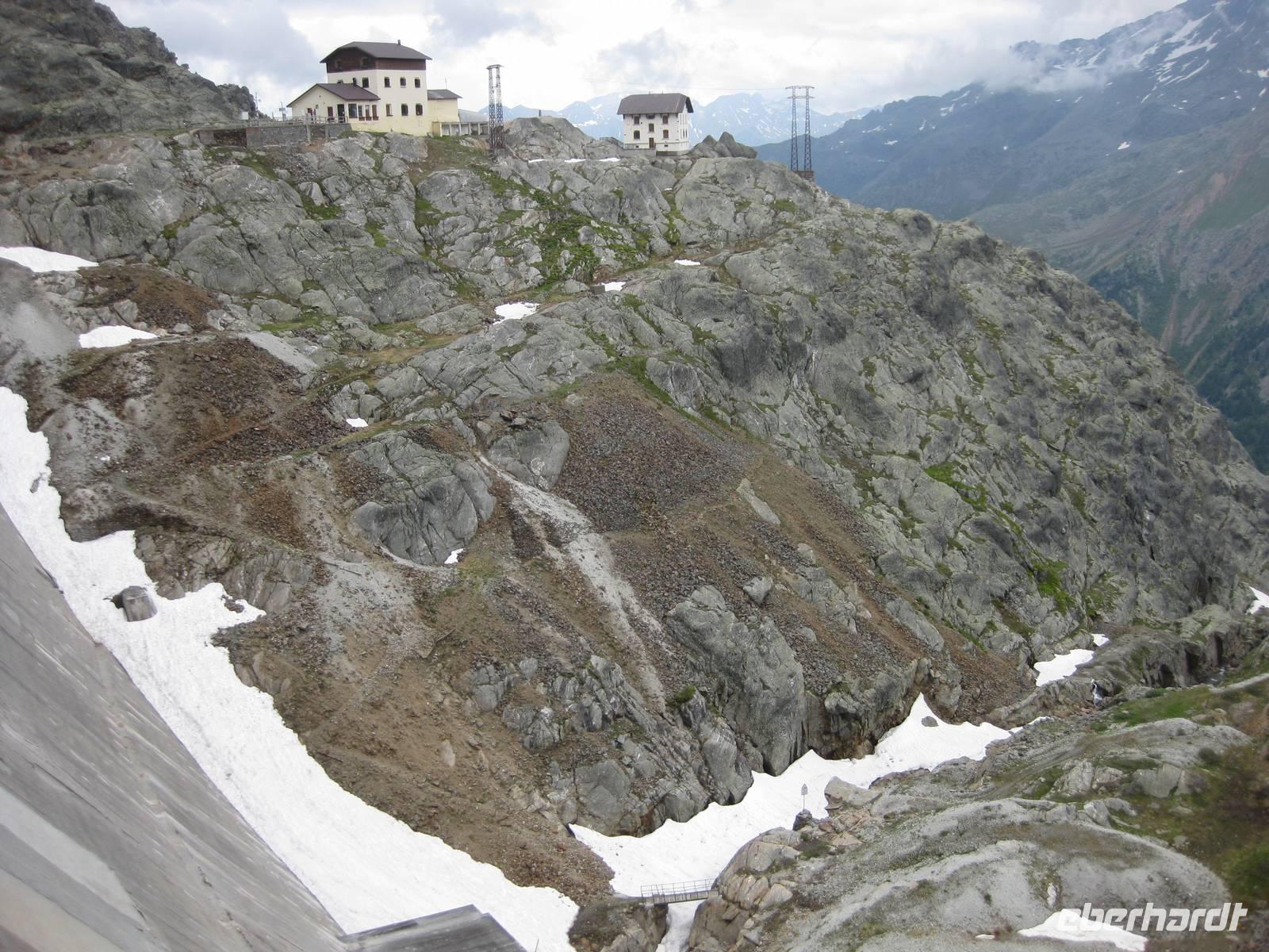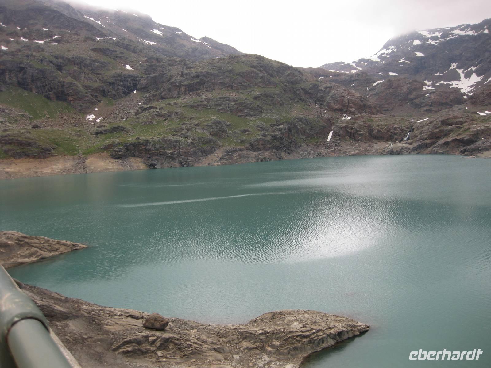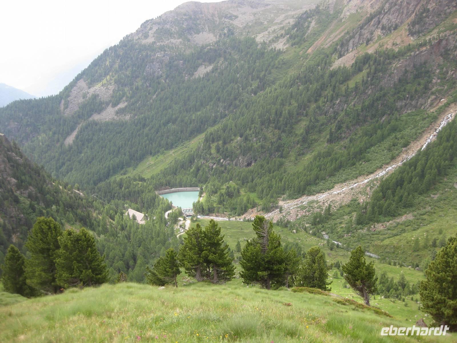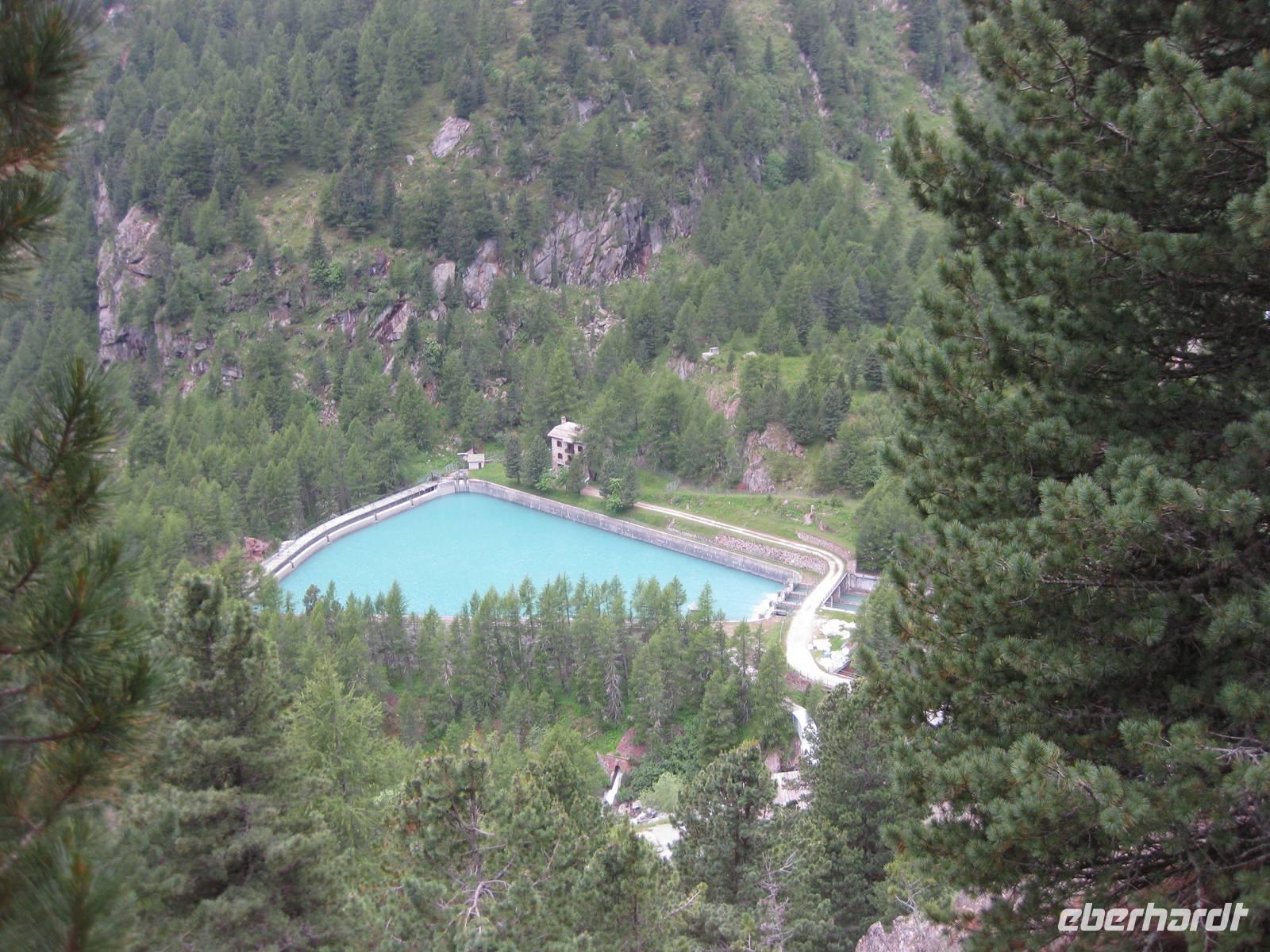 Nach drei Stunden Wanderung erreichen wir die Larcher Hütte in 2607 m Höhe. Hier oben, mit faszinierendem Blick auf den Cevedale-Gletscher, ist es schon ganz schön rauh. In der Hütte machen wir Mittagspause, essen eine leckere Gemüsesuppe, trinken etwas und wer will, kann auch noch etwas Süßes zu sich nehmen. Dann geht es weiter. Wir müssen noch 100 Höhenmeter bezwingen, über Felsgeröll und Schneefelder, dann haben wir den höchsten Punkt unserer heutigen Wanderung erreicht und über den Grat hinweg geht es auch schon wieder ein ganz klein wenig abwärts zum Lago Marmotta, einem der fünf Seen, die heute an unserem Weg liegen. Ein kurzer Halt, um den Blick auf die umliegenden Berge mit ihren Schneefeldern und Gletschern zu genießen. Das ist schon gewaltig. In der Ferne hören wir die Murmeltiere pfeifen "Vorsicht, Touristen!". Dann geht es weiter. Vorerst so ziemlich in einer Höhe mit wunderschönen Blicken auf die Berge und Täler rundherum bis wir den kleineren Lago Nero erreichen. Und gleich in unmittelbarer Nähe befindet sich der viel größere Stausee Lago del Careser (2603 m). Zur Zeit ist er nicht sehr voll. Wir laufen über die Staumauer und dann geht es auf einem kurvenreichen Bergweg wieder hinab bis zum ersten Stausee, wo die ausgebaute Forststraße beginnt, die wir heute morgen herauf gekommen sind. 17.30 Uhr sind wir wieder an Italos Auto, Martina ist auch schon da. Wir fahren zurück zum Hotel.