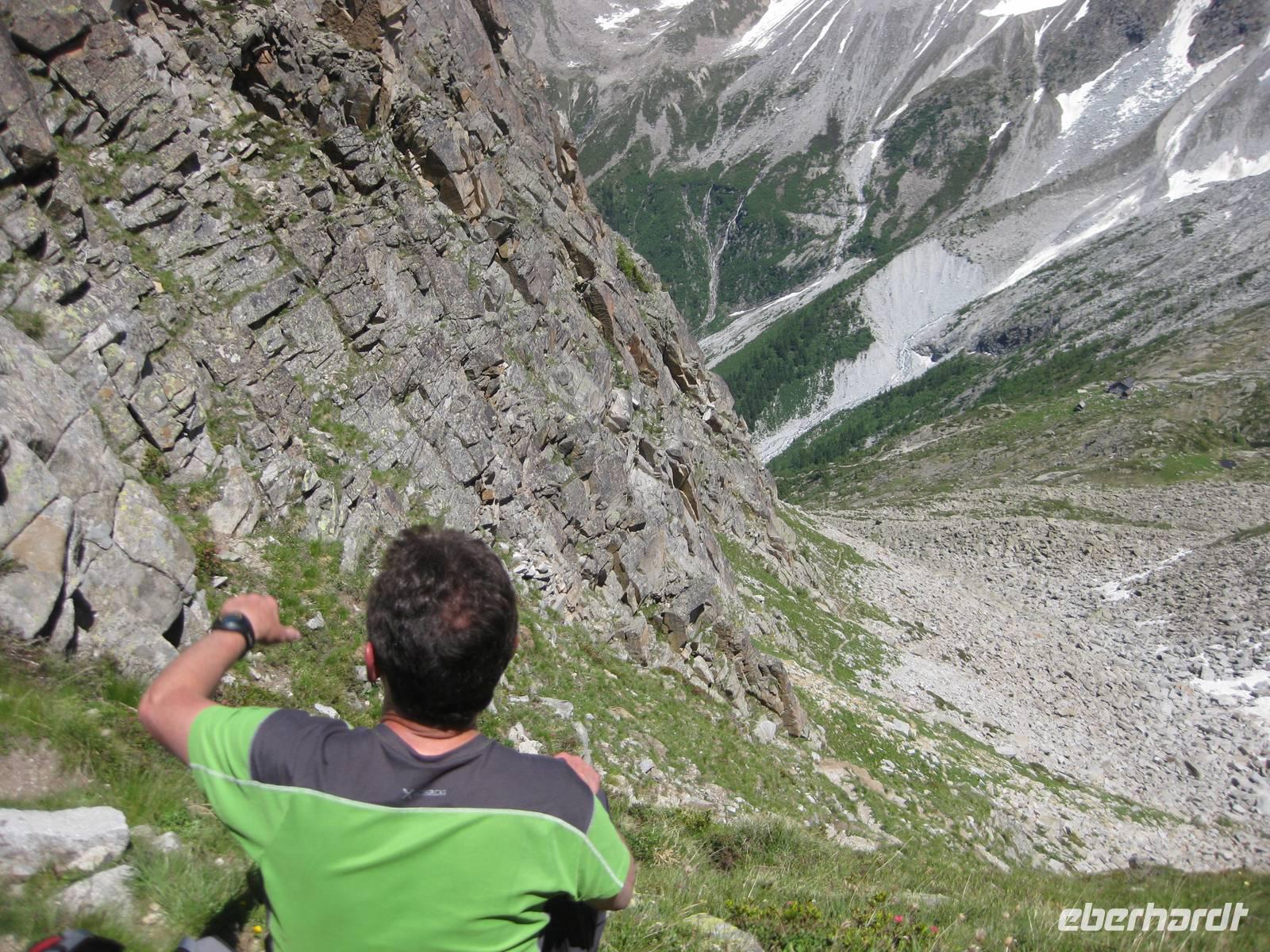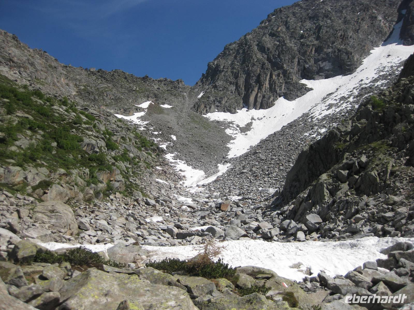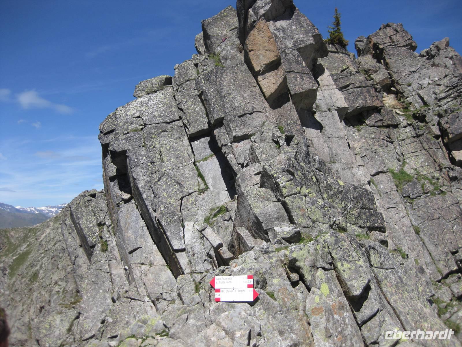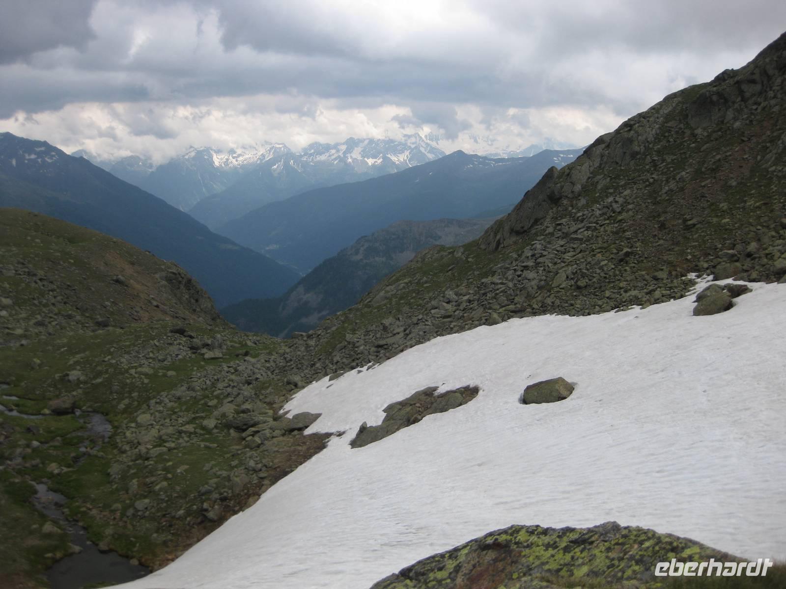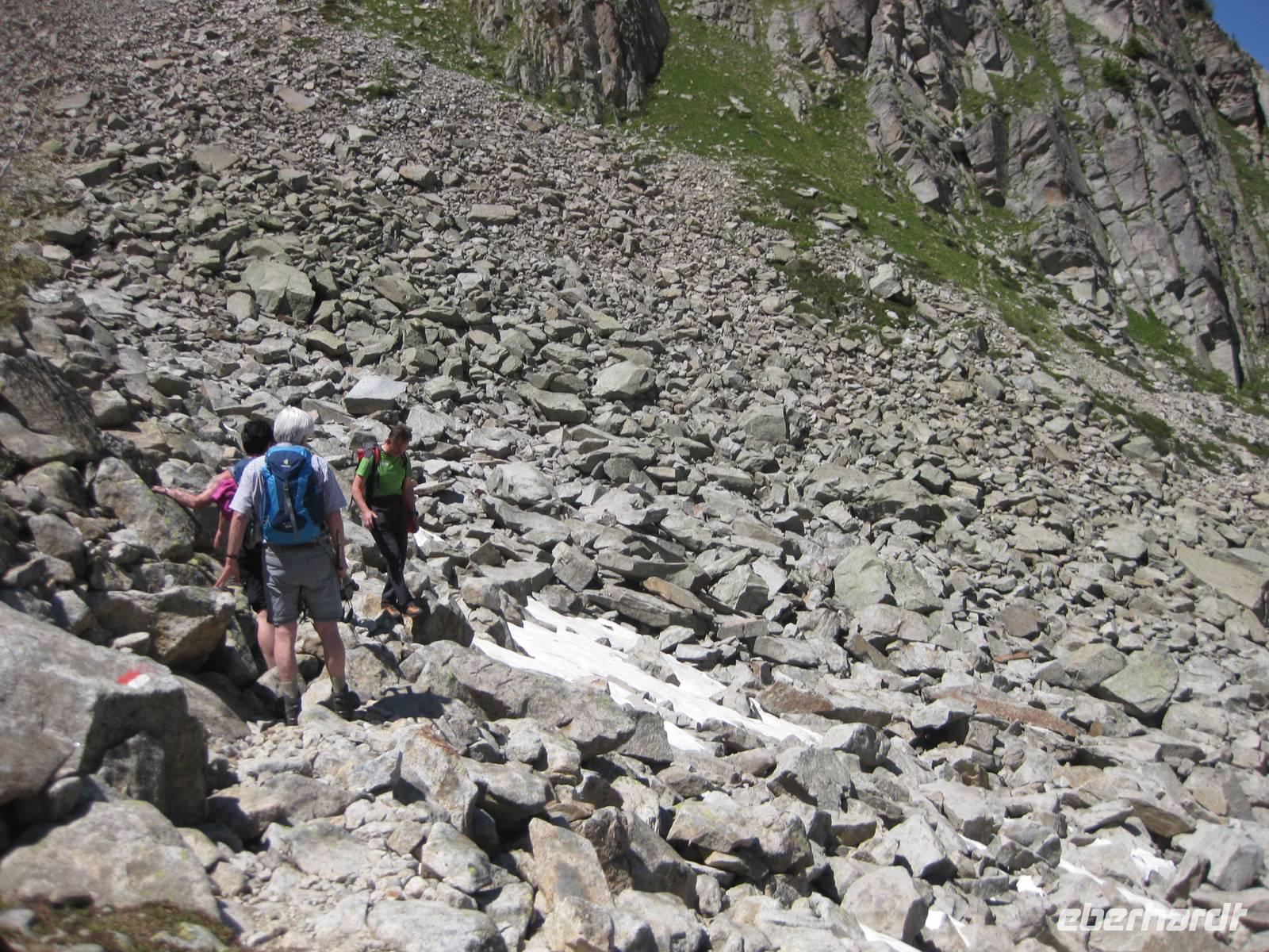Nach der Mittagspause begeben wir uns auf den Rückweg. Wir haben beschlossen, die Scharte hinauf zum Passo dei Pozzi (2604 m) zu nehmen und auf der anderen Seite des Passes abzusteigen. Oben auf dem Pass angekommen, legen wir noch mal eine Pause ein und genießen den Rundblick - atembraubend. Und wir schauen schon mal auf unseren Abstieg, das wird noch mal eine Herausforderung. Nachdem wir uns sattgesehen haben wagen wir den Abstieg. Italo führt uns ganz sicher nach unten über Geröllfelder, Schneefelder und Bergwiesen. Wir machen auch ein paar Pausen. 17.45 Uhr erreichen wir wieder den Parkplatz. Italo fährt uns zum Hotel zurück. Wir bedanken uns bei ihm für seine Führungen auf den Wanderungen und seine interessanten Erklärungen. Es war eine tolle Zeit, die wir mit ihm verbringen durften. Wir werden die Wanderungen wohl so schnell nicht vergessen. Vielleicht wandern wir ja wieder mal zusammen.