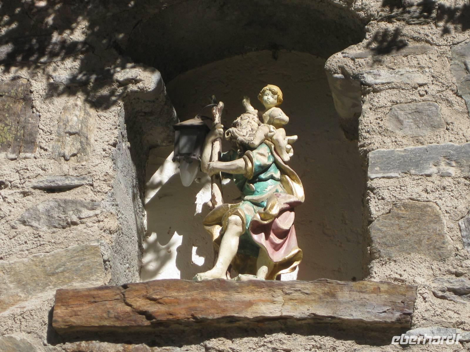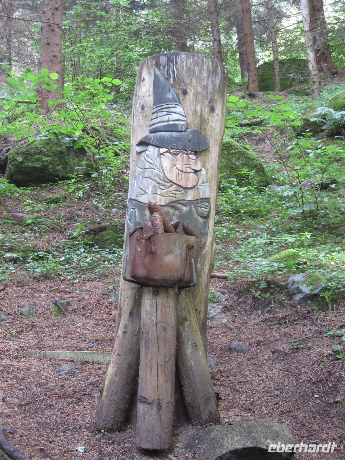 9.30 Uhr fahren wir alle zusammen mit Martina mit dem Hotelbus nach Ossana und weiter bis nach Valpiana (1763 m), wo unsere Wanderung durch den Wald beginnt. Zuerst wandern wir den "Gnompfad", ein Naturlehrpfad insbesondere auch für Kinder, entlang. Hier gibt es am Wegesrand lustige Holzfiguren und Tafeln mit wissenswerten Informationen speziell zu diesem Gebiet. Und Martina vermittelt uns ihr Wissen zu den Pflanzen am Wegesrand. Sie ist Kräuterexpertin. Da können wir noch einiges lernen. Das alles ist sehr interessant. Der Weg geht leicht bergauf. Heute haben wir nicht so viele Höhenmeter zu bewältigen, nur ca.300 m. Ab und zu bieten sich tolle Ausblicke auf die nähere und entferntere Bergwelt - bei herrlichstem Wetter.