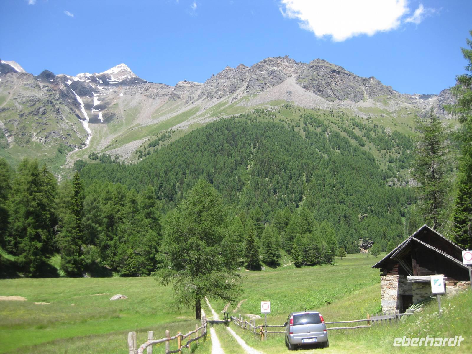 Um 9.00 Uhr kommt Italo. Wir wandern heute gemeinsam, er wird uns auf der Wanderung führen. Aber erst einmal fahren wir mit seinem und mit einem Hotelauto nach Peio Fonti hinauf. Vom Parkplatz, noch ein Stück hinter Peio Fonti, starten wir dann zu unserer Wanderung und werden am Nachmittag auch wieder hier ankommen.