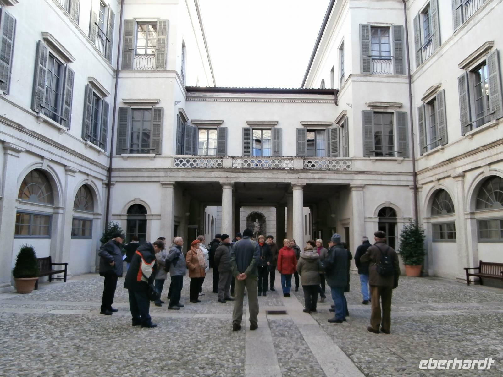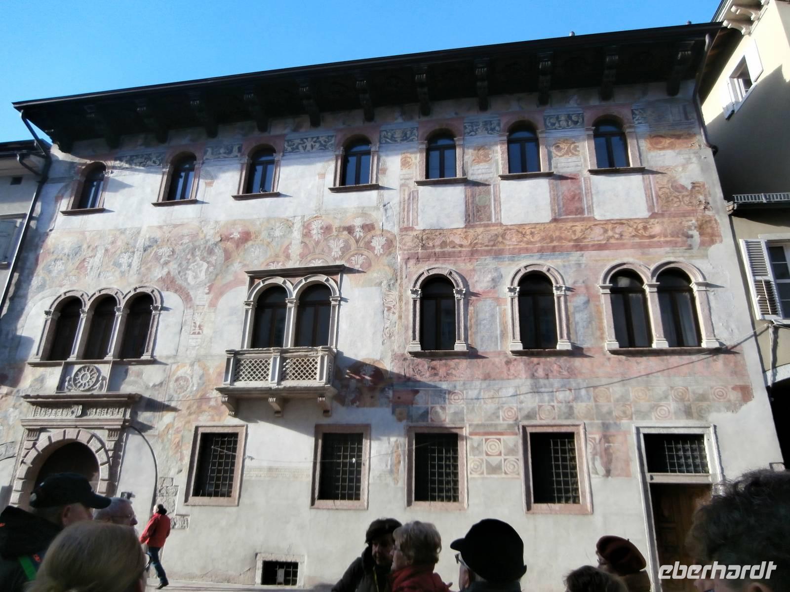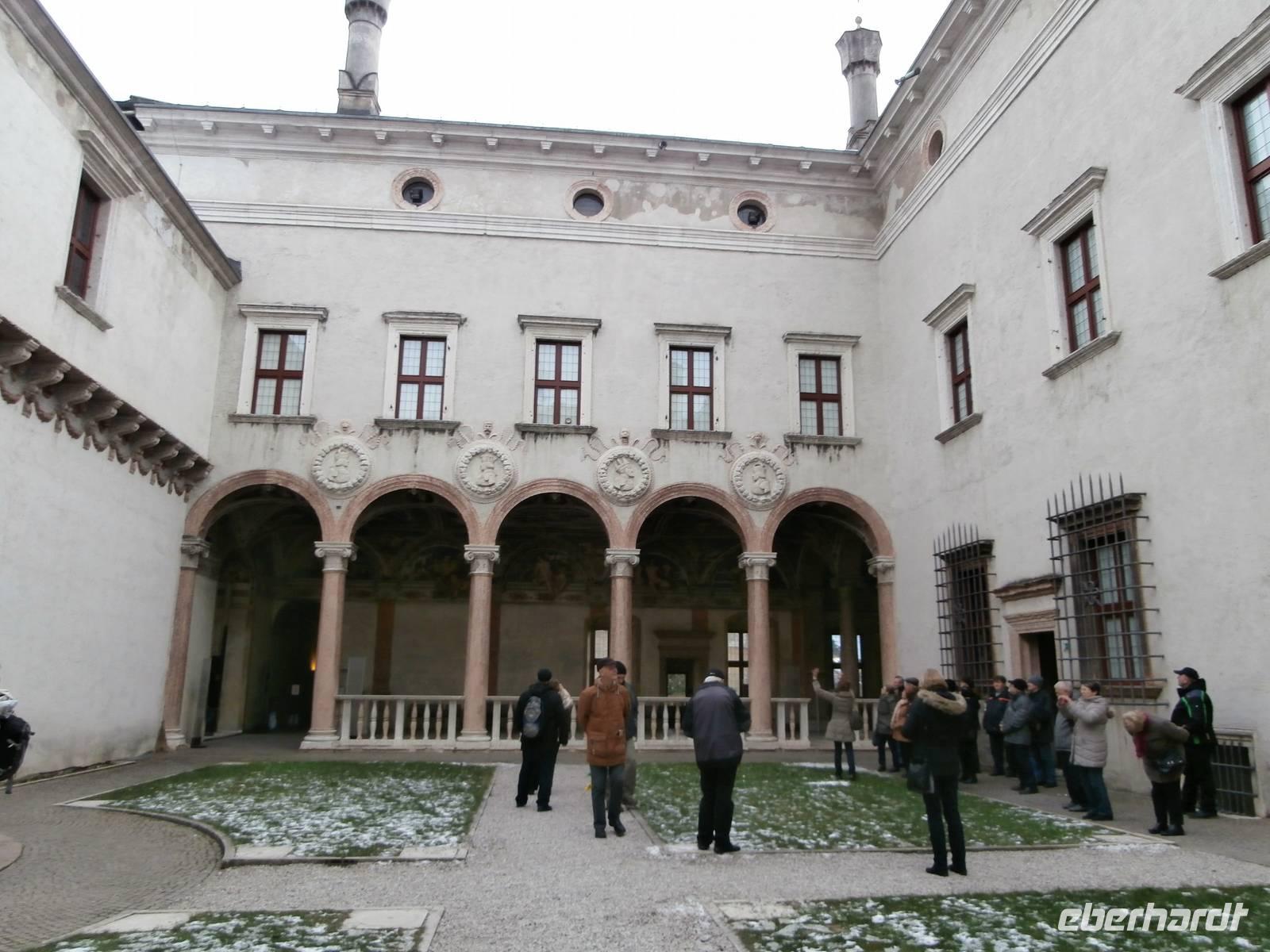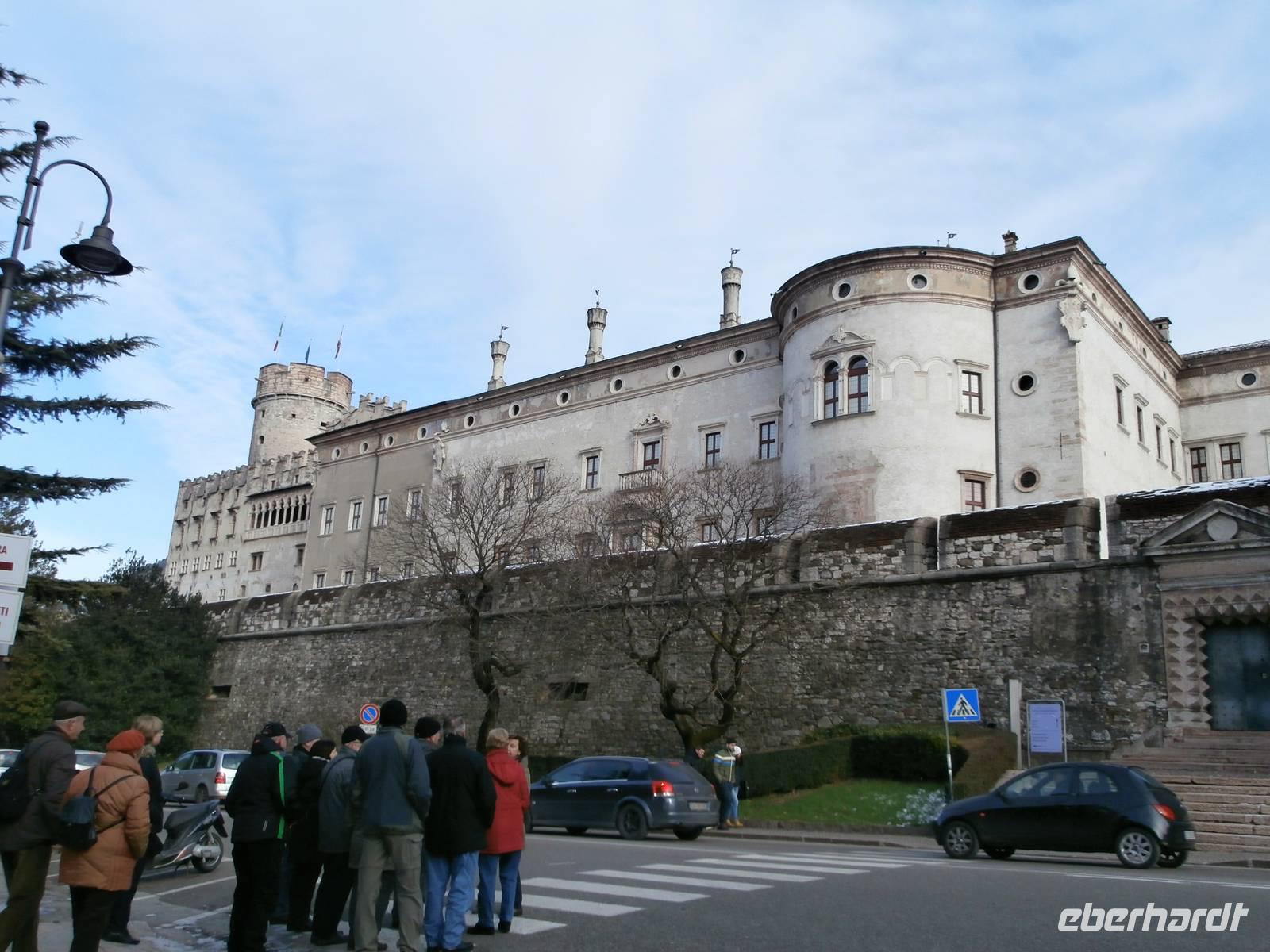 Der Blick aus dem Fenster heute Morgen lässt uns erwartungsvoll in den Tag starten. Sonne und blauer Himmel sind später unsere Begleiter. Die erste Station heute ist Trento, wir besichtigen mit zwei von Eberhardt Travel organisierten Führerinnen die Stadt, die viel zu bieten hat. Unser Rundgang durch die ehrwürdige Konzilstadt führt uns über die Via Belenzani zum Domplatz mit dem Neptunbrunnen. Unterwegs sehen wir herrliche Paläste, die freskengeschmückten Fassaden präsentieren uns berühmte Gäste längst vergangener Zeiten. Es sind mythologische Gestalten der Vergangenheit zu sehen wie auch Kaiser auf dem Weg nach Rom und auch Kardinäle und Bischöfe, die wegen des Trienter Konzils viele Jahre die Kirchen und Paläste füllten. Über den noch nicht geschlossenen Weihnachtsmarkt von Trient gelangen wir hinüber zum Castello del Buonconsiglio, das Schloss zählt zu dem bedeutendsten Denkmalkomplex des Trentino. Bis zur Säkularisation des Fürstentums im Jahre 1803 war das Castello die Residenz der Fürstbischöfe von Trient. Nach Mittagsversorgung im Bus mit Würstchen, Kaffee und heißer Schokolade, geht unsere Fahrt weiter in Richtung Süd. In der Grappa-Brennerei Marzadro werden wir bei einer fachkundigen Führung in die Geheimnisse der alten Tradition der Grappa Brennerei eingeführt. Unsere Verkostung im Anschluss ist ein wahrer Höhepunkt des heutigen Tages. Die kostbaren Spirituosen werden uns im Geschäft zum Verkauf angeboten, ein schönes Geschenk, was man mit Freunden gemeinsam zu Hause genießen kann. Das neuste Produkt ist der „Marzadro 43" und ganz lecker schmeckt auch der Grappa „Le Diciotto Lune". Eine schöne Lichterfahrt in der einsetzenden Dämmerung erleben wir auf unserer Rückfahrt zum Hotel Sparer. Ein leckeres Abendessen wird uns auch heute wieder im Seehotel Sparer serviert. 191 km