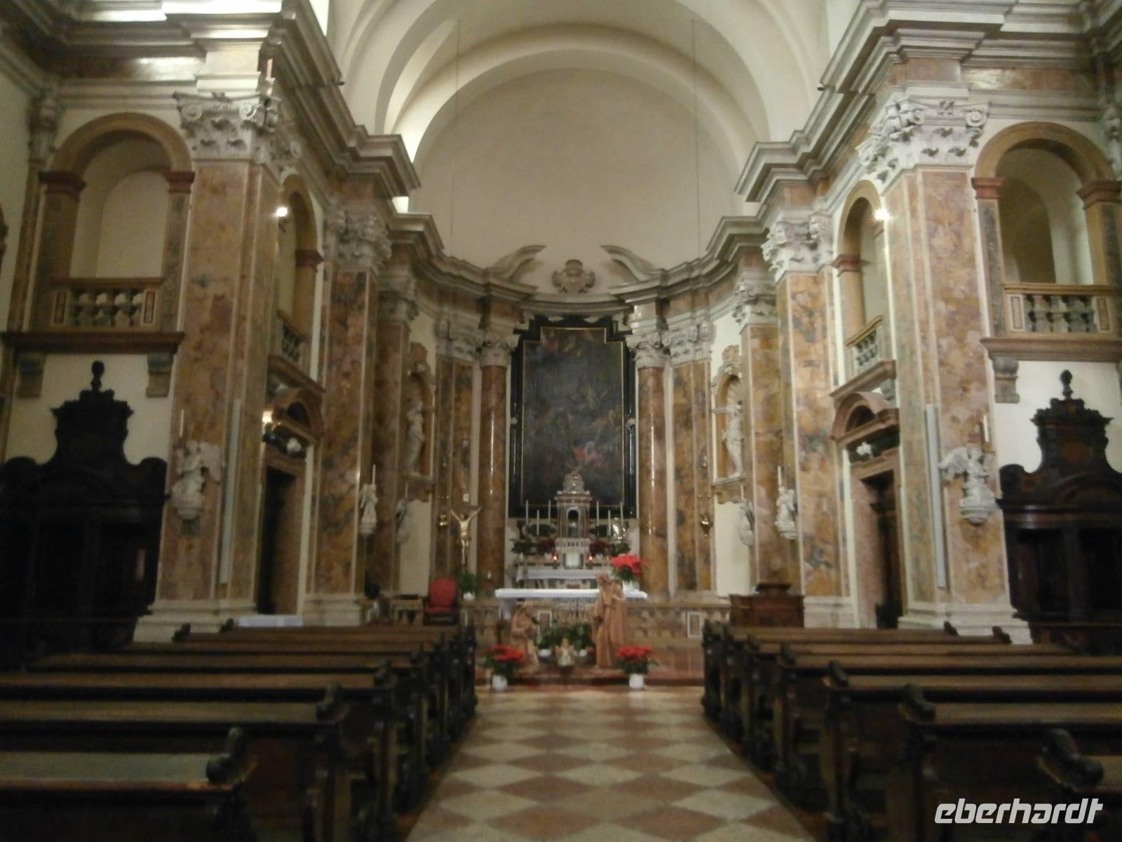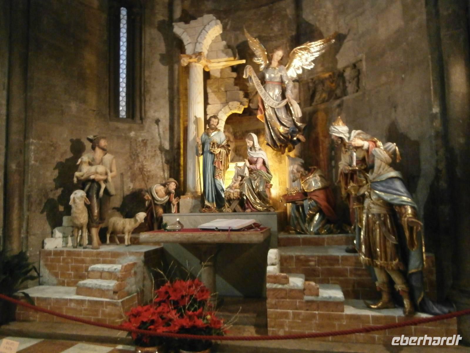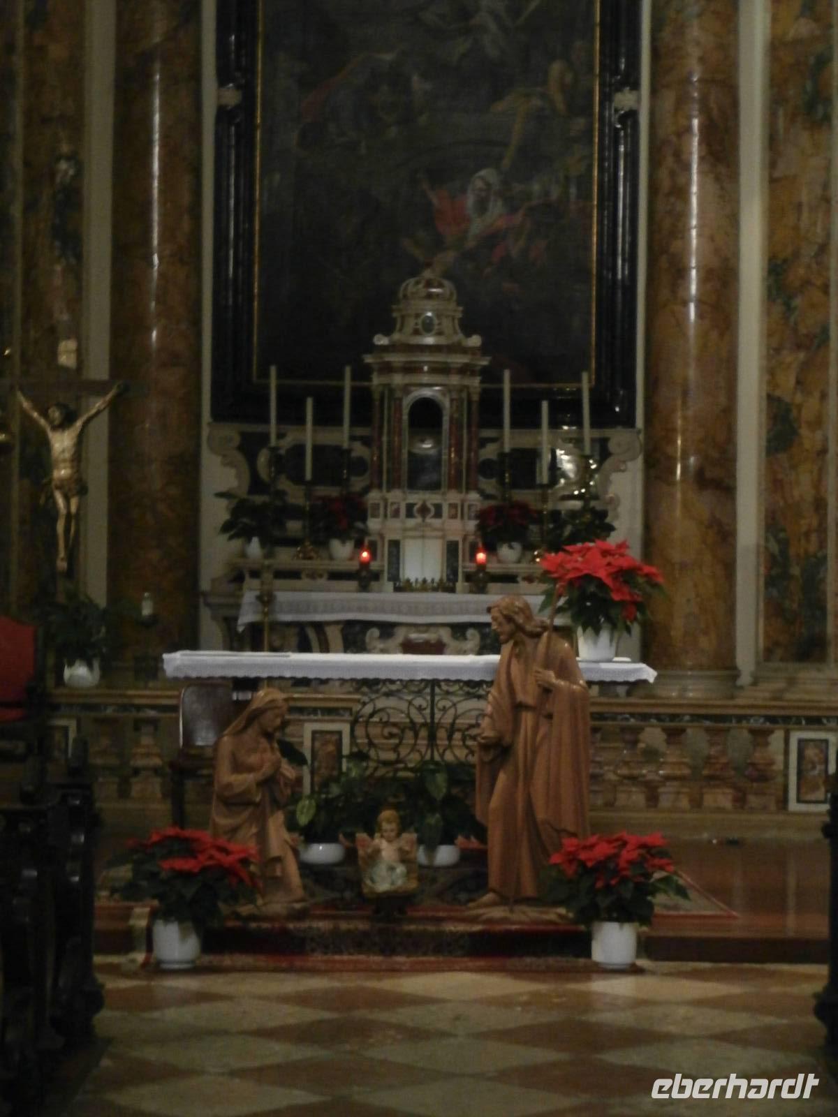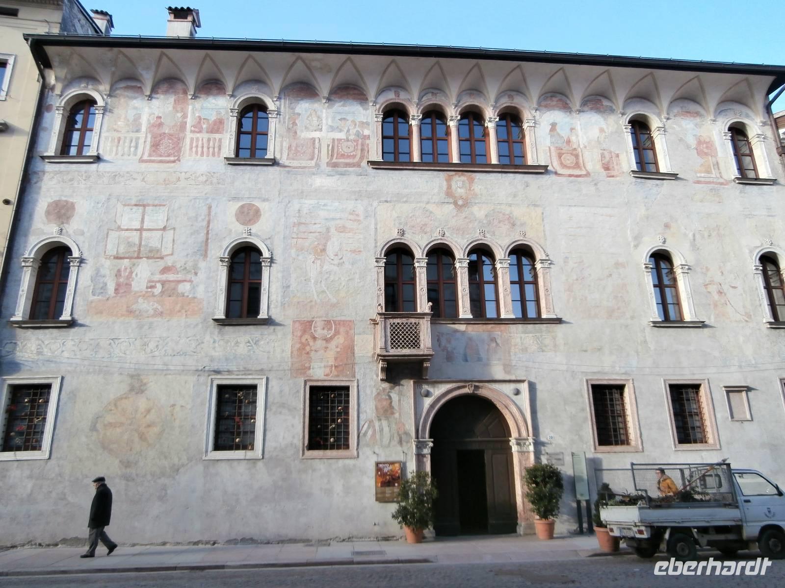 Der Blick aus dem Fenster heute Morgen lässt uns erwartungsvoll in den Tag starten. Sonne und blauer Himmel sind später unsere Begleiter. Die erste Station heute ist Trento, wir besichtigen mit zwei von Eberhardt Travel organisierten Führerinnen die Stadt, die viel zu bieten hat. Unser Rundgang durch die ehrwürdige Konzilstadt führt uns über die Via Belenzani zum Domplatz mit dem Neptunbrunnen. Unterwegs sehen wir herrliche Paläste, die freskengeschmückten Fassaden präsentieren uns berühmte Gäste längst vergangener Zeiten. Es sind mythologische Gestalten der Vergangenheit zu sehen wie auch Kaiser auf dem Weg nach Rom und auch Kardinäle und Bischöfe, die wegen des Trienter Konzils viele Jahre die Kirchen und Paläste füllten. Über den noch nicht geschlossenen Weihnachtsmarkt von Trient gelangen wir hinüber zum Castello del Buonconsiglio, das Schloss zählt zu dem bedeutendsten Denkmalkomplex des Trentino. Bis zur Säkularisation des Fürstentums im Jahre 1803 war das Castello die Residenz der Fürstbischöfe von Trient. Nach Mittagsversorgung im Bus mit Würstchen, Kaffee und heißer Schokolade, geht unsere Fahrt weiter in Richtung Süd. In der Grappa-Brennerei Marzadro werden wir bei einer fachkundigen Führung in die Geheimnisse der alten Tradition der Grappa Brennerei eingeführt. Unsere Verkostung im Anschluss ist ein wahrer Höhepunkt des heutigen Tages. Die kostbaren Spirituosen werden uns im Geschäft zum Verkauf angeboten, ein schönes Geschenk, was man mit Freunden gemeinsam zu Hause genießen kann. Das neuste Produkt ist der „Marzadro 43" und ganz lecker schmeckt auch der Grappa „Le Diciotto Lune". Eine schöne Lichterfahrt in der einsetzenden Dämmerung erleben wir auf unserer Rückfahrt zum Hotel Sparer. Ein leckeres Abendessen wird uns auch heute wieder im Seehotel Sparer serviert. 191 km