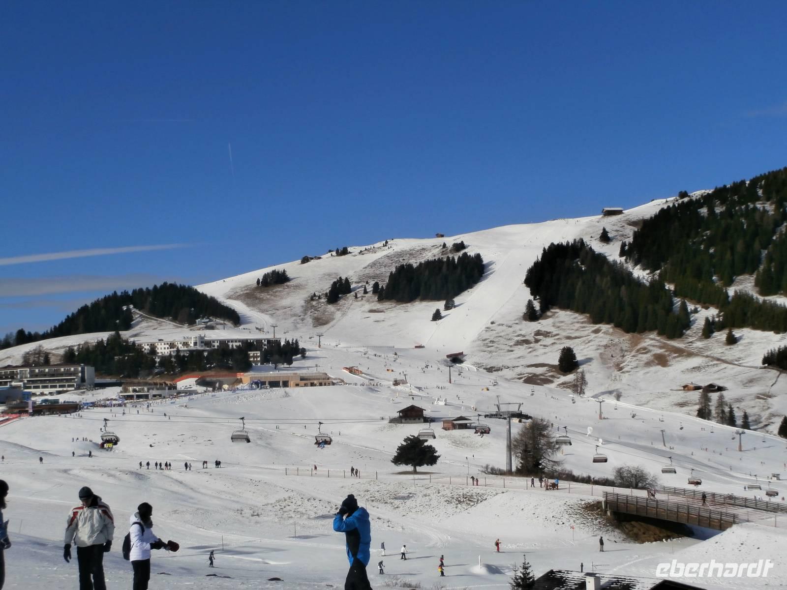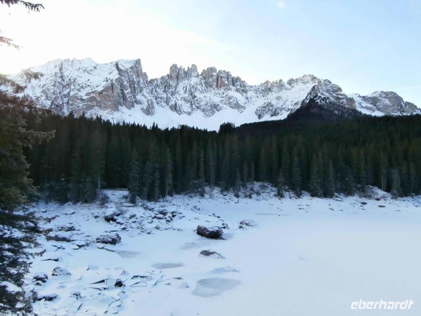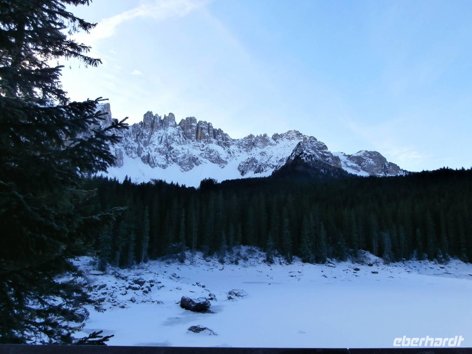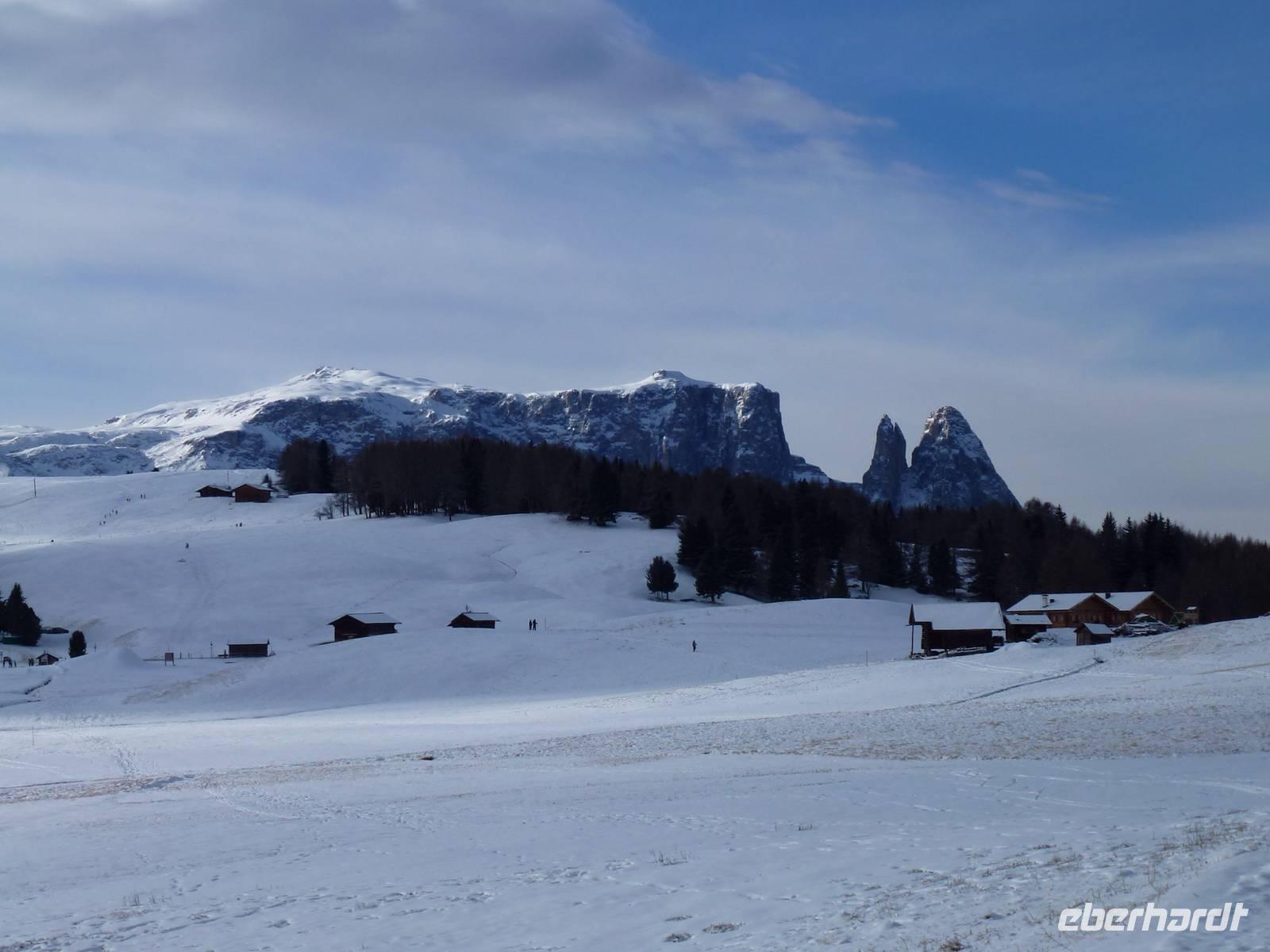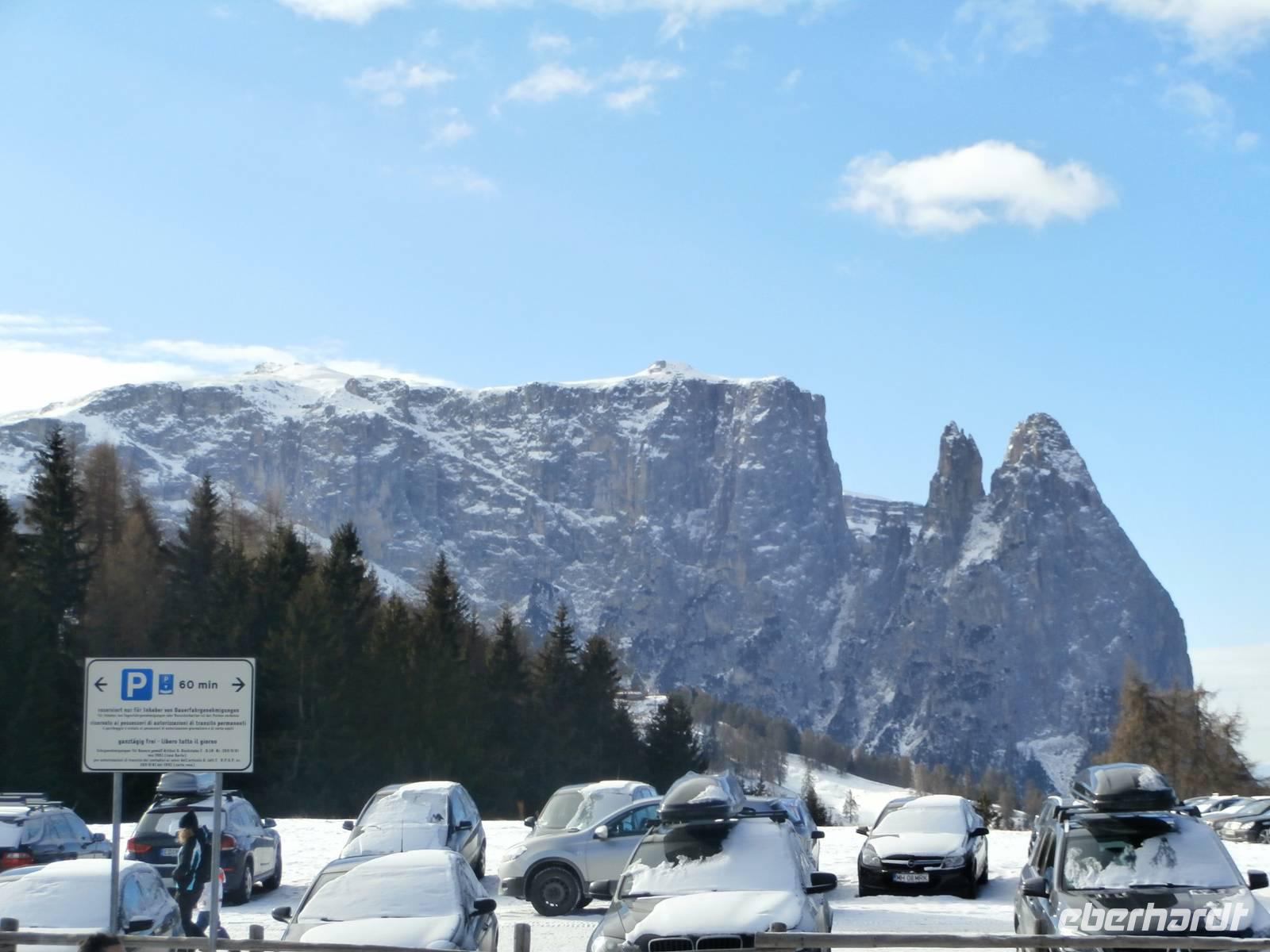 Heute starten wir erst viertel zehn, zur Seiser Alm geht unsere Fahrt heute Vormittag. Blauer Himmel, etwas Kälte und klare Luft sind beste Voraussetzungen für unseren Ausflug hinauf zu Europas größter Hochalm. Mit dem Bus geht unsere Fahrt zunächst auf einer Serpentinenstrecke bis nach Seis, wo wir in die Umlaufbahn einsteigen. Die Seilbahn schwebt mit vielen Skifahrern und uns hinauf nach Compatsch. In diesem Jahr ist Schnee Mangelware und so sind unsere Pferdeschlitten mit Rädern unterwegs. Aufgeteilt in zwei Gruppen erleben wir in fantastischer Winterkulisse unsere Schlittenfahrt mit den Haflinger Pferden. Der Blick über die Gipfel der gezuckerten Dolomiten ist die Krönung unserer Fahrt. Allgegenwärtig präsentiert sich uns der Schlern-ein ganz markanter Fels an der Seiser Alm. Die Kutscher erzählen sehr viel über das schwere aber auch schöne Leben auf der Seiser Alm. Die wärmenden Decken, in die wir uns hüllen während der Fahrt, machen den Genuss der Fahrt in der Ruhe der Natur mit Sonne perfekt. Lecker Glühwein wird uns im Anschluss im Nordic Restaurant serviert, Ingrid hat ihn im Namen von Eberhardt Travel ausgegeben. Viele Wintersportler sind am letzten Tag des Jahres hier oben unterwegs, ein richtiges Gewusel können wir beobachten. Nach der Talfahrt zurück im Bus geht es weiter zum Abstecher nach Kastelruth, die Heimat der Volksmusik Truppe „Die Kastelruther Spatzen". Azurblauer Himmel lädt uns zum Verweilen in diesem bekanntem Dorf ein. Am Nachmittag fahren wir mit unseren Gästen zurück zum Seehotel Sparer. Einige Gäste erschließen sich die fast unberührte Natur des Montiggler Sees bei einem Spaziergang oder nutzen die Wellnessabteilung des Hotels vor der Silvesterparty. Am Abend startet unsere Silvesterveranstaltung. Vorzüglich ist das Silvester Galadinner und die Tischdekoration begeistert unsere Gäste. Ein Musiker sorgt für die musikalische Umrahmung und Stimmung unter uns, es wird getanzt und viel gelacht. Der Ausschank von Glühwein, das spezielle Gebäck aus Italien im Garten gereicht und das Höhenfeuerwerk übern Montiggler See überrascht uns zu Mitternacht. Im Biergarten am offenen Feuer erleben wir den Jahreswechsel, es wird sich gratuliert und beim Blick auf das Feuerwerk begrüßen wir gemeinsam das Neue Jahr 2015.