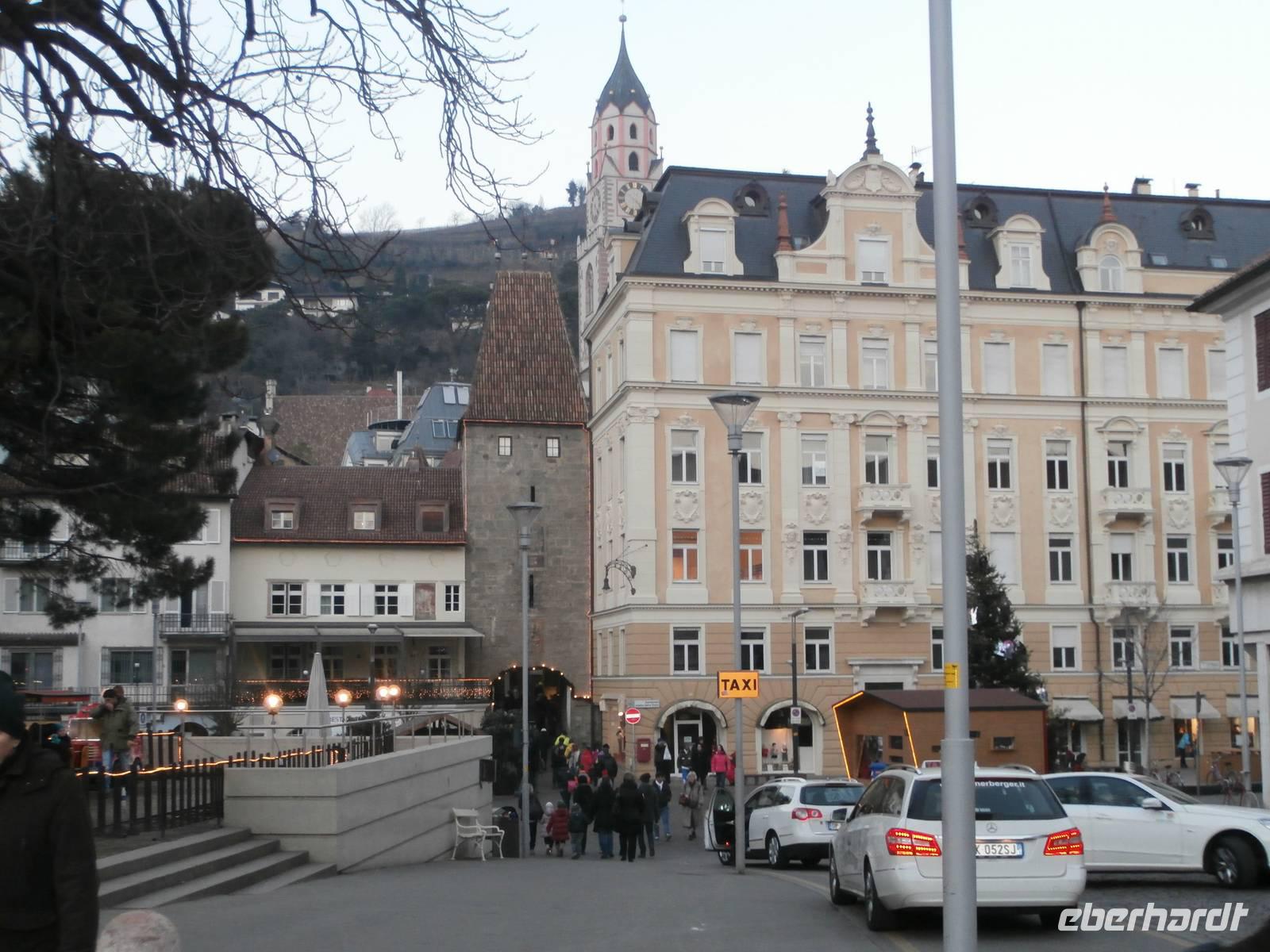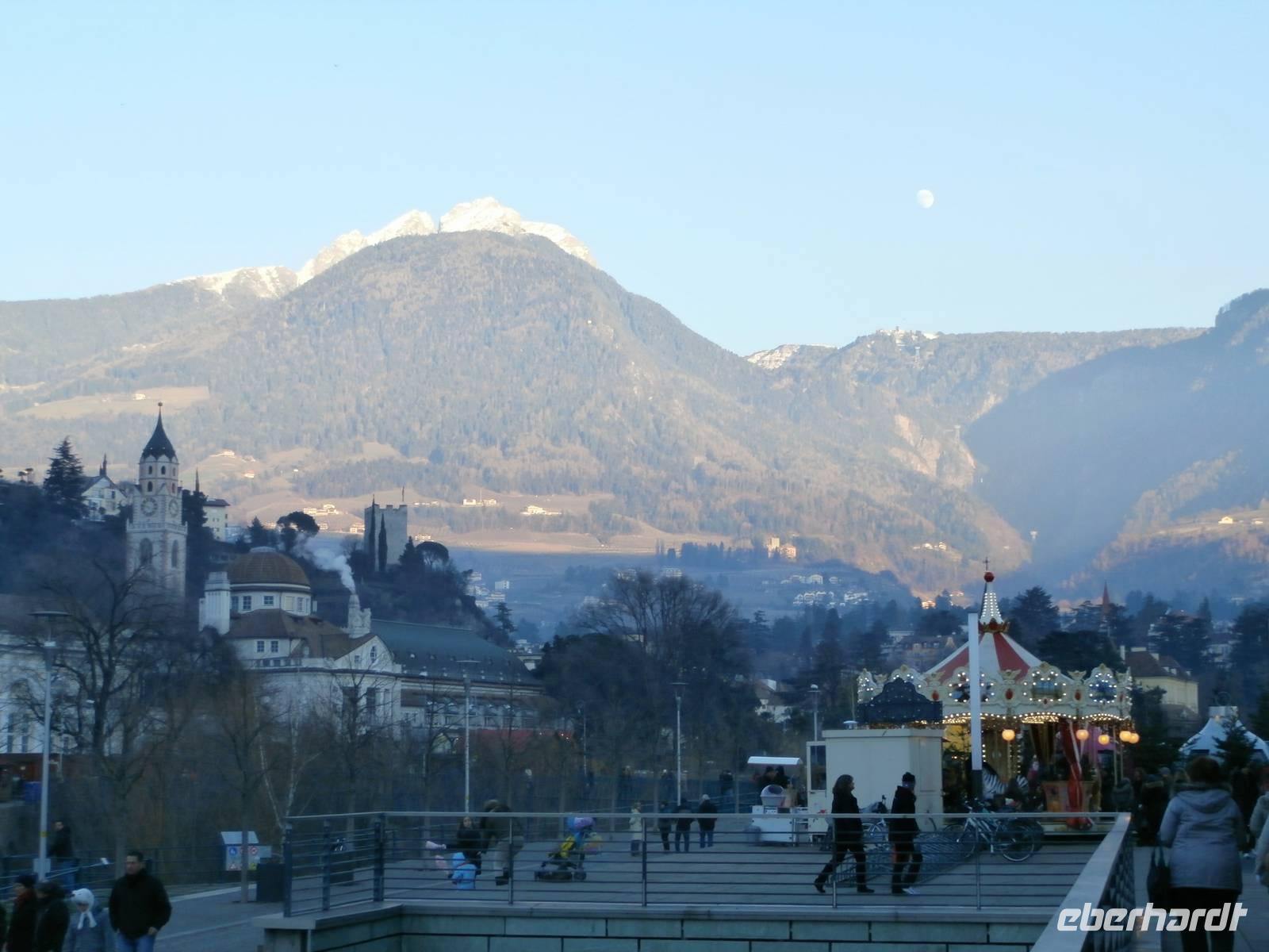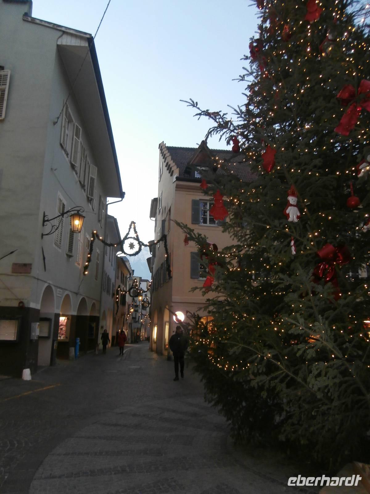 Anschließend geht es auf unserem Rundgang vorbei an der Therme, dem Kurhaus und durch Merans Laubengassen in der Altstadt. Luise lacht sehr gern und hat uns ganz schnell damit angesteckt. Südtirols Weihnachtsmärkte haben noch bis ins Neue Jahr geöffnet und so nutzen wir die Gelegenheit zum Bummel über den Meraner Christkindelmarkt, der sehr gut besucht ist. Im Hotel werden wir wieder zu einem leckeren Abendessen erwartet.