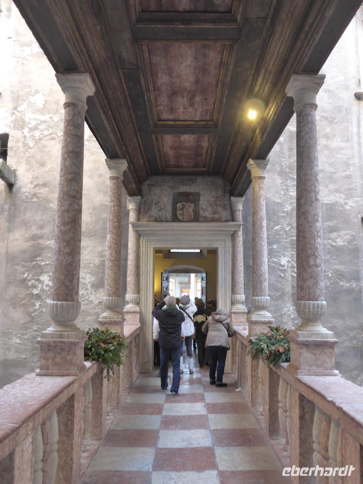 Ein gutes Frühstück war die Voraussetzung für unsere erste Besichtigung. Es ging in eine Grappa-Brennerei. Auch wenn zurzeit die Produktion ruht - der Duft des Alkohols lag in manchen Räumen noch in der Luft. Anschaulich und mit viel Faktenwissen konnten wir uns den Vorgang des Brennens dennoch gut vorstellen. Nach einer Führung durch die Brennerei wurden natürlich die Köstlichkeiten probiert. Kurz vor dem Mittag war es ein Aperitif für unser 6-Gang-Menü am Bus (Wiener, Senf, Brot, Serviette und Pappe). Hier war auch der Einsatz des Reiseleiters gefragt, der sich als ausgezeichneter Barkeeper herausstellte. Dieser sorgte natürlich für die innere Wärme und so konnten alle mit vollen Taschen etwas beschwingt Trient erobern. Trient, eine Stadt mit vielen Denkmälern, Palazzi und dem Castello Buonconsiglio. Eine Stadt die von den Kelten gegründet und durch die Römer erobert wurde. Jeder Stein ein Stück Geschichte. Und dennoch ist die Universitätsstadt eine „junge" Stadt geblieben. Wir begannen unseren Rundgang am Castello Buonconsiglio mit seinen unterschiedlichen Baustilen. Eine Vielzahl von reich verzierten Gemächern oder die Loggia mit einem herrlichen Blick war der Lohn für so manche Treppenstufe die wir erklimmen mussten. Danach ging es in die Stadt zu einem Rundgang. Bei einer Besichtigung, die uns auch entlang des ehemaligen Prozessionsweges führte, erfuhren wir viel über die Geschichte dieser Stadt. Glanzvolle Fassaden, prächtige Palazzi säumen die Straßen des Altstadtkerns. Alles Prachtbauten im Stil Gotik, Renaissance oder des Barock. Ob Dom, Neptunbrunnen, Torre Civicia (Turm) mit dem Palazzo Pretori, Alten Rathaus, Palazzo Quetta Alberti Colico, Palazzo Geremia, Palazzo Thun (heutiges Rathaus),Kirche San Francesco Saverio, Palazzo Fugger Galasso, Palazzo Salvadori,Palazzo Trentini, Palazzo Meli del Monte, um nur einige zu nennen. Viel Interessantes konnte unsere Stadtführerin darüber erzählen. Nach so viel Kultur und einer kleinen Kaffeepause traten wir die Heimreise an.