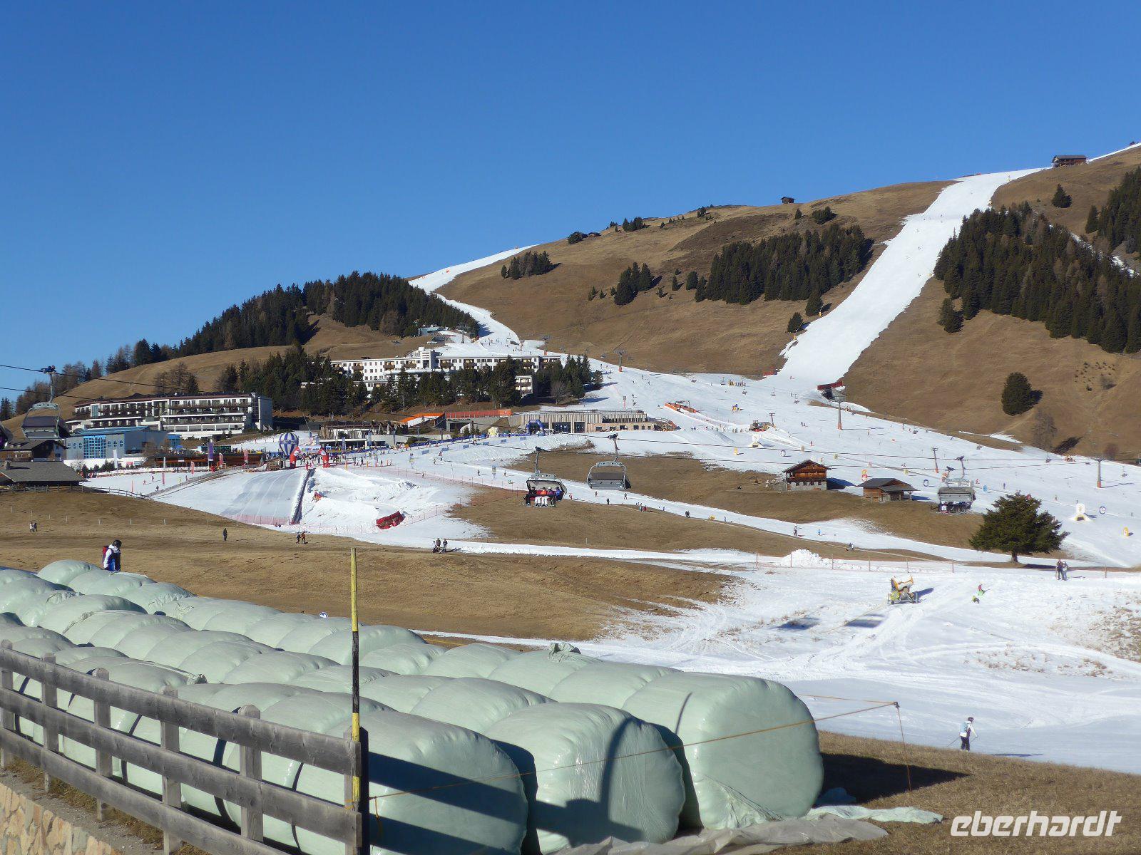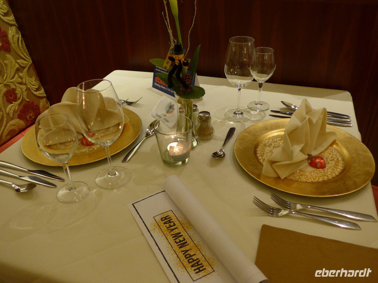 Gehört nicht zu einem Winterurlaub eine Schlittenfahrt? Für uns sollte dieses Erlebnis heute Wirklichkeit werden. Wir machten uns auf in Richtung Seiser Alm. Sie ist das größte Hochalm Europas und war wegen der traumhaften Landschaft schon Filmkulisse für den Film Tanz der Vampire. Umrahmt von so bekannten Bergen, wie z.B. Schlern, Rosszähne, Langkofelgruppe oder Puflatsch, ist der bekanntes Ort Kastelruth. Wer kennt nicht die Kastelruther Spatzen, die aus diesem Ort stammen. Mit dem Bus geht unsere Fahrt zunächst auf einer Serpentinenstrecke bis nach Seis, wo wir in die Umlaufbahn einsteigen. Die Seilbahn schwebt mit vielen Skifahrern und uns hinauf nach Compatsch. Dort erwarten uns schon die Schlitten. Schneemangel - die Pisten glichen einem weiß-grünen Streifenanzug. Die Kufen wurden durch Räder und der Schlitten durch die Kutsche ersetzt. Auch mit wenig Schnee ist es eine reizvolle Winterlandschaft. Am Ende wärmte man sich noch mit einem Glühwein auf, bevor es über Kastelruth wieder zurück zum Hotel ging. Der Silvesterabend wird mit einem vorzüglichen Galadinner eingeläutet. Schon die geschmackvolle Deko lässt auf einen unvergesslichen Abend hoffen. Wir wurden nicht enttäuscht und anschließend sorgte ein Musiker für gute Stimmung. Bei Tanz und guter Unterhaltung näherte sich das neue Jahr mit großen Schritten. Punkt 0 Uhr - wir verzichteten auf das Feuerwerk aus Sicherheitsgründen - stoßen wir mit Sekt auf das neue Jahr an. Stimmungsvoll - inzwischen mit deutsch-italienischer Verbrüderung ging es ins neue Jahr 2017.
