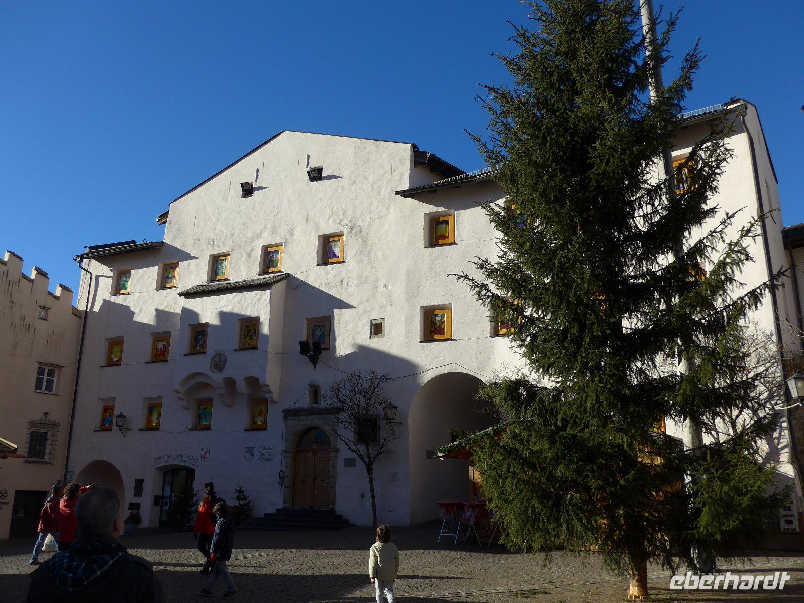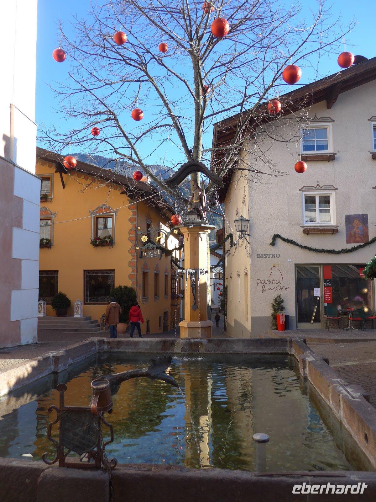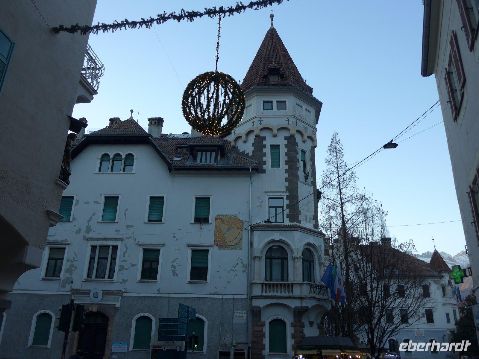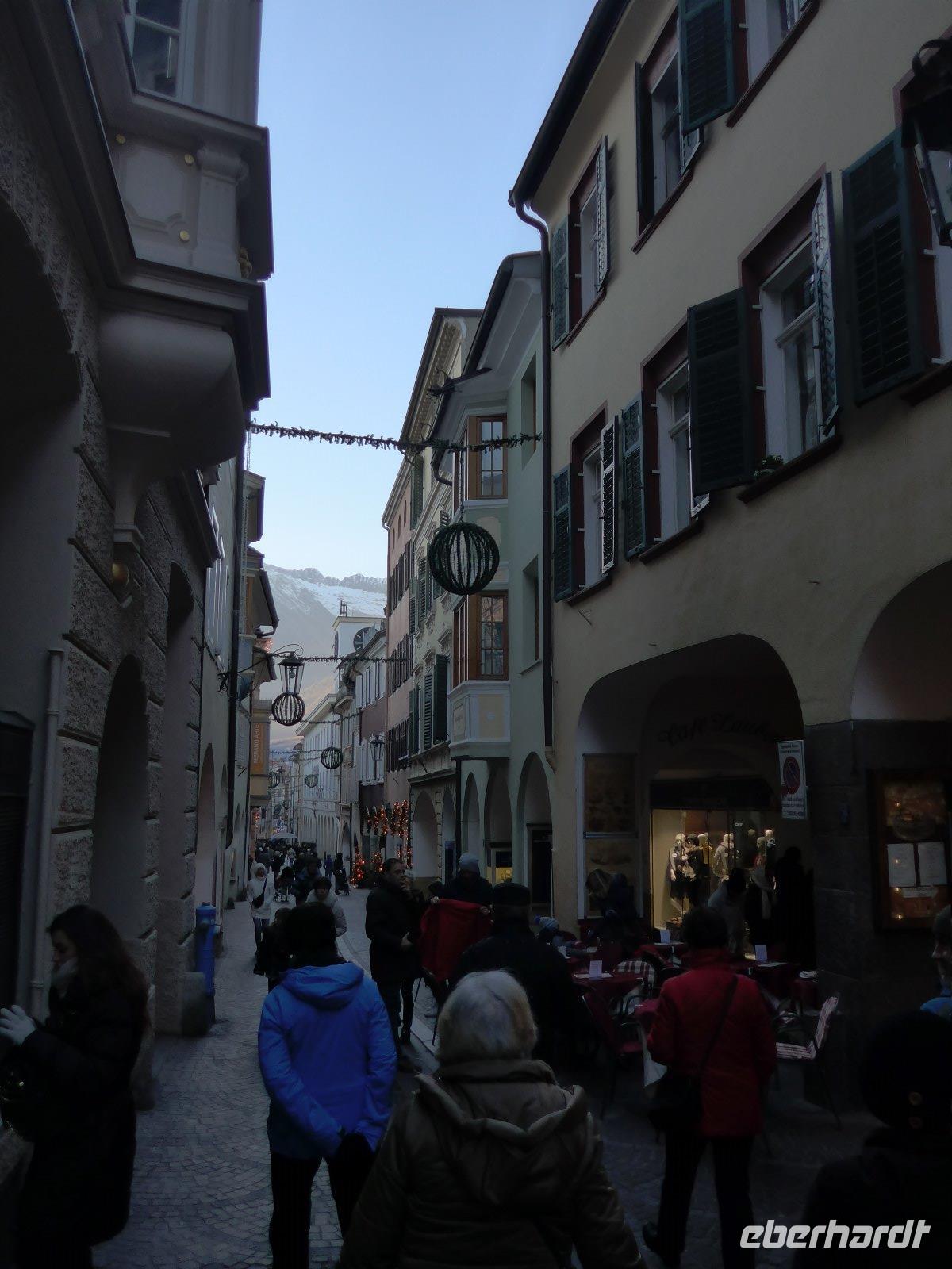 Freizeit nach einem langen Silvesterabend oder die Kurstadt Meran erleben. Die Entscheidung wird einem nicht leicht gemacht. Doch viele reizte die Traditionsstadt, in der schon Kaiserin Sissi weilte. Doch bevor wir hier ankamen wollten wir den Kopf etwas frei bekommen. Am besten hilft hier frische Luft in luftiger Höhe. Mit der Seilbahn ging es zunächst nach Oberbozen. Schon hier wird klar, warum bereits in früheren Jahrhunderten das Bürgertum von Bozen hier herauf kam um der Sommerhitze der Stadt zu entgehen und in der angenehmen Bergluft des Hochplateaus diese zu genießen. Auch heute reisen gestresste Touristen an um die gesunde Höhenluft zu schnuppern. Wir eben nicht im Sommer, sondern an einem angenehmen Wintertag. Im strahlenden Sonnenschein erlebten wir das umliegende Bergmassiv. Ein paar Atemzüge und dann ging es zur Schmalspurbahn, die uns von Oberbozen nach Klobenstein brachte. Hier war der Stopp für die Mittagspause bevor es dann immer einen Blick auf den Rosengarten nach Bozen zurückging. Von dort aus ging es auf dem schnellsten Weg in die Kurstadt Meran, die mit Sissi-Besuchen und der Kurtradition des 19. Jahrhunderts in Verbindung gebracht wird. Wie auch Bozen liegt der Ort in Mitten eines Kessels umrahmt von Berggipfeln. So sind gerade dies die Voraussetzungen für ein mildes mediterranes Klima. Zuerst erkundeten wir die Umgebung in lichter Höhe, u. a. fuhren wir durch Schenna mit seiner Burg u. schönen Kirchanlage. Bei einer Stadtführung wurden uns die Schönheiten der Stadt gezeigt - Kurpromenade mit der im Jugendstil erbauten Kurhalle, Spitalkirche, Sandplatz mit Bozener Tor, Stadtpfarrkirche St. Nikolaus und Laubengänge um die Wichtigsten Orte der Führung zu nennen. Noch einen Abstecher zur Landesfürstlichen Burg und dann war es auch schon Zeit den abendlichen Weihnachtsmarkt zu genießen, bevor es zurück zum Hotel ging.