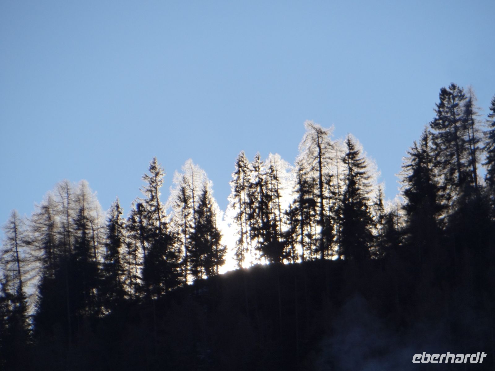 Denn zunächst kommen wir gut durch – bis Nürnberg. Und dann schlagen wir Haken wie ein Hase, um Baustellen und Staus zu entkommen. Die Strecke Nürnberg – Landshut ist ein Wintermärchen. Nebel, Raureif. Auf der Höhe München stößt die Sonne durch, die uns darüber hinweg tröstet, dass wir mitten im Anreiseverkehr stecken. Den Brenner passieren wir zügig und in Dunkelheit.