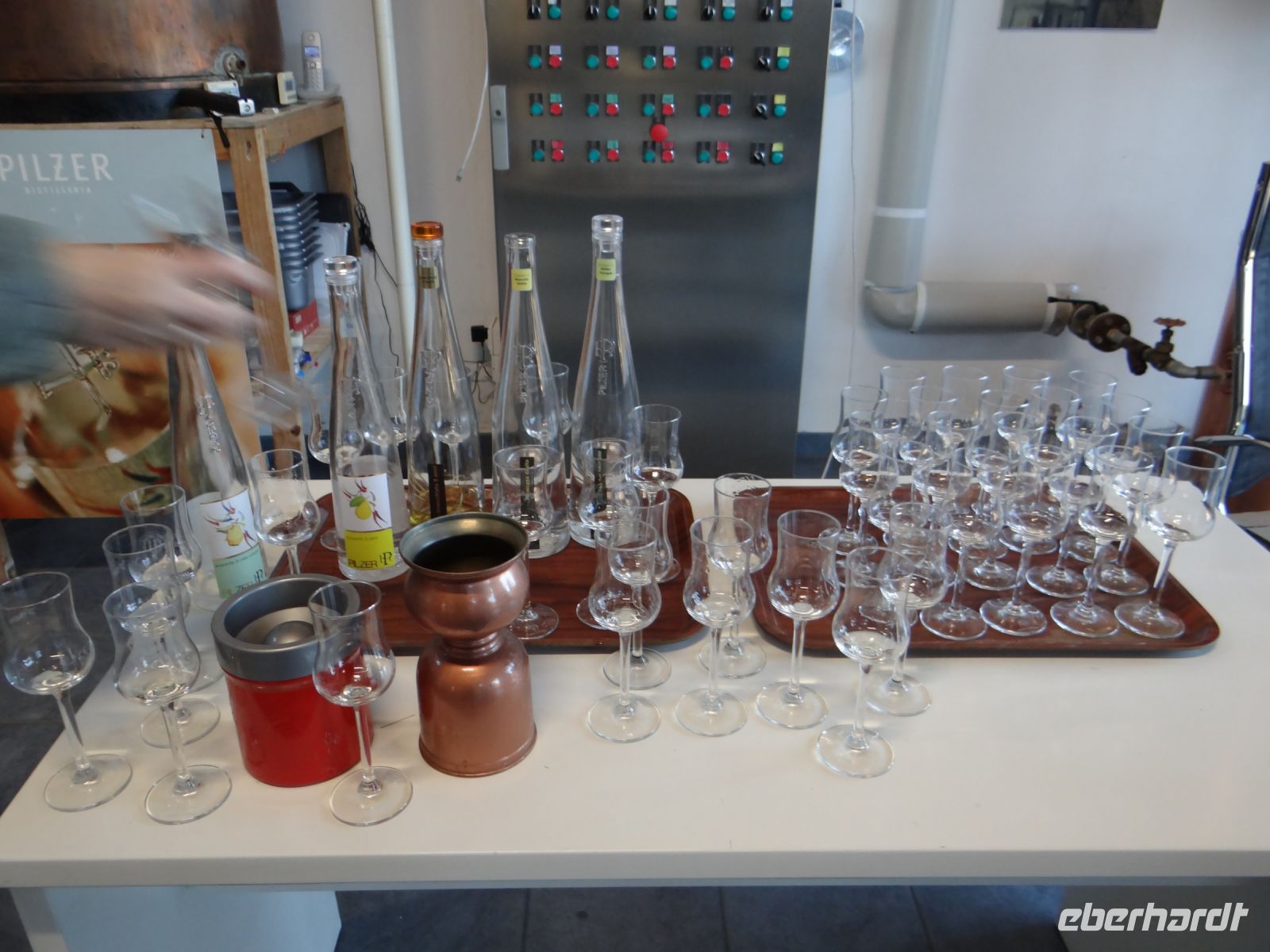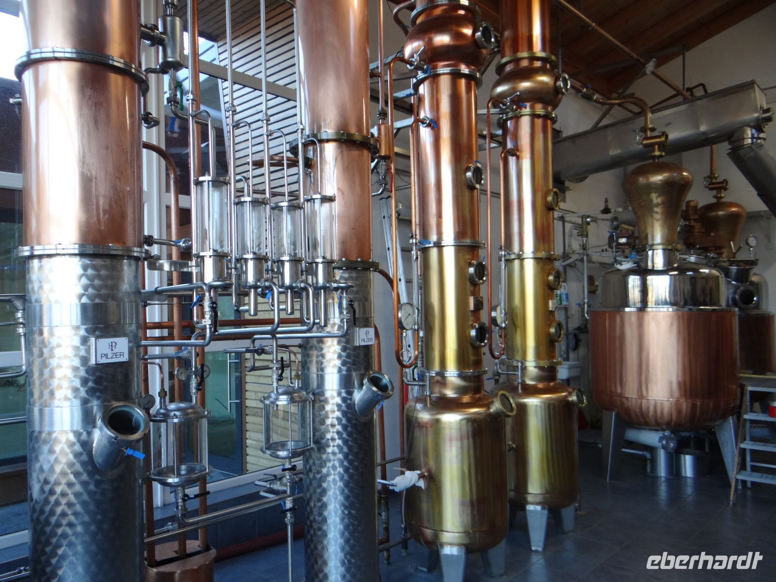 Herr Pilzer persönlich empfängt uns und erklärt uns die Herstellung von Grappa und Weinbrand. Für einen Liter Grappa sind 100 kg Trester nötig. Auch Gin und Rum stellen er und sein Bruder inzwischen her und verkaufen bis nach Japan. Den einen oder anderen humorvollen Satz streut er ein und wir be-wundern seine Redegewandtheit in der ihm fremden Sprache Deutsch.
