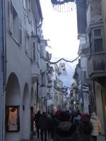 Wir betreten die Altstadt durch eines der noch drei erhaltenen Tore – von vieren – schauen in die St.-Nikolaus-Kirche rein und laufen die von Lauben bestandene Gasse entlang, die Shopping Mall von Meran.