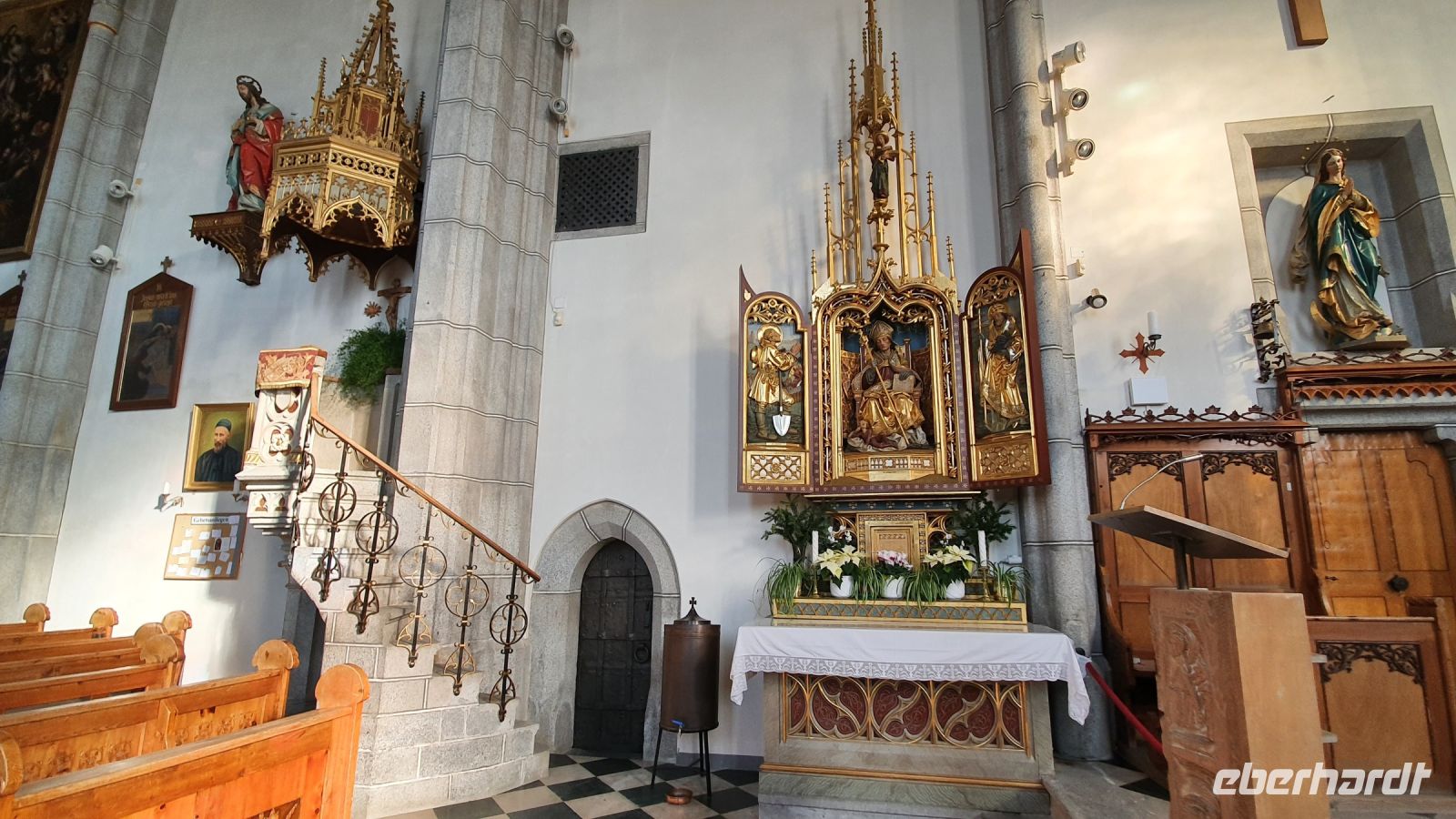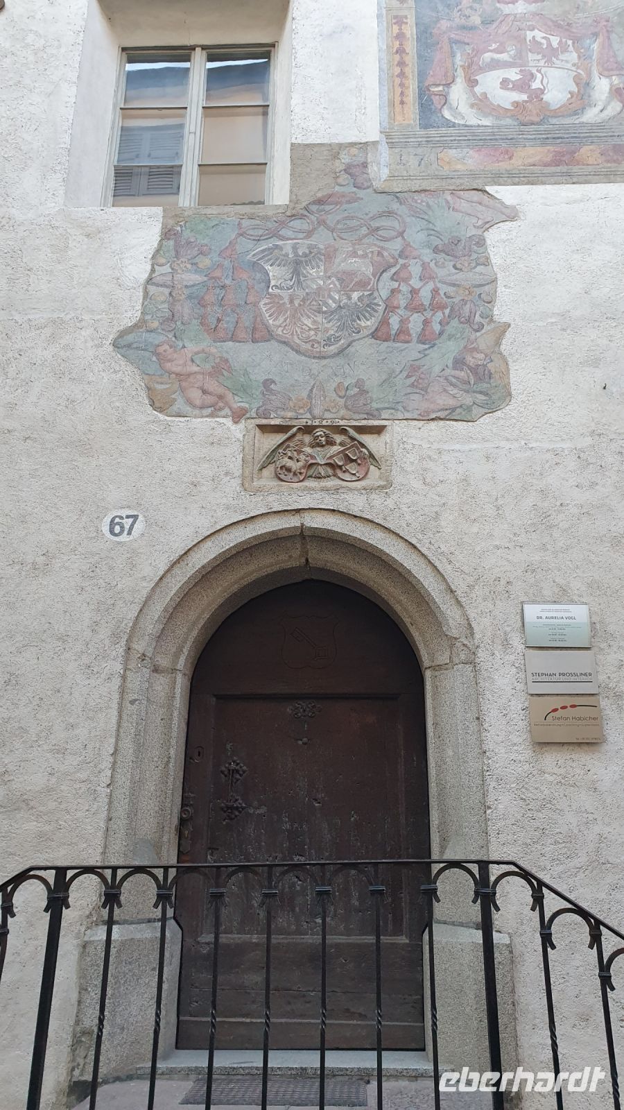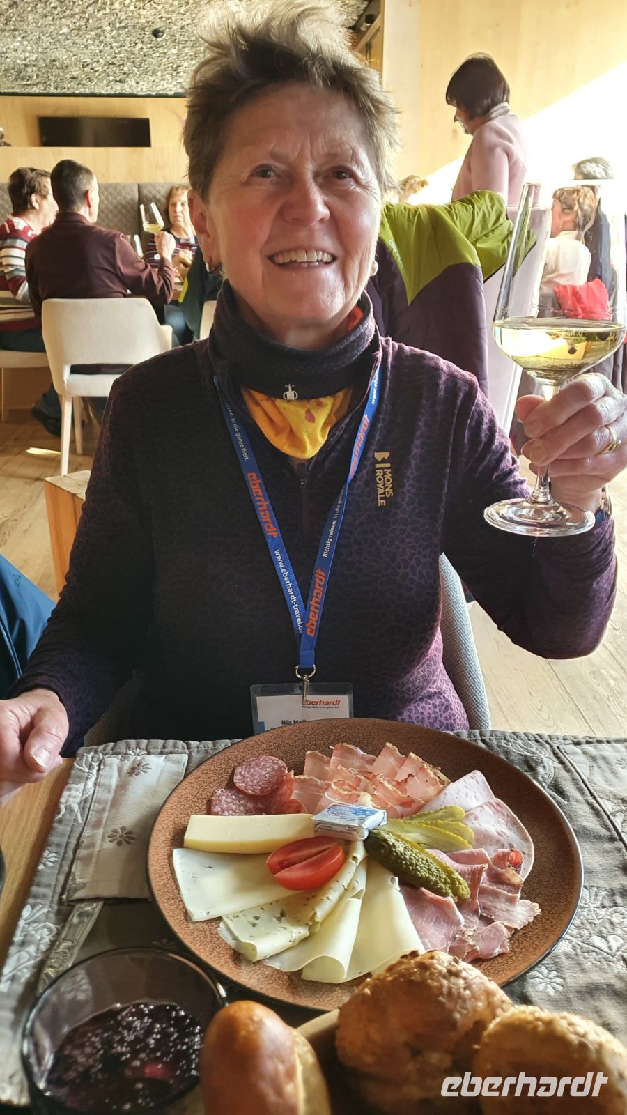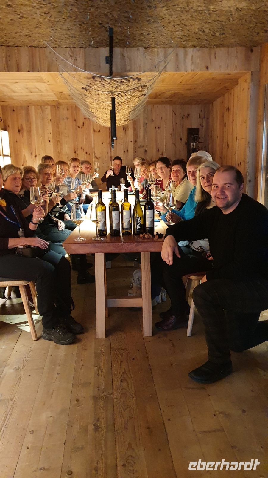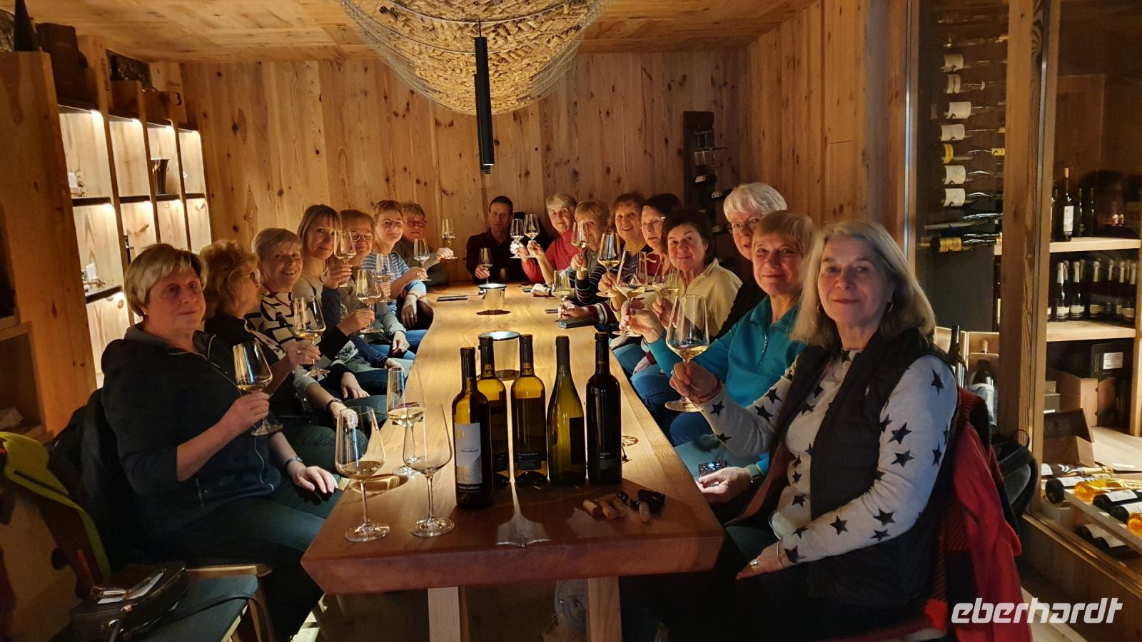 Gut gestärkt nach einem ausgezeichneten Frühstück trafen wir uns 10 Uhr zu einem gemeinsamen Rundgang durch unseren Urlaubsort Feldthurns. Wir besuchten die Pfarrkirche Mariä Himmelfahrt und das Schloss Feldthurns von aussen. Danach fuhren wir mit dem Bus hinunter nach Klausen und da wartete schon unser Wanderführer und Reiseleiter und zeigte uns bei einem Rundgang durch die zauberhafte Kleinstadt Klausen die wunderschönen mittelalterlichen Gassen. Im Waltersaal, wo heute der Gemeinderat tagt, gab es eine kleine Lehrstunde zur Geschichte Südtirols. Danach besuchten wir die Andreas Kirche und das ehemalige Kloster mit seinem schönen Park. Das Kloster Säben auf einem Felsen über der Stadt beherbergt seit Frühjahr 2022 keine Nonnen mehr und steht zum Verkauf. Im Spitalerhof trafen wir uns zur Mittagszeit auf eine Jause und anschliessend zu einer Weinprobe, die vom Chef persönlich sehr unterhaltsam und lehrreich kommentiert wurde. Der Spitalerhof ist das kleinste private Weingut im Eisacktal und die Weine werden mit viel Liebe, Sachverstand und Kreativität produziert. Wir durften einen Grünen Veltliner, einen Sylvaner, einen Sauvignon und den speziell zum Geburtstag des Chefs Michael kreirten Grünen Veltliner Muga probieren. Zum Schluss folgte der für Südtirol typische Rotwein Lagrain. Fröhlich gestimmt verliessen wir das Weingut und 4 Gäste fuhren mit dem Bus zurück nach Feldthurns. Alle anderen wanderten die 400 Höhenmeter hinauf zum Hotel. Am Abend gab es ein Galamenue, wieder ganz ausgezeichnet.