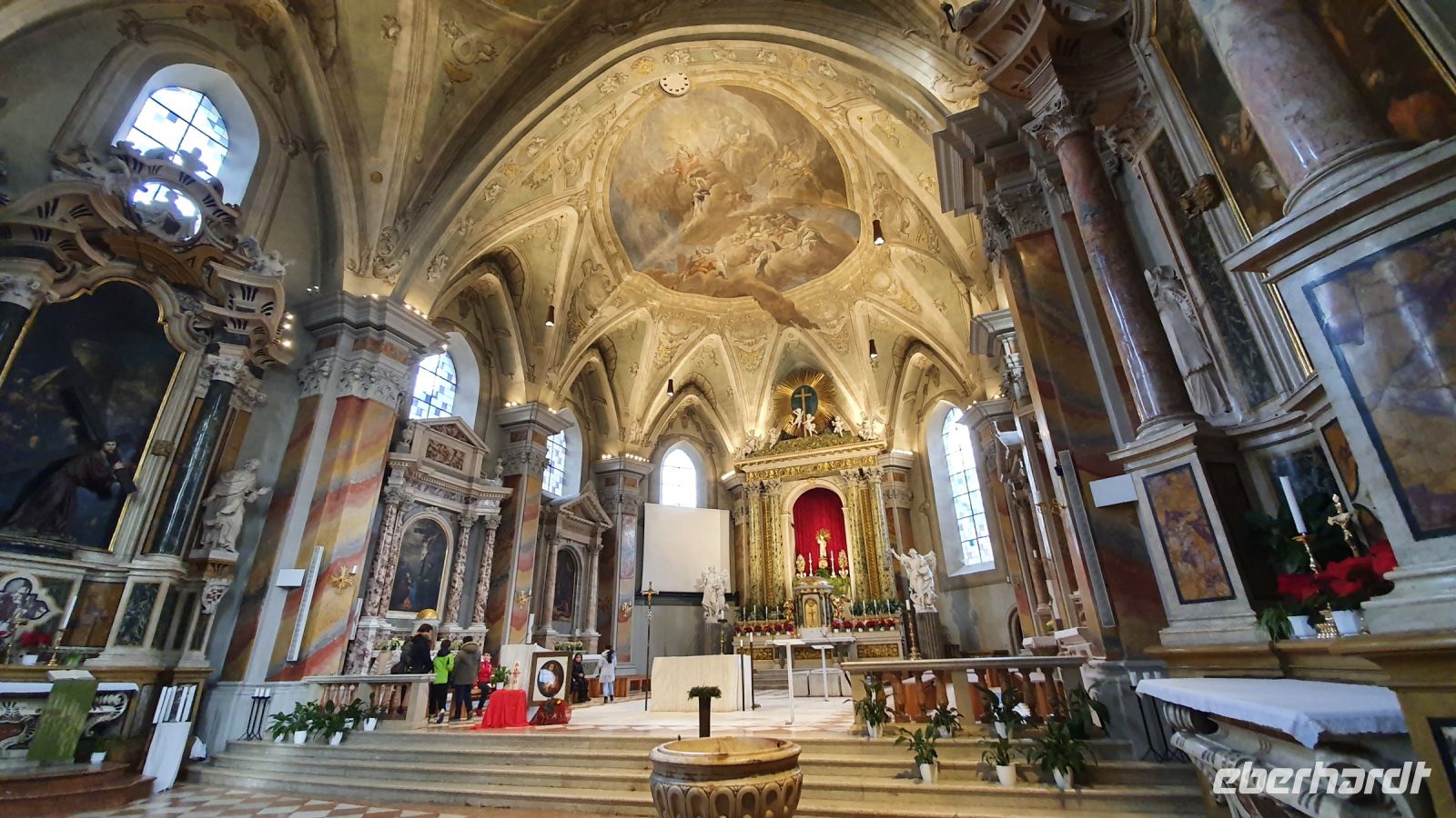 Heute fuhren wir mit dem Linienbus nach Brixen zum Busbahnhof und weiter mit dem nächsten Bus zur Talstation der Plose Seilbahn. Bezahlt wurde alles mit unserer Gästekarte. Man hatte wieder Schneefall angesagt, aber bereits auf der Plose schien die Sonne. Es waren viele Ski- und Snowboard Fahrer Unterwegs und so mussten wir immer mächtig aufpassen, wenn wir eine Skipiste querten. Das erste Stück unserer Wanderung zur Rossalm Hütte verlief auf der Rodelbahn, die in diesem Jahr gesperrt wurde, wegen der Bauarbeiten für den neuen Lift. Danach wanderten wir auf einem gut geräumten Weg immer bergan. Rechts von uns lagen die Dolomitenberge wie für eine Ausstellung aufgereiht beginnend von inks Peitlerkofel, Afferer Geissler, Geisslerspitzen, Langkofel und Plattkofel, der Rosengarten und der Schlern. Zwischendurch schaute der Gnubbel vom Sassongher hindurch. In der Ferne hinter dem Eissacktal sahen wir das Rittener Horn und am Horizont das Ortlermassiv und vieles vieles mehr. Kurz vor 12 Uhr erreichten wir die alte Rossalm Hütte, wo inzwischen ein neuer Hotelanbau steht und man auch komfortabel übernachten kann. Für den Rückweg nahmen wir die gleiche Strecke und einige Gäste den Woody Walk, der als Familienweg mit allerlei Holzskulpturen gesäumt ist. Im Restaurant bei der Seilbahn trafen wir uns zum Mittagessen im La Finestra und genossen die vorab bestellten Gerichte. Gut gestärkt fuhren wir mit der Seilbahn nach unten und mit dem Linienbus zurück nach Brixen. Dort besuchten wir gemeinsam den Dom mit dem Kreuz Gang, die Michaelkirche, die Adlerbrückengasse und die Lauben im Zentrum. Die restliche Zeit verbrachte jeder nach eigenem Interesse und ohne uns zu verabreden, trafen wir uns wieder im Linienbus zurück nach Feldthurns. Am Abend konnten wir ein letztes Mal das fantastische Abendessen geniessen.