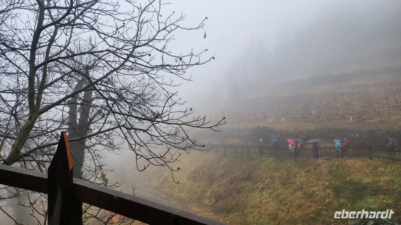 Obwohl es an diesem Tag regnet entscheiden wir uns nach Klausen zu laufen über den Kastanien-Wanderweg der durch Weinberge und Wald führt.