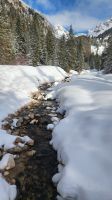 Langsam fängt es an zu schneien und die Sicht wird immer sclechter. Nach einer Kurve nimmt auch der Wind zu. Und dann wird es immer heftiger, wir laufen alle in einer Llinie hinter Sepp her. Wir befinden uns mitten in einem Schneesturm! Aber keiner hat Angst, unser Weg ist mit Stangen makiert und wir vertrauen unserem Sepp zu 100% , da wir wissn, dass er sich in seinen Bergen bestens auskennt.