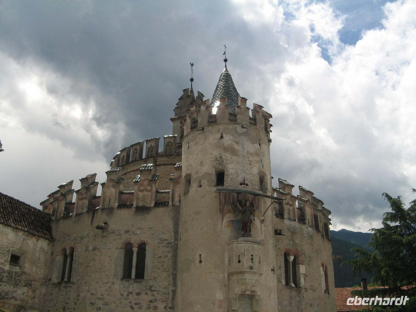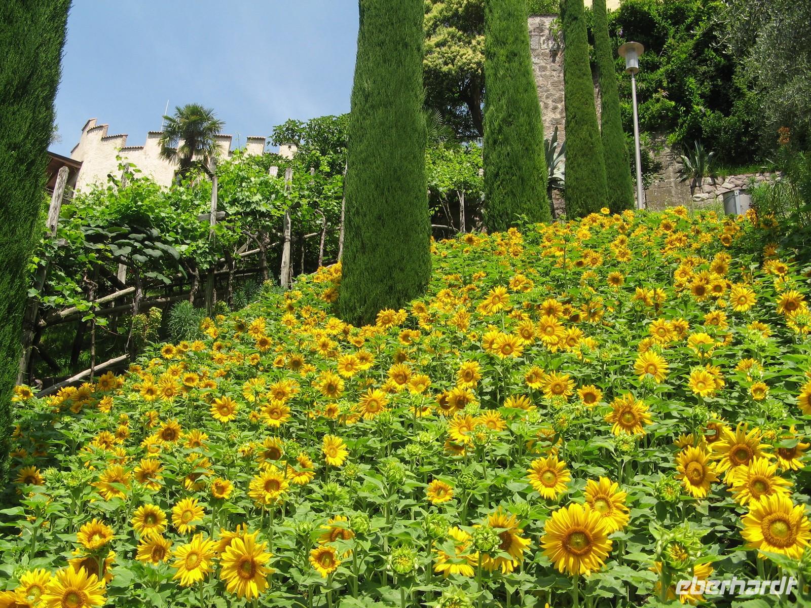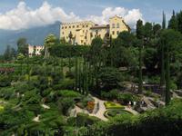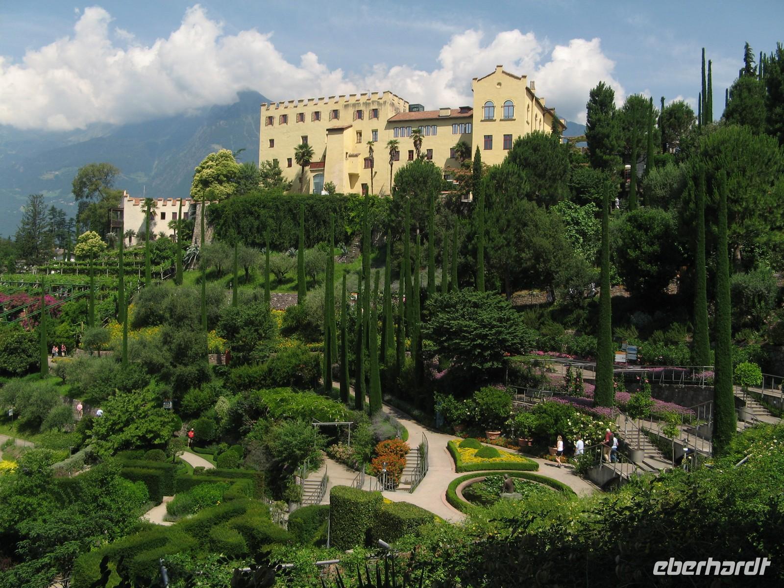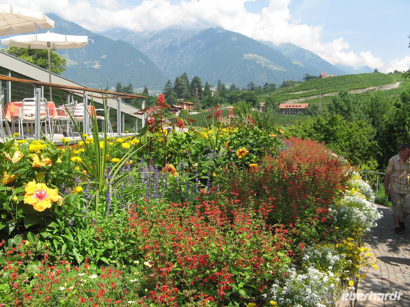 Heute fahren wir durch die Berge nach Meran. Die Fahrt geht über den 2094 m hohen Jaufenpass, wo wir einen Foto-WC-Stopp einlegen. Hinab geht es ins Passeiertal, vorbei am Geburtsort von Andreas Hofer. Zuerst besuchen wir die Gärten von Schloss Trauttmansdorff. Die Sonne brennt in die Terrassengärten und lässt die Temperaturen bis 36 Grad steigen. Wir bewundern die herrlichen Anlagen, genießen die Blütenpracht, Reisterrassen, Kakteen, mediterrane Pflanzen und den Teich mit Kois und Seerosen. Auch die Ausstellung im Schloss ist interessant. Dann in die Stadt Meran. Kurze Stadtführung mit Petra aber es ist zu heiß, wir suchen unter den Lauben Schatten. Wir wollen auch nicht so spät im Hotel sein, denn heute kommt das Halbfinale Deutschland- Italien. Naja, das Ergebnis ist bekannt! Der Bessere soll gewinnen und wir gönnen den Italienern den Sieg!